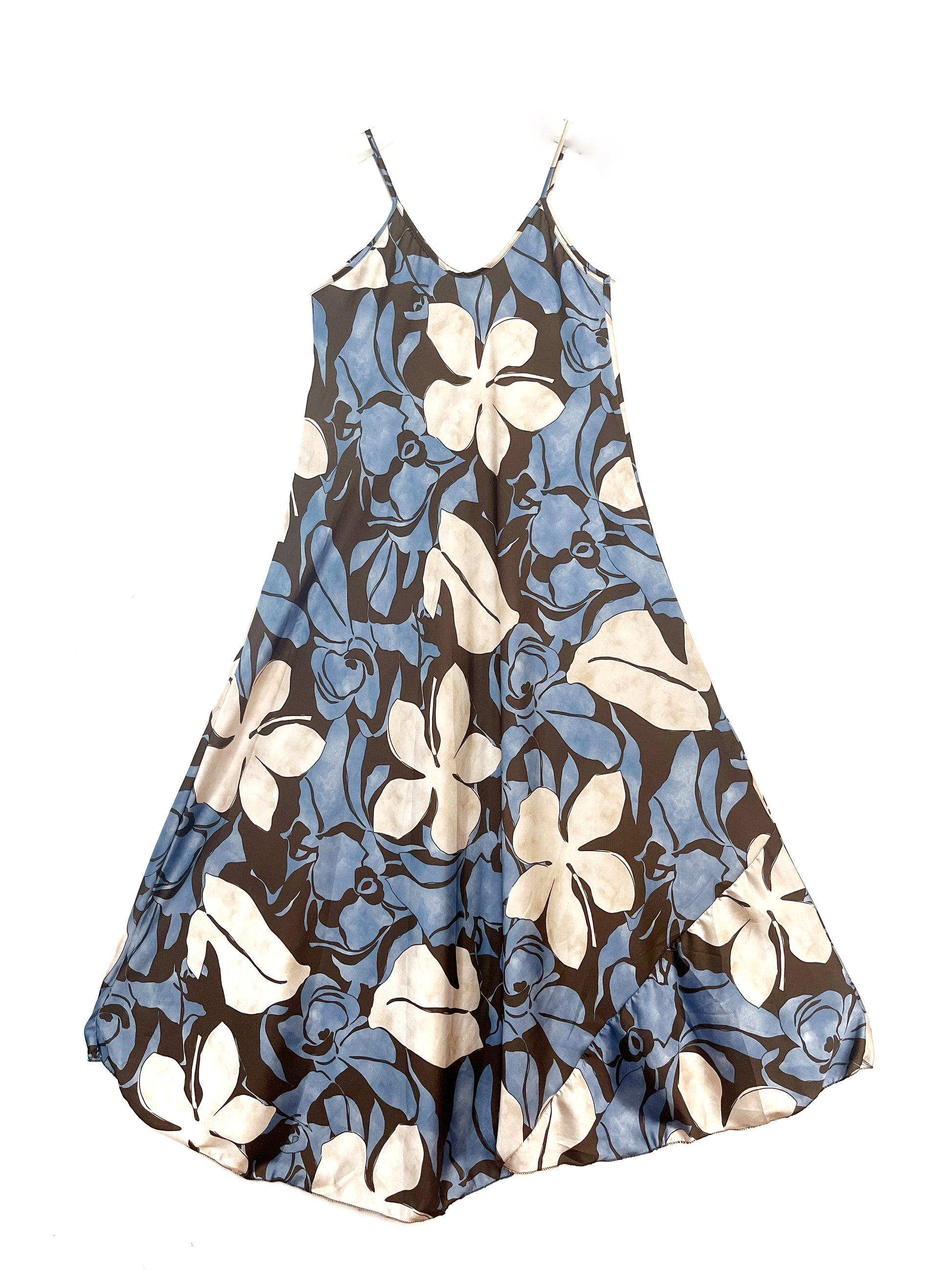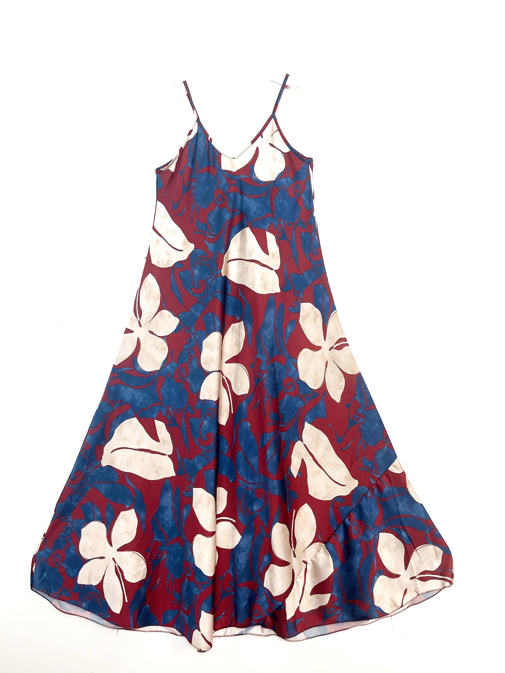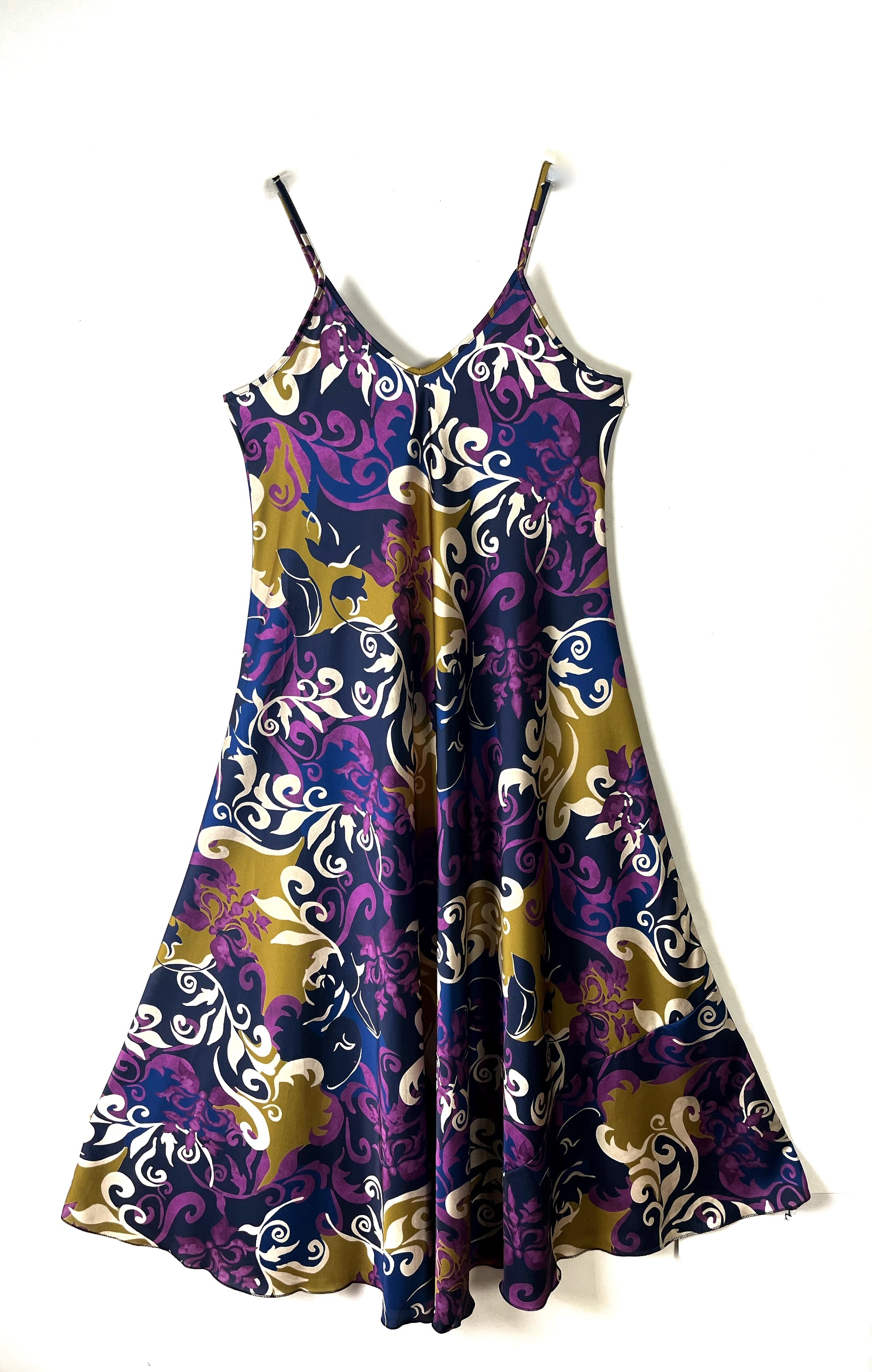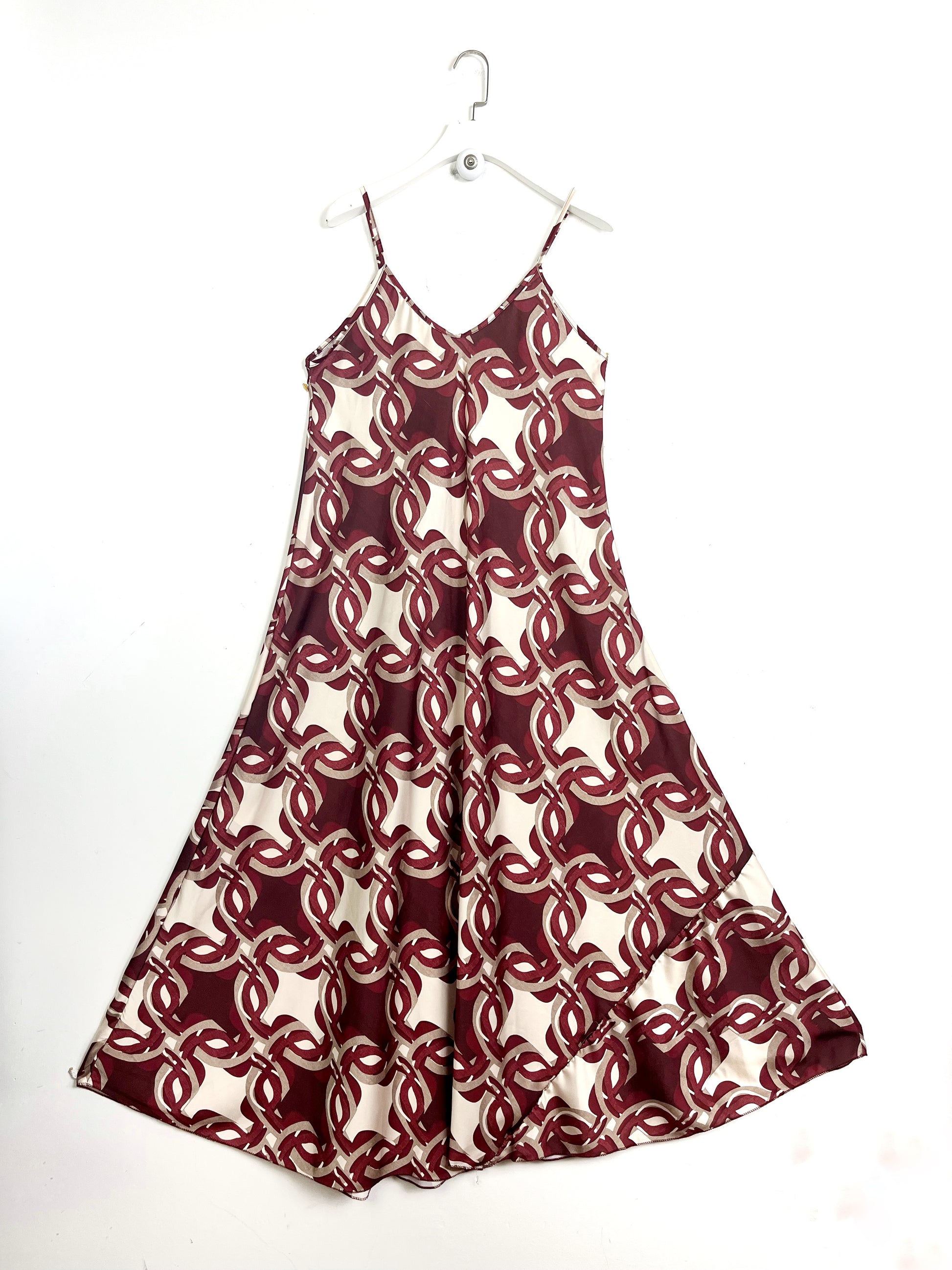 Abito in raso con spalline sottili. Scollatura a V. Lunghezza si piedi.