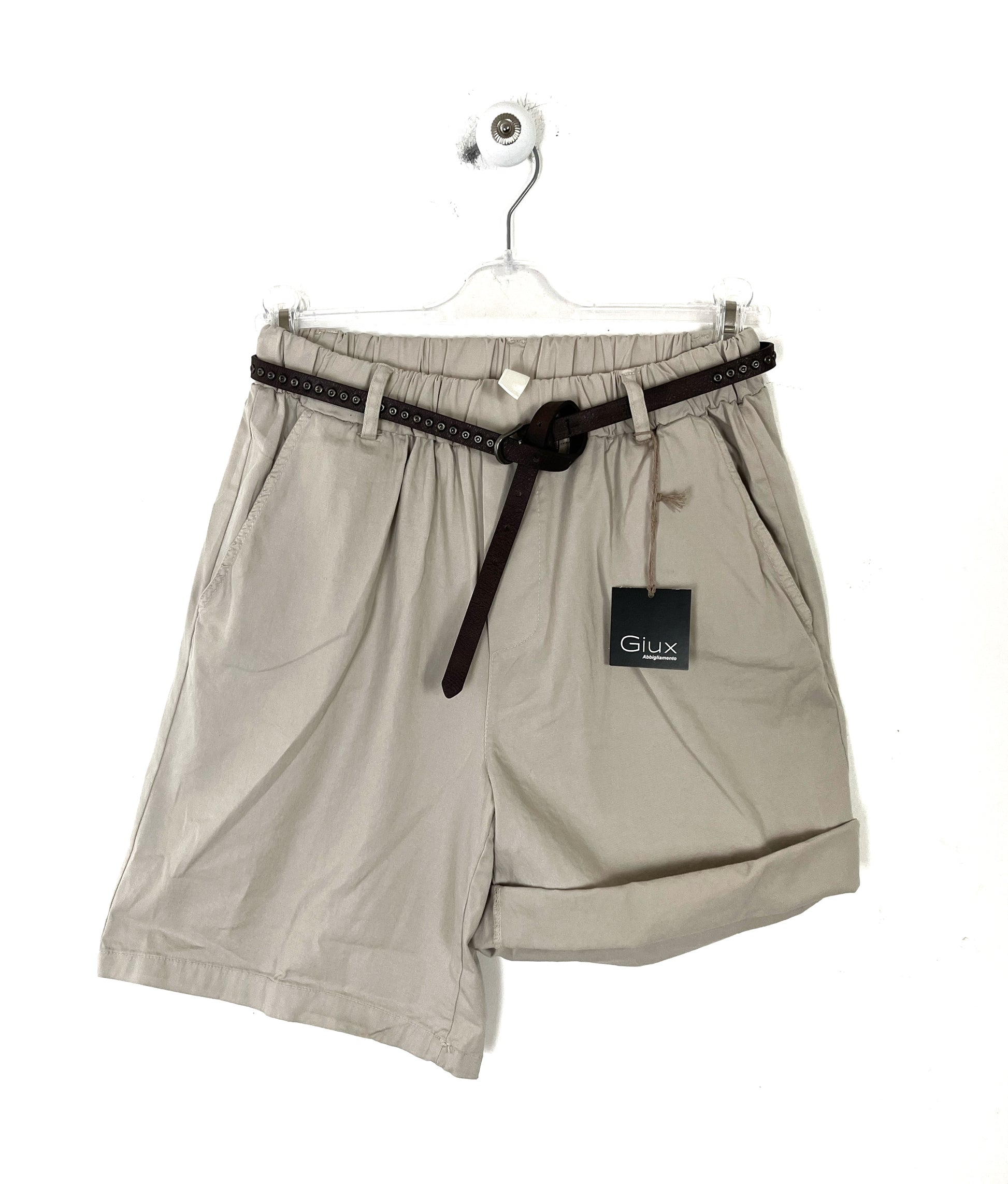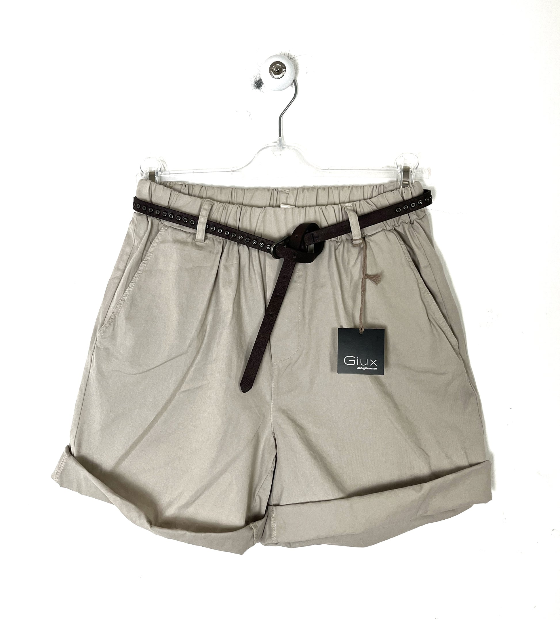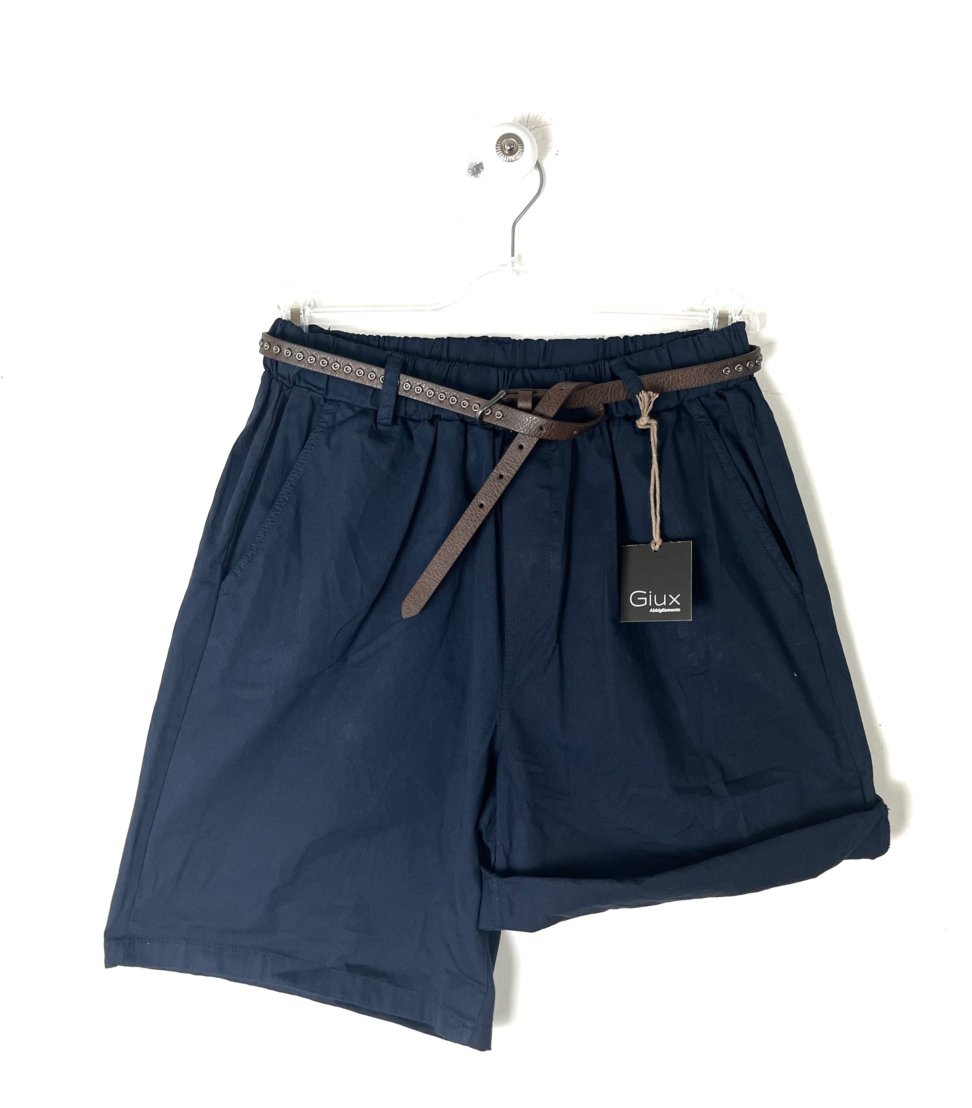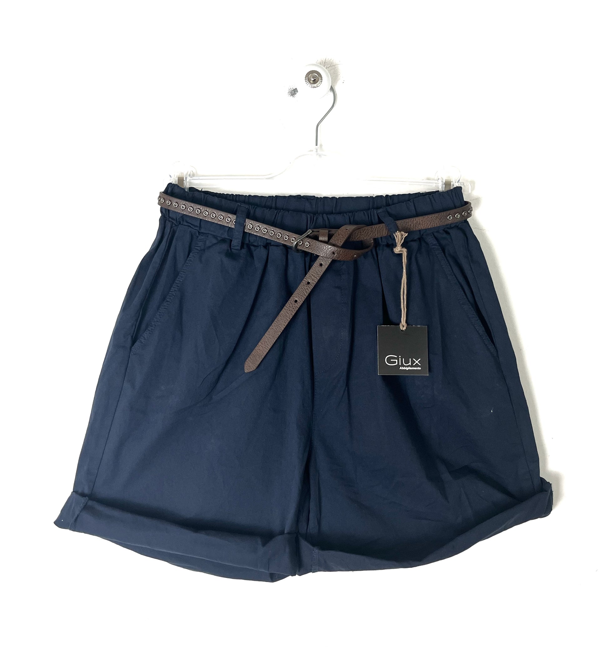 Bermuda in cotone leggero. Vita alta con elastico in vita, passanti con cinturina in ecopelle. 2 tasche davanti oblique. 2 tasche finte dietro.