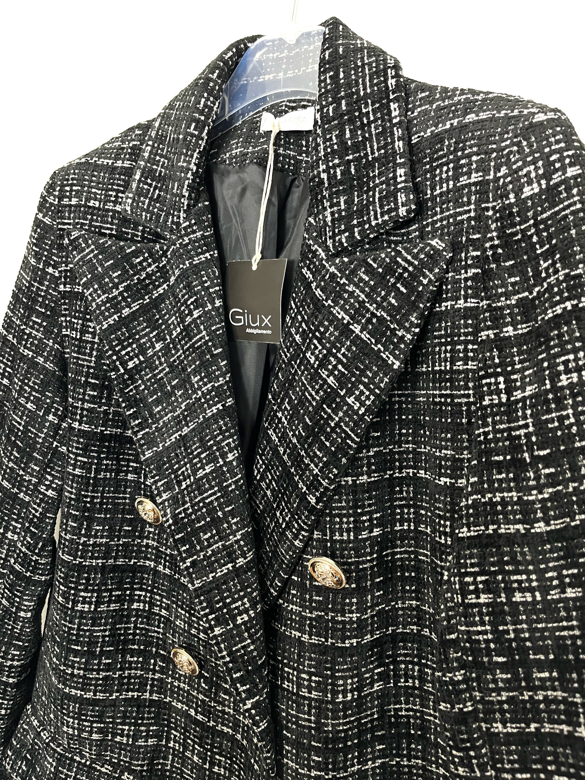 Blazer doppiopetto elegante, boucle di ciniglia, foderato con spalline
