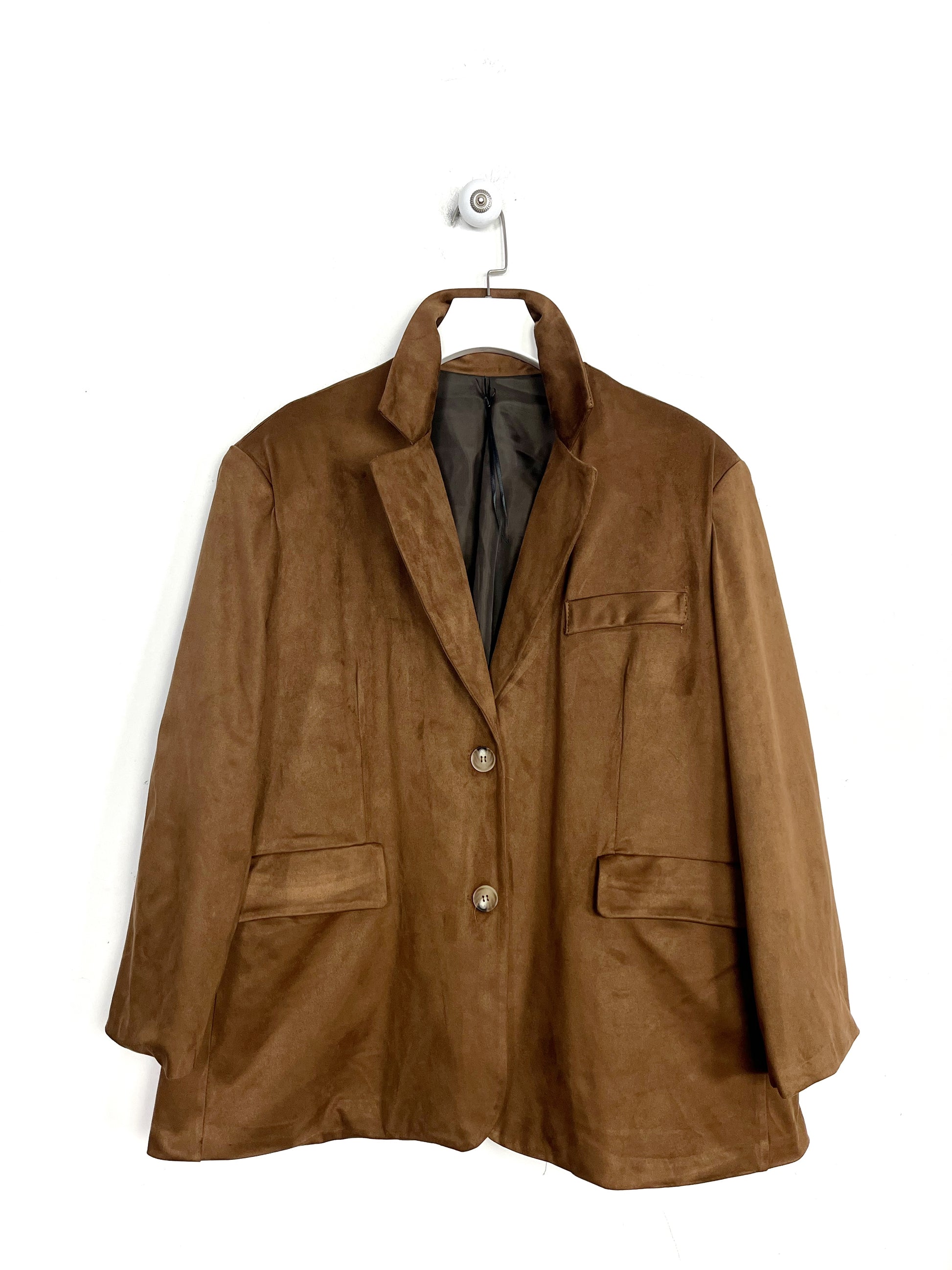 Blazer in tessuto scamosciatoclassico dal taglio over manica lunga. Colletto e revers, tasche con baschina. Chiusa da due bottoni con asole. Spallotte. Foderata.