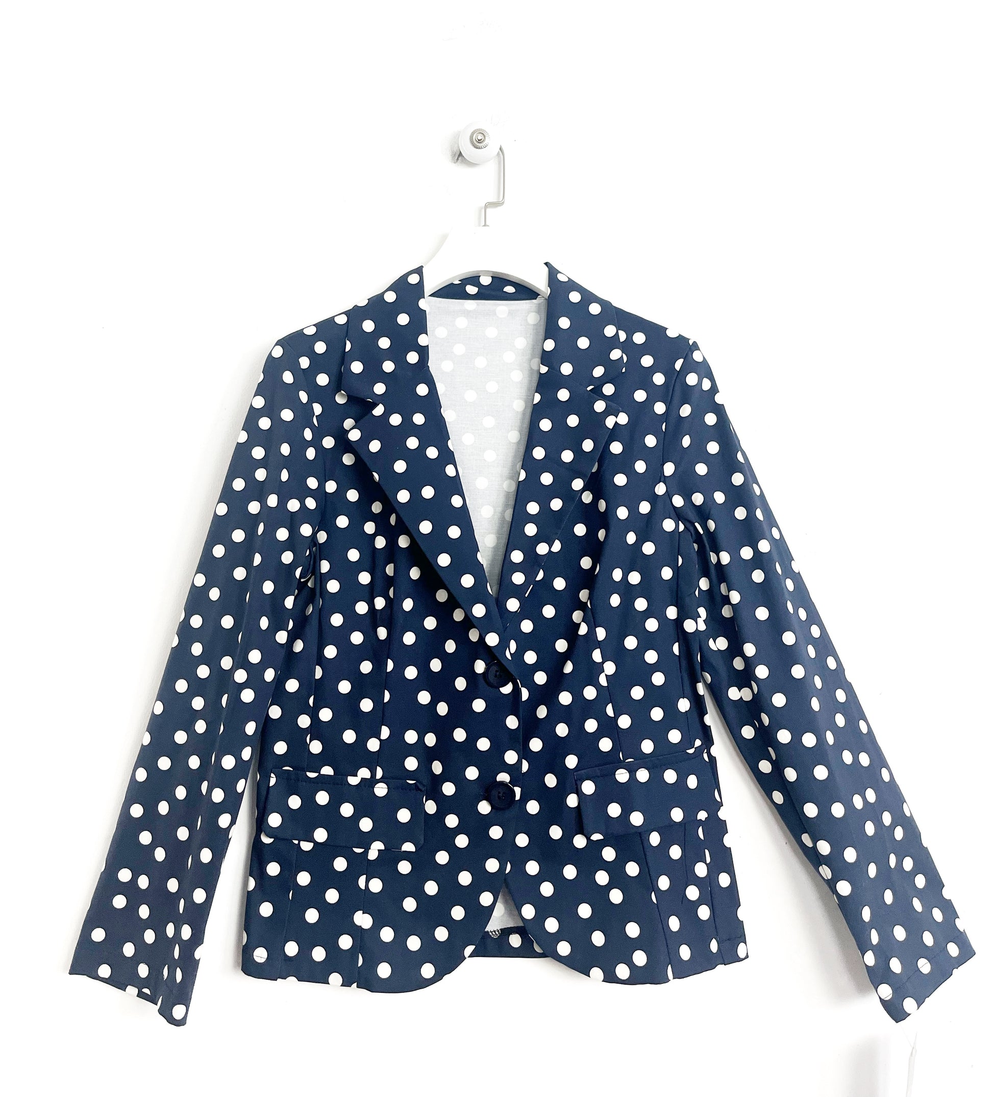 Blazer in cotone elasticizzato con maniche lunghe. Colletto e revers, tasche finte con patta applicata. Chiusura con fue bottoni. Sfoderata.