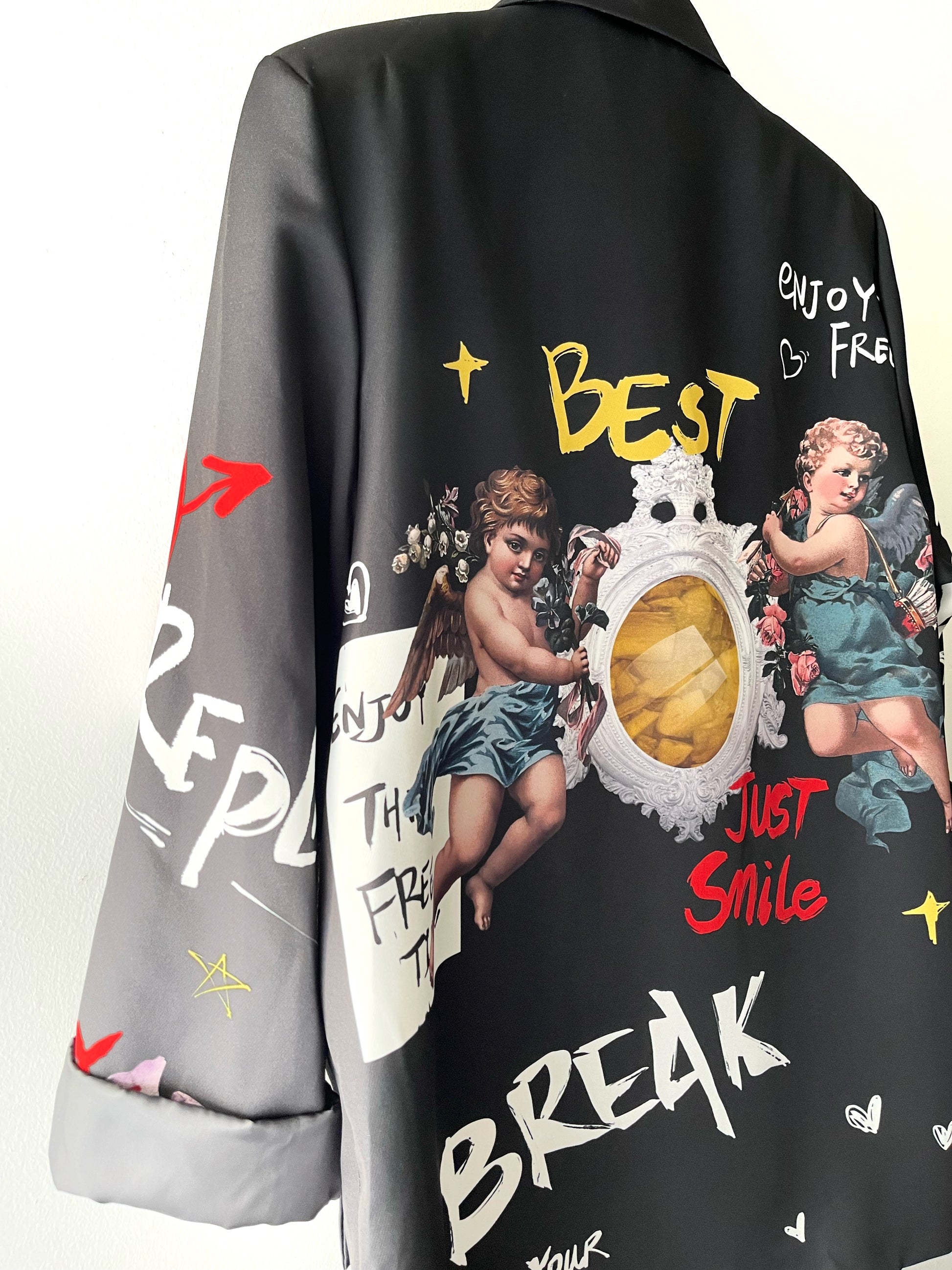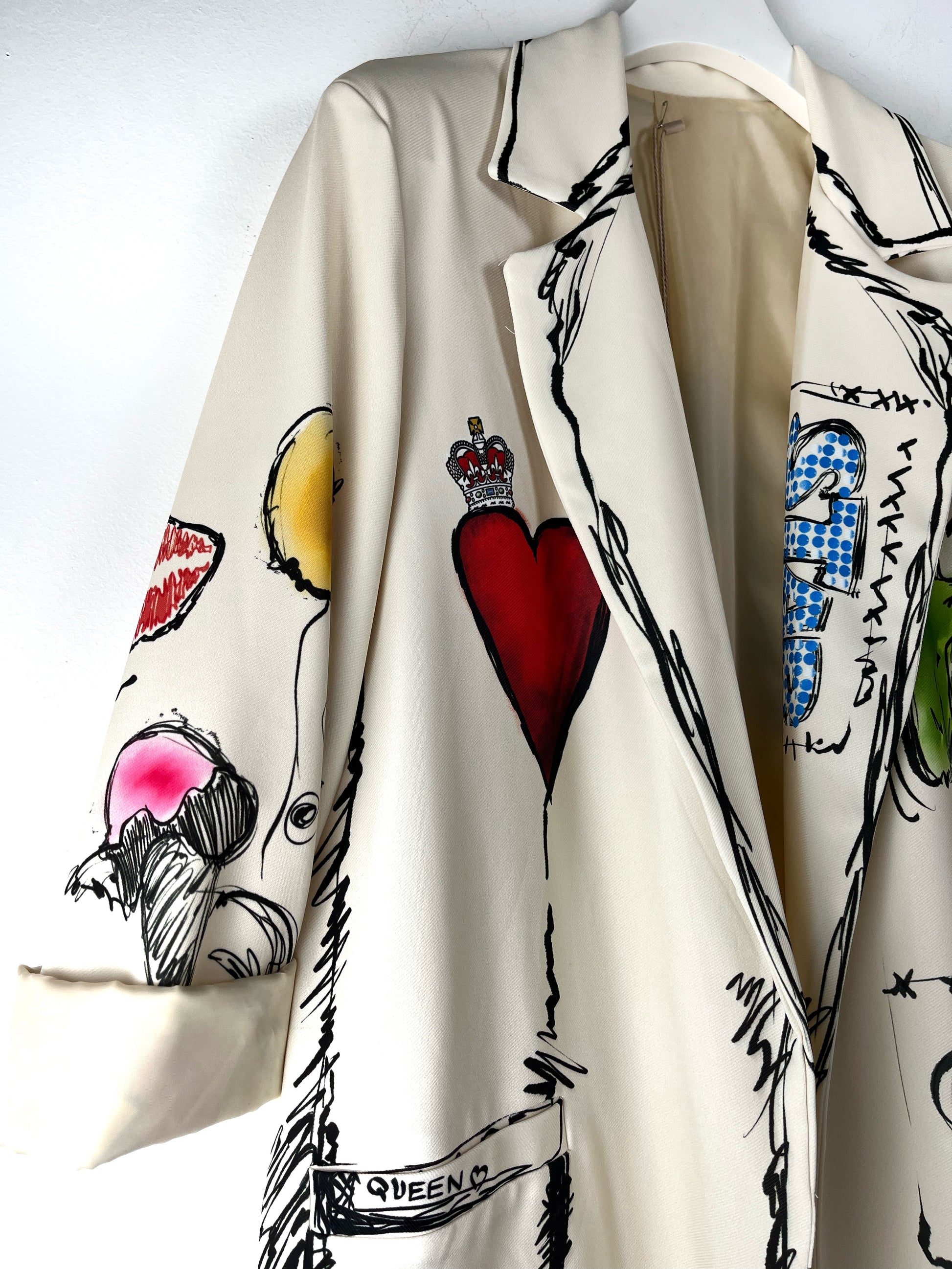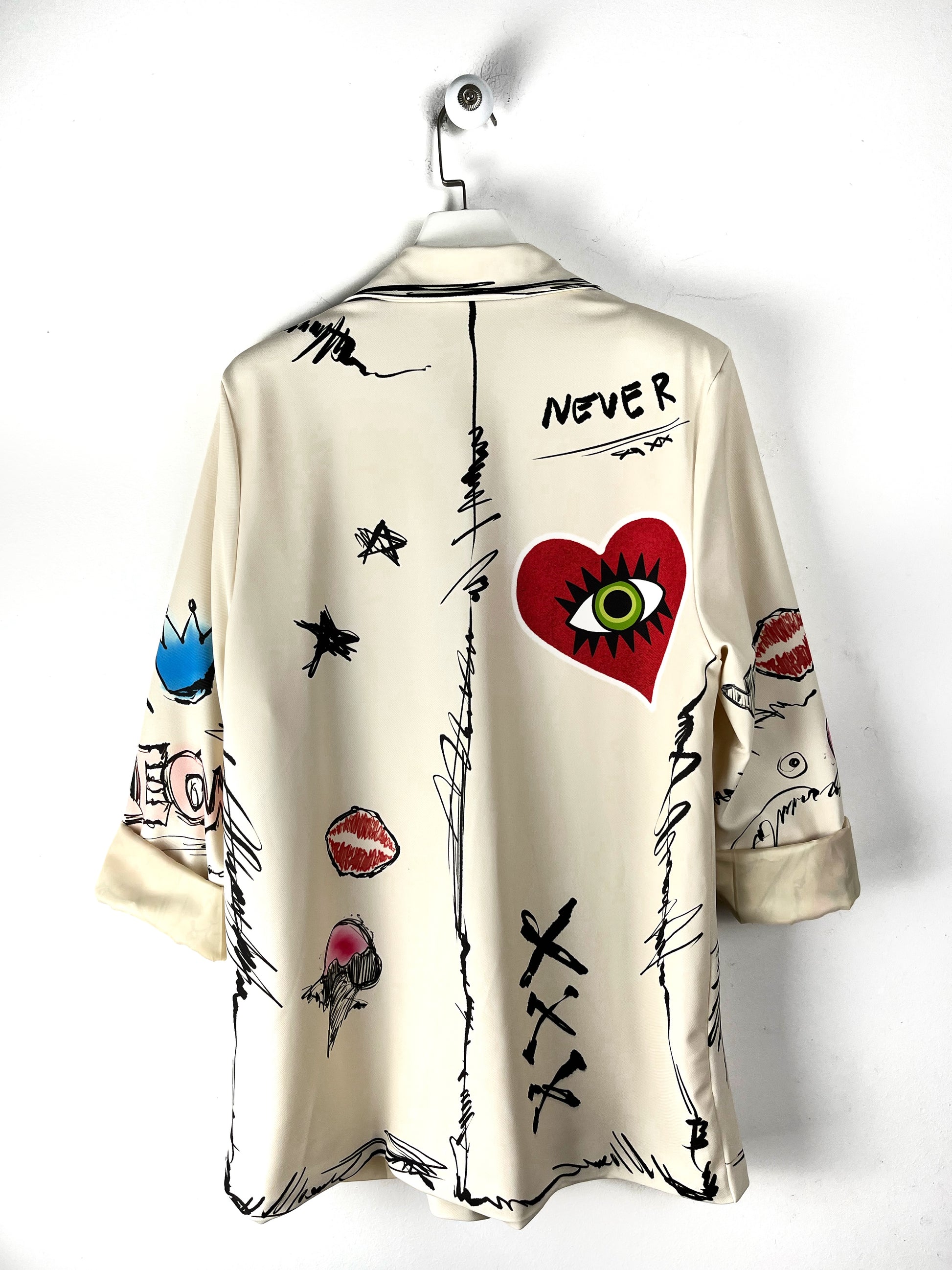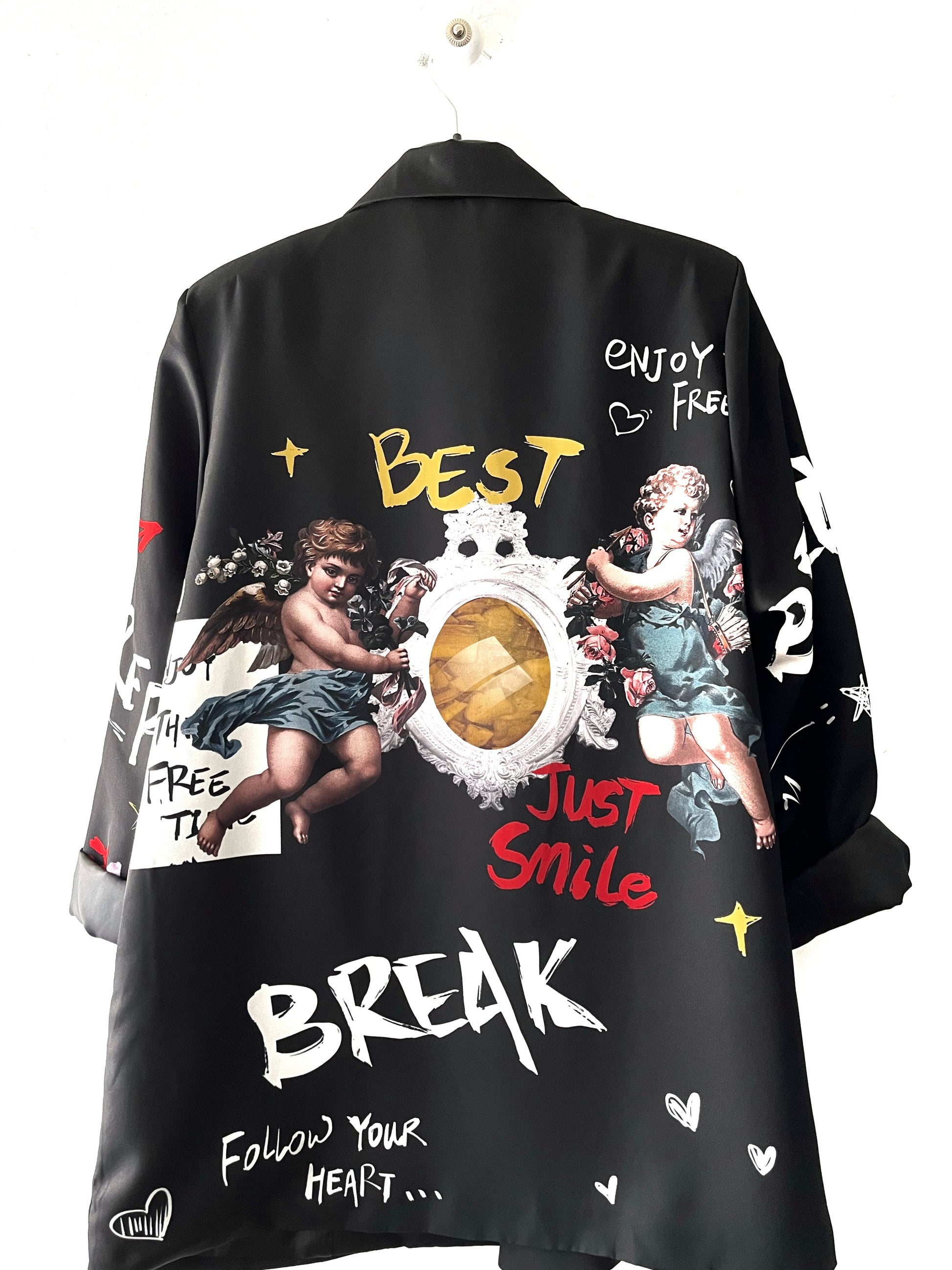 Blazer dal taglio maschile. Spalle imbottite. Colletto e revers, no bottone e asola. Foderata