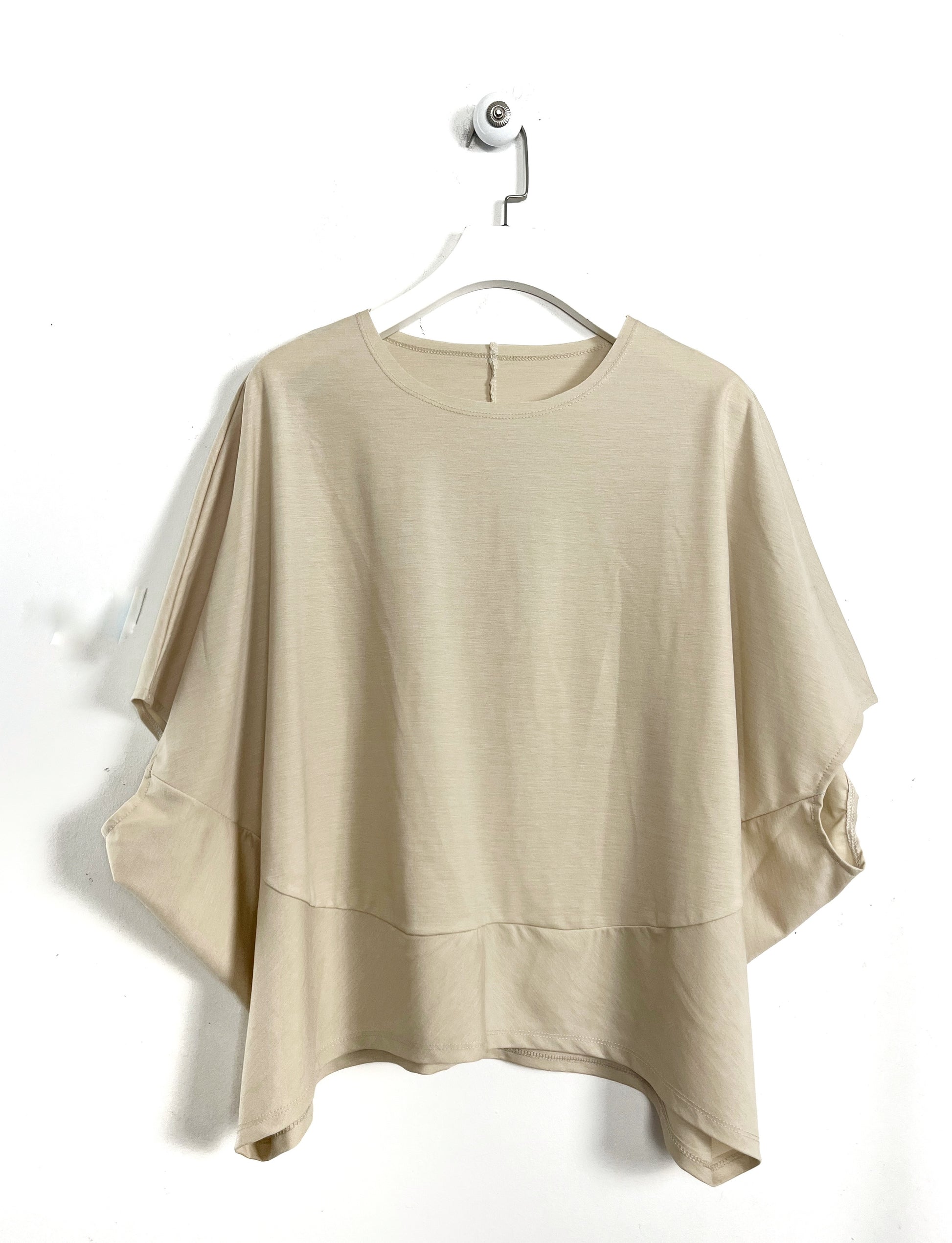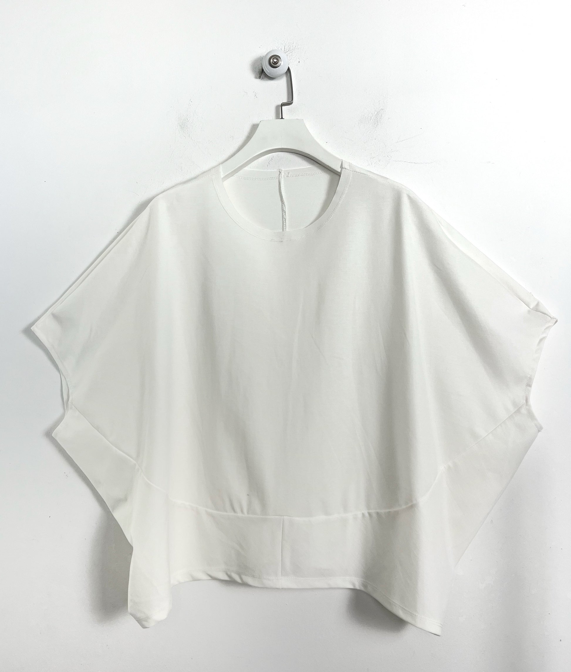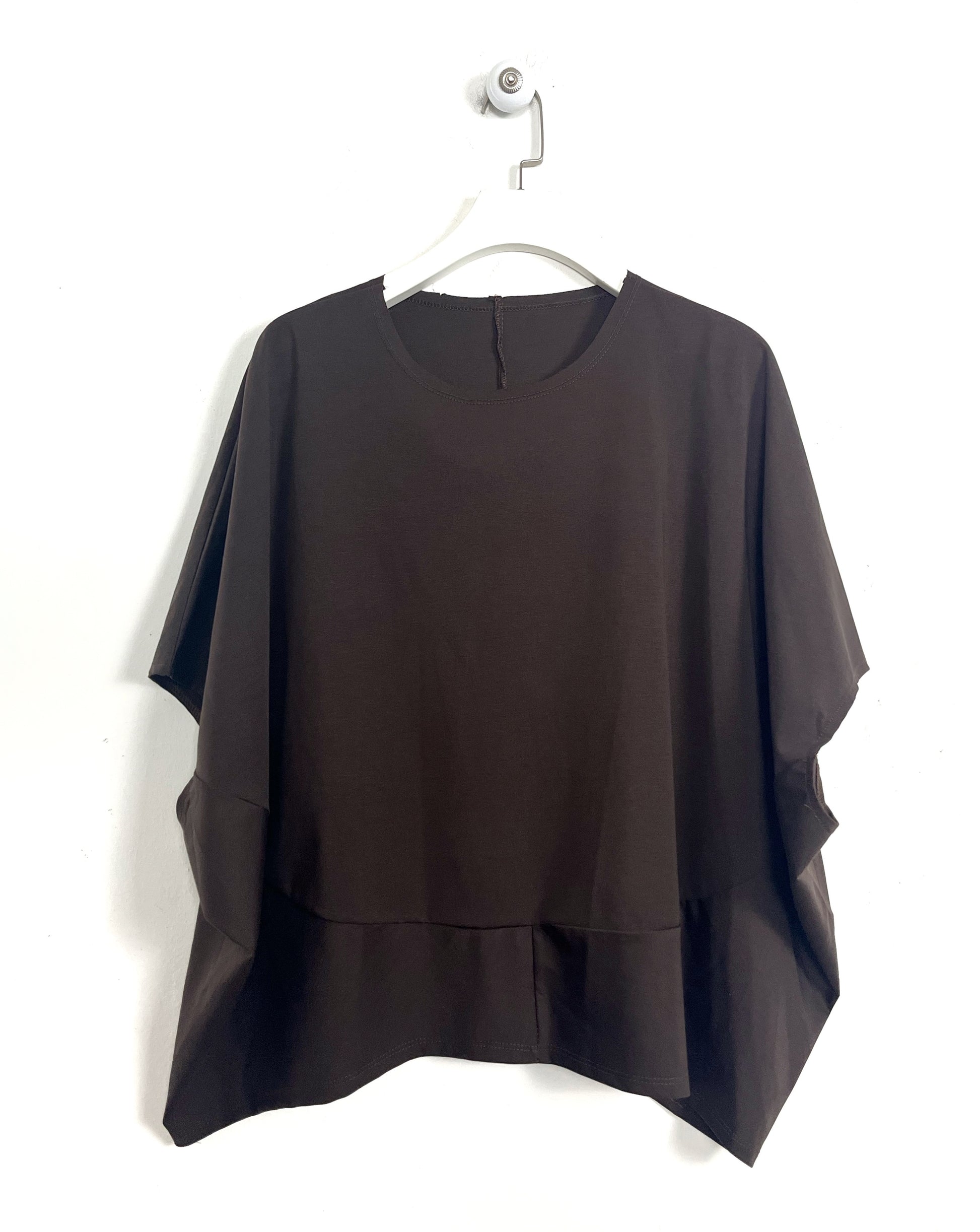 Blusa girocollo in leggerissimo tencel. Spalla ribassata, morbida sul seno, mezza manica.
