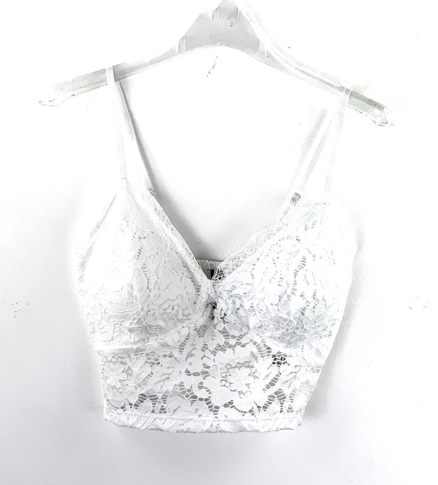 Bea lette in pizzo, spalline sottili regolabili. Coppe inserite.