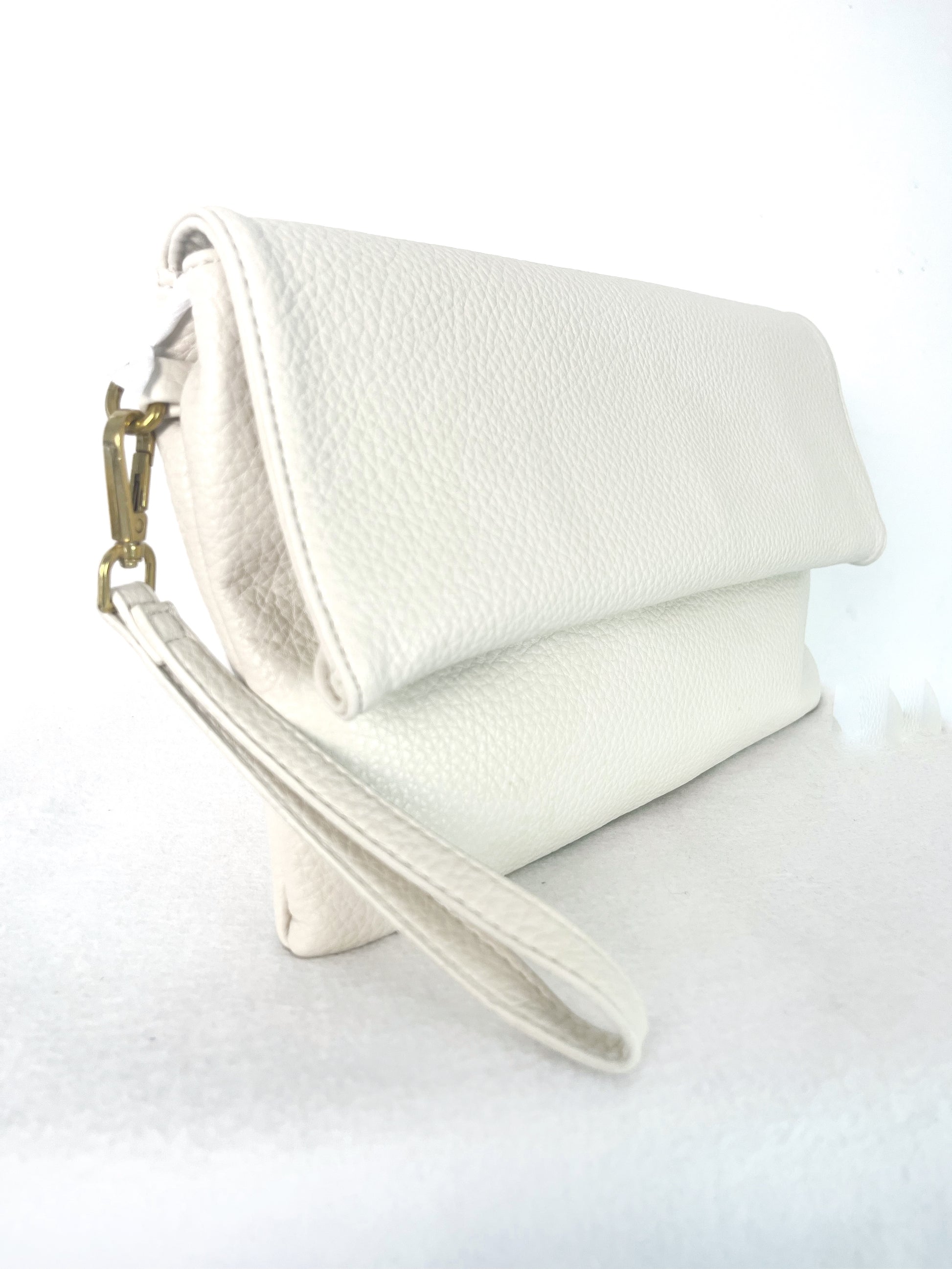 Bustina in ecopelle. Effetto martellato. Tracollina in dotazione