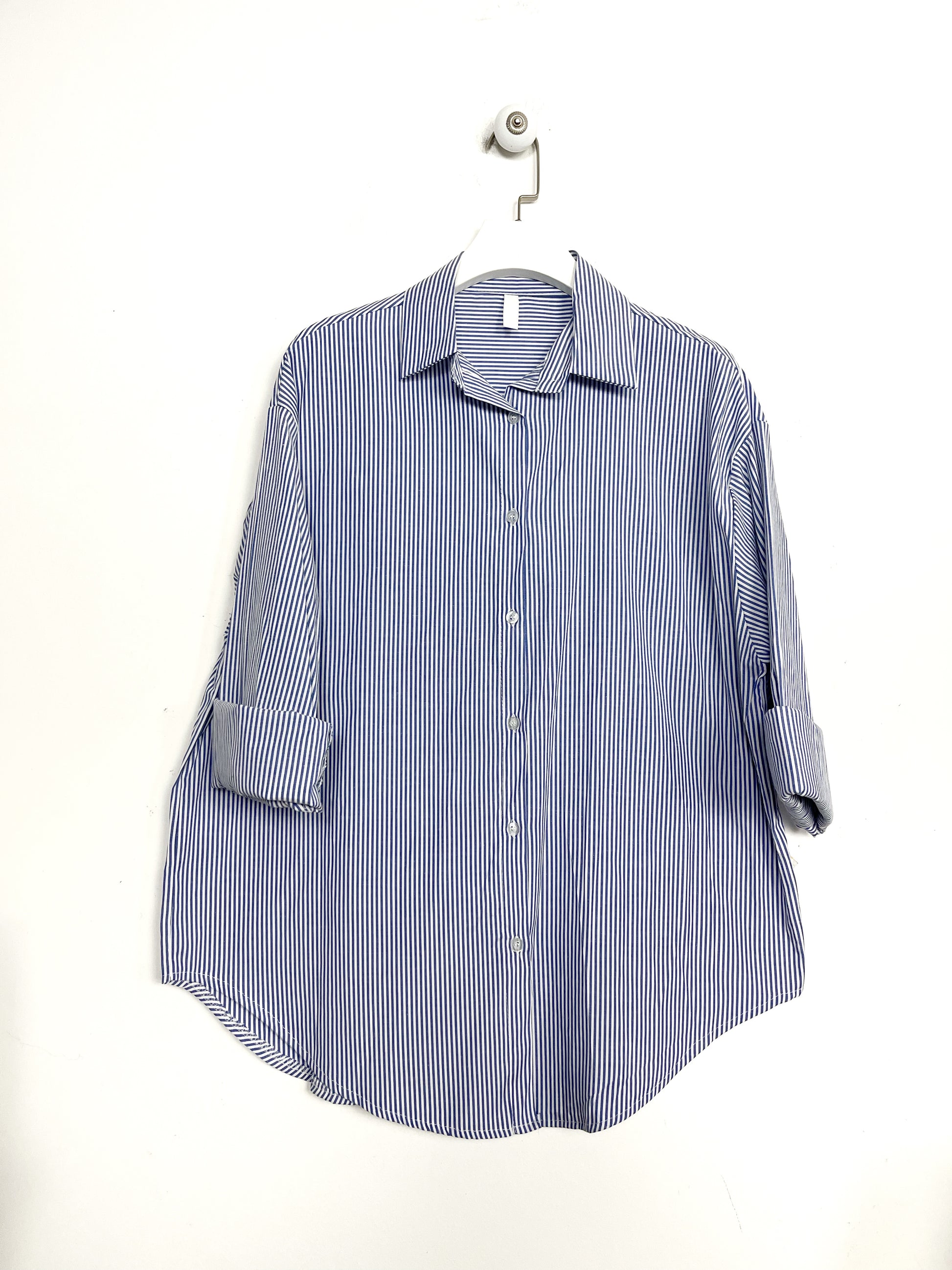 Camicia in cotone, con colletto tutta abbottonata sul davanti. Manica lunga con polsino risvoltata.
