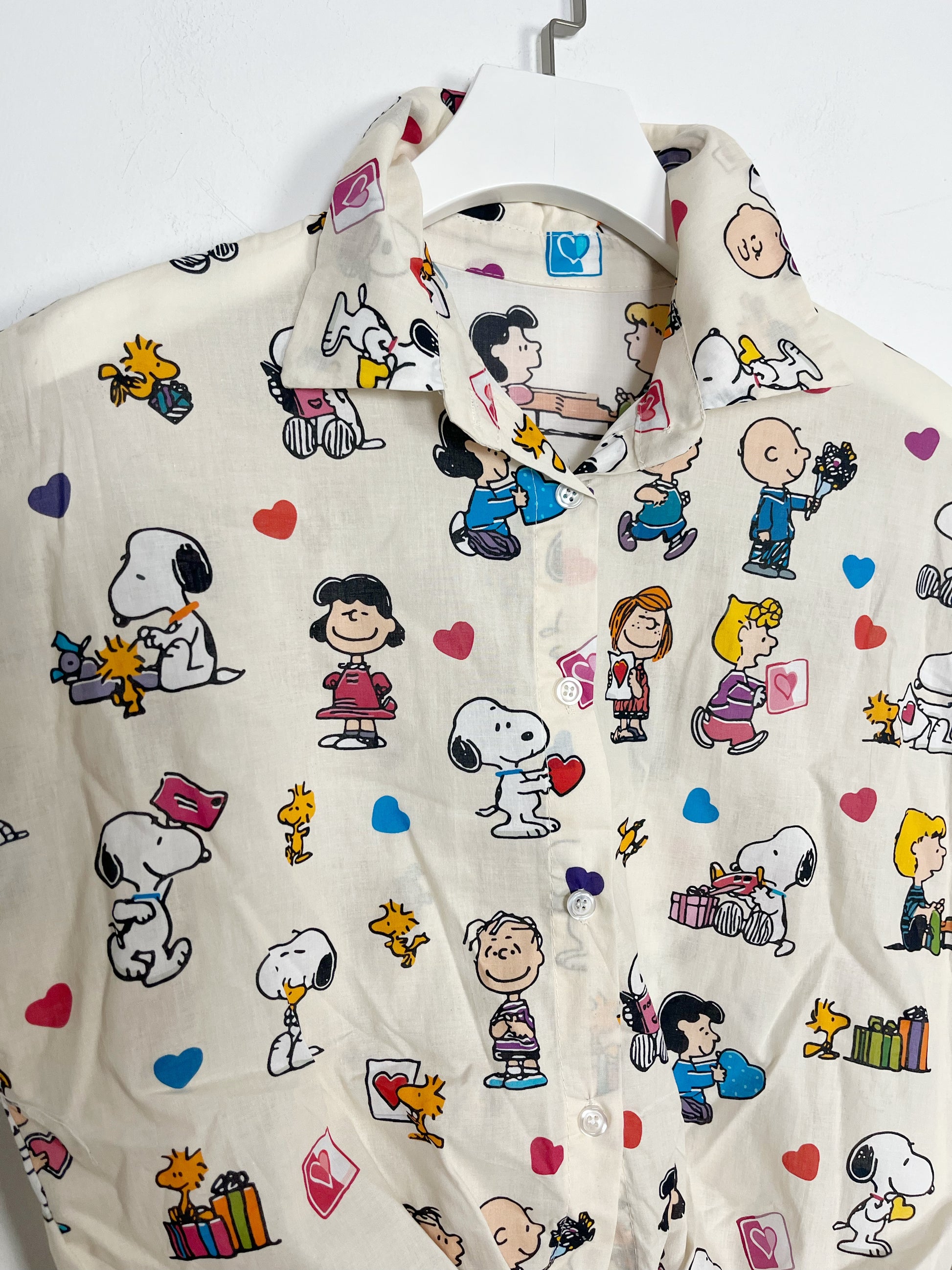 Camicia in cotone leggero, manica corta rivoltata. Stampe varie