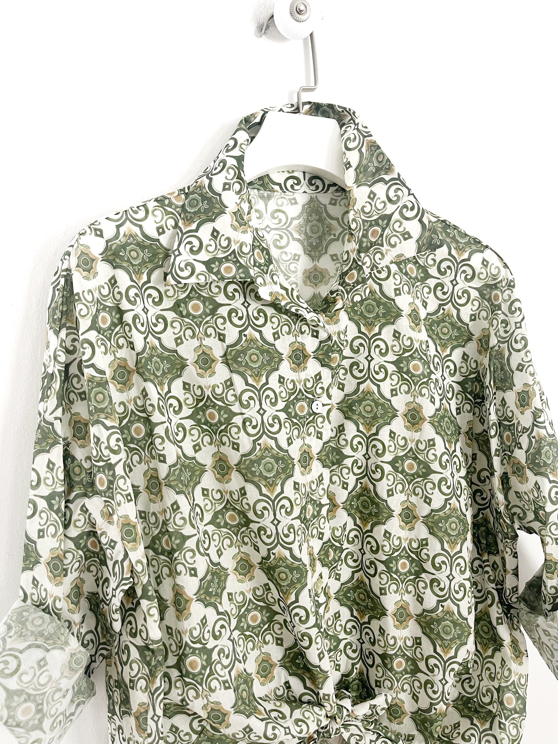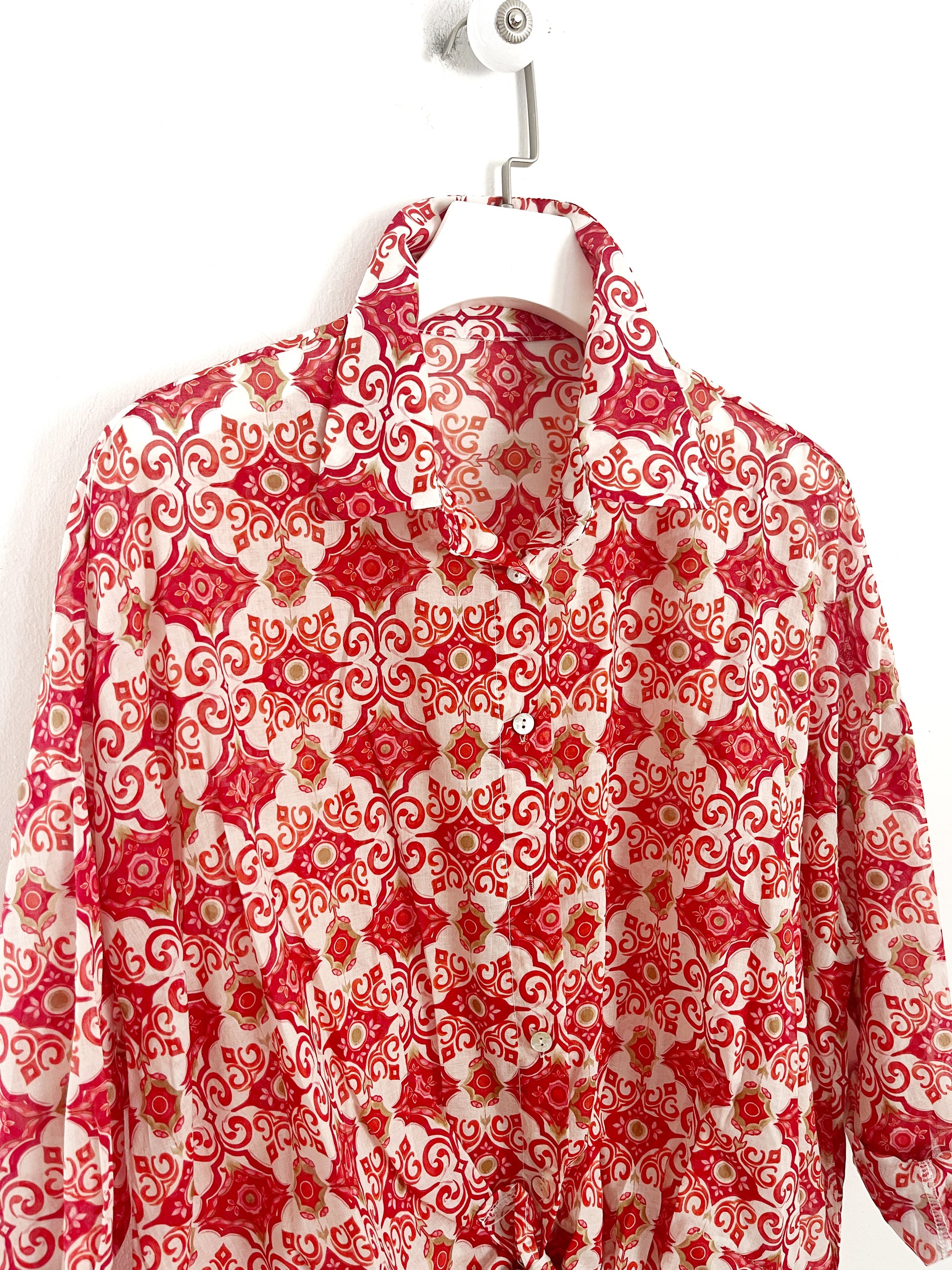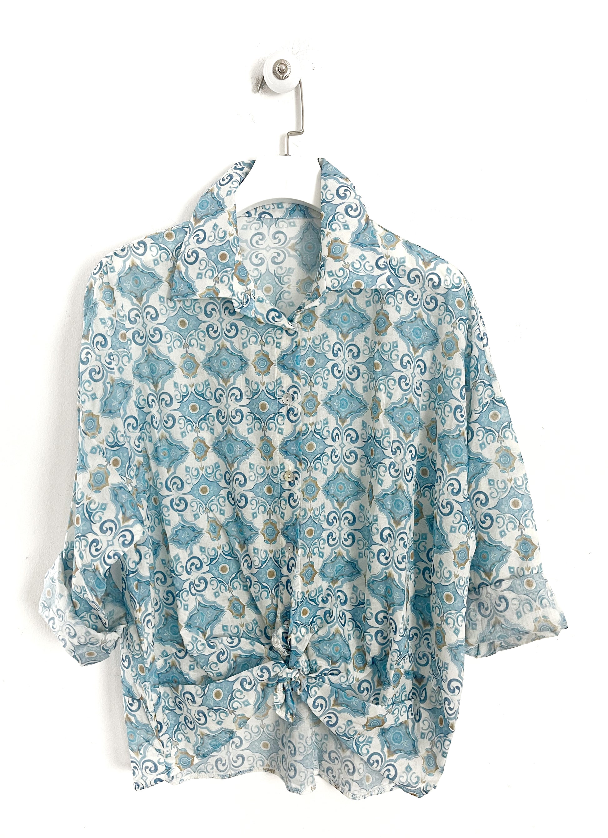 Camucua in cotone leggero, manica tre quarti rivoltata. Spalla ribassata.