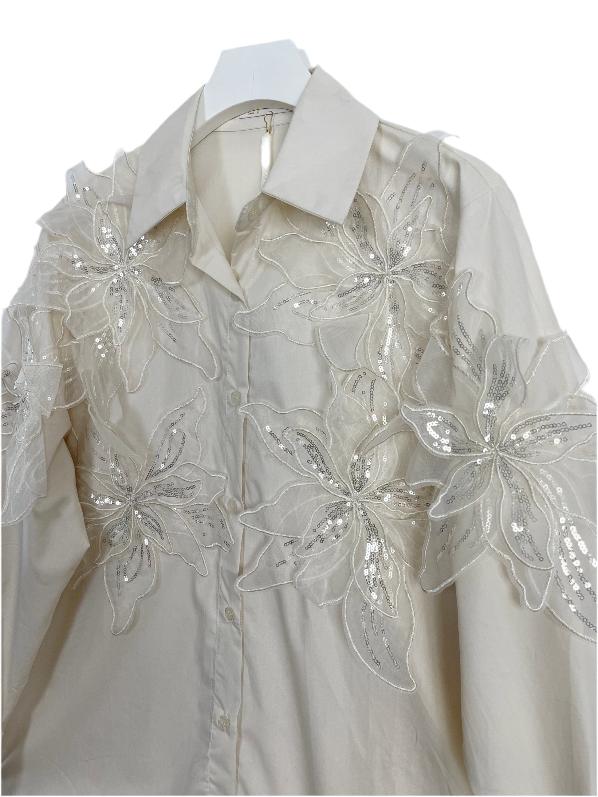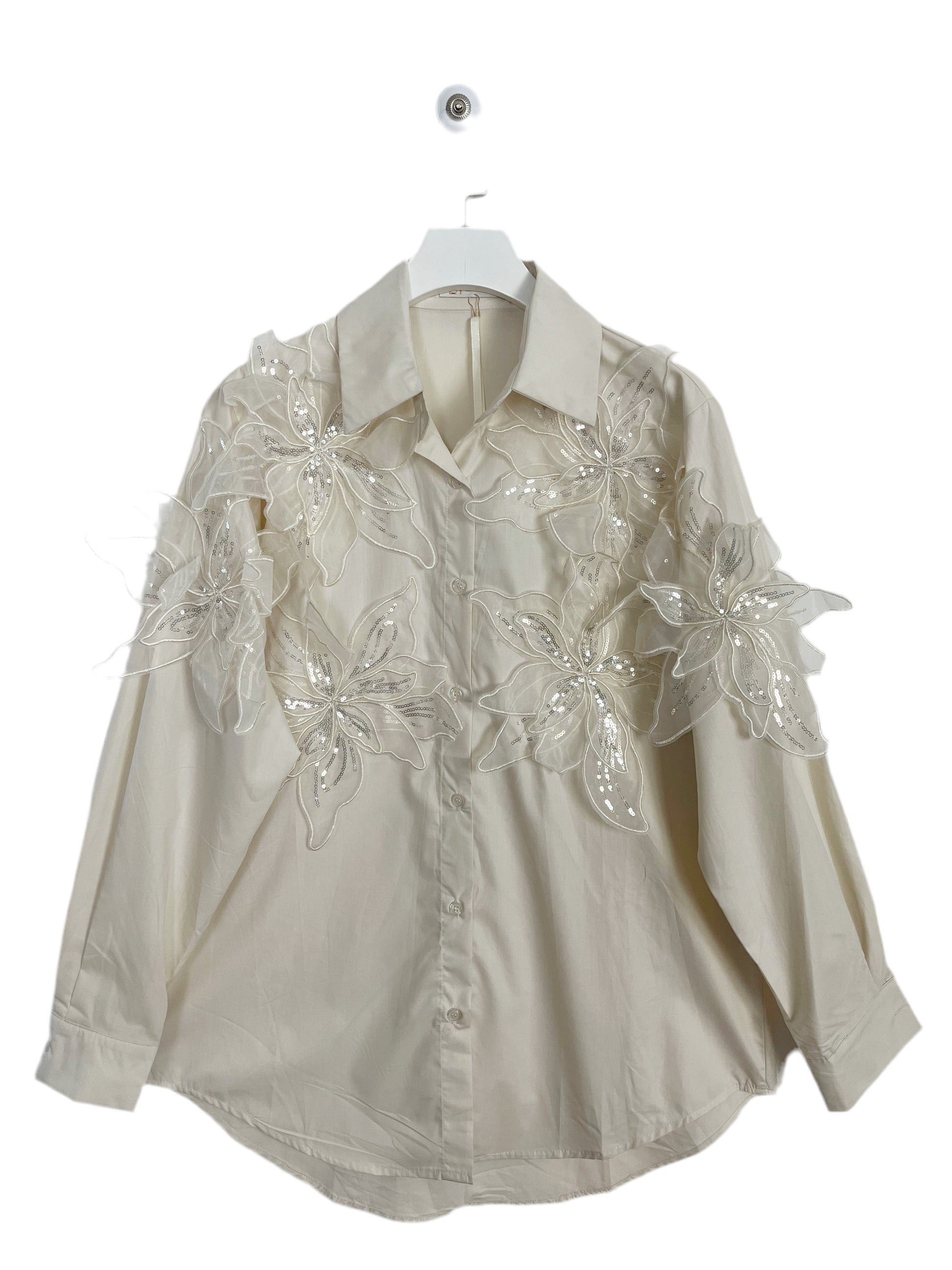 Camicia con fiori applicatimanica lunga.