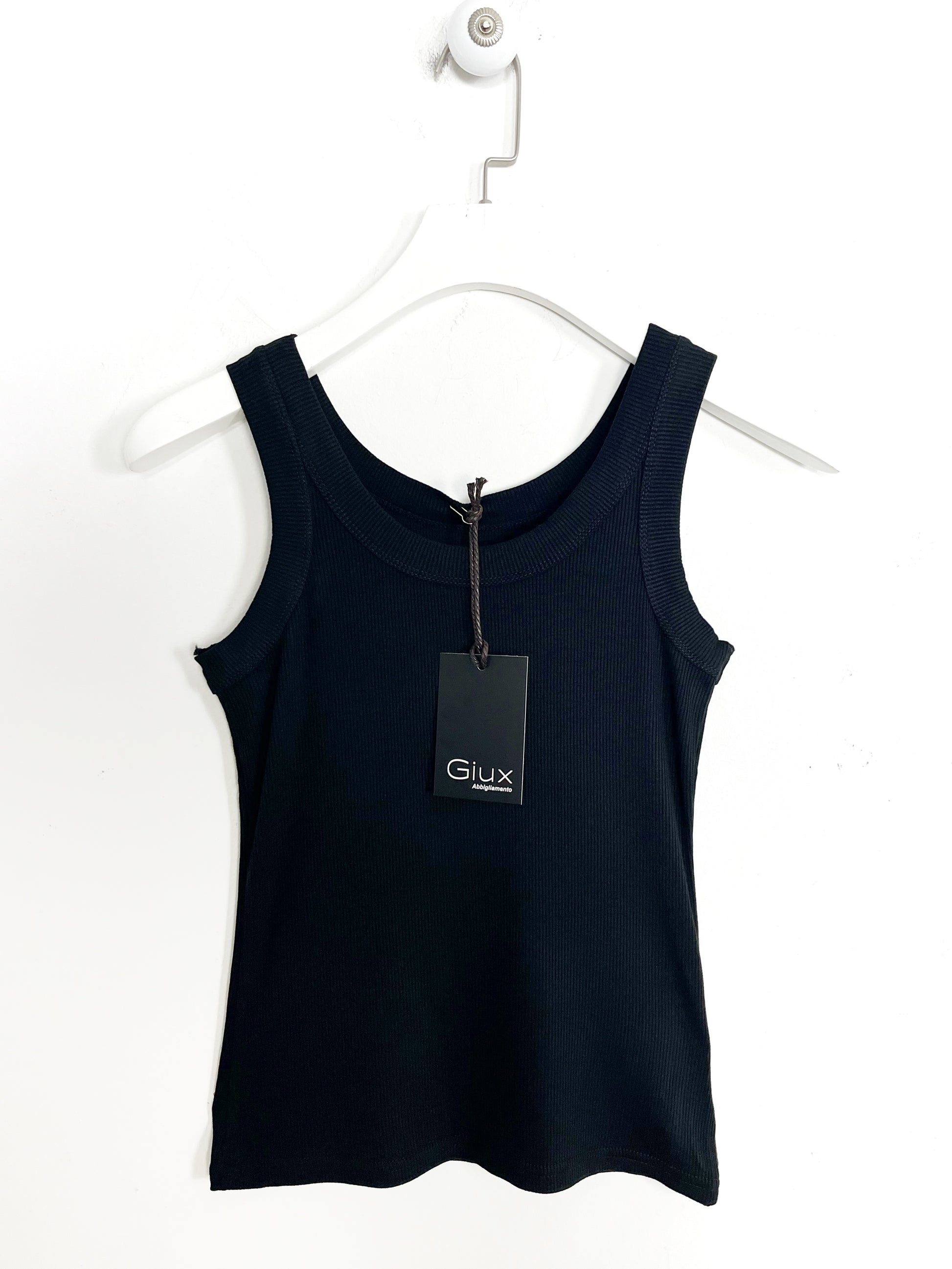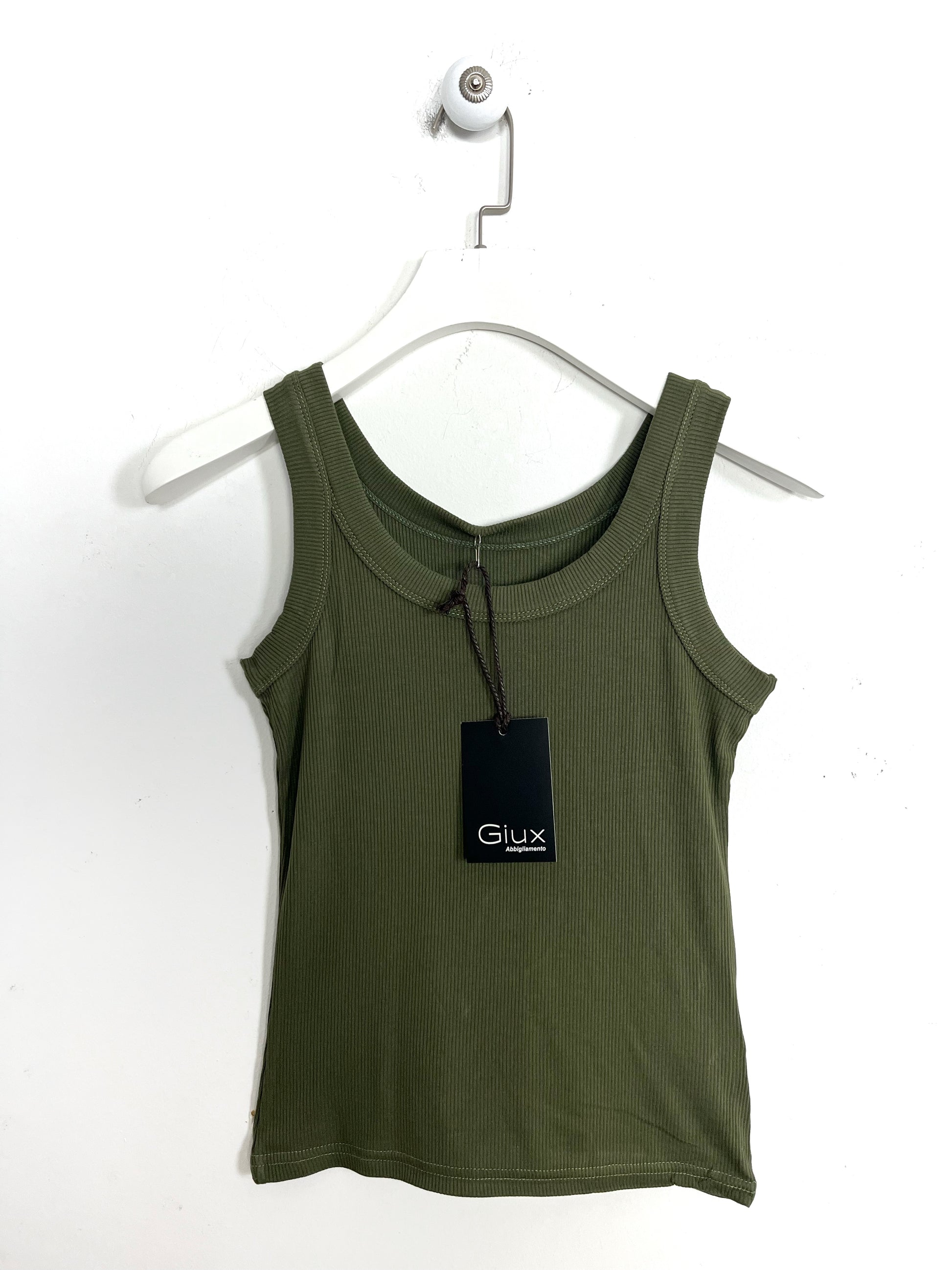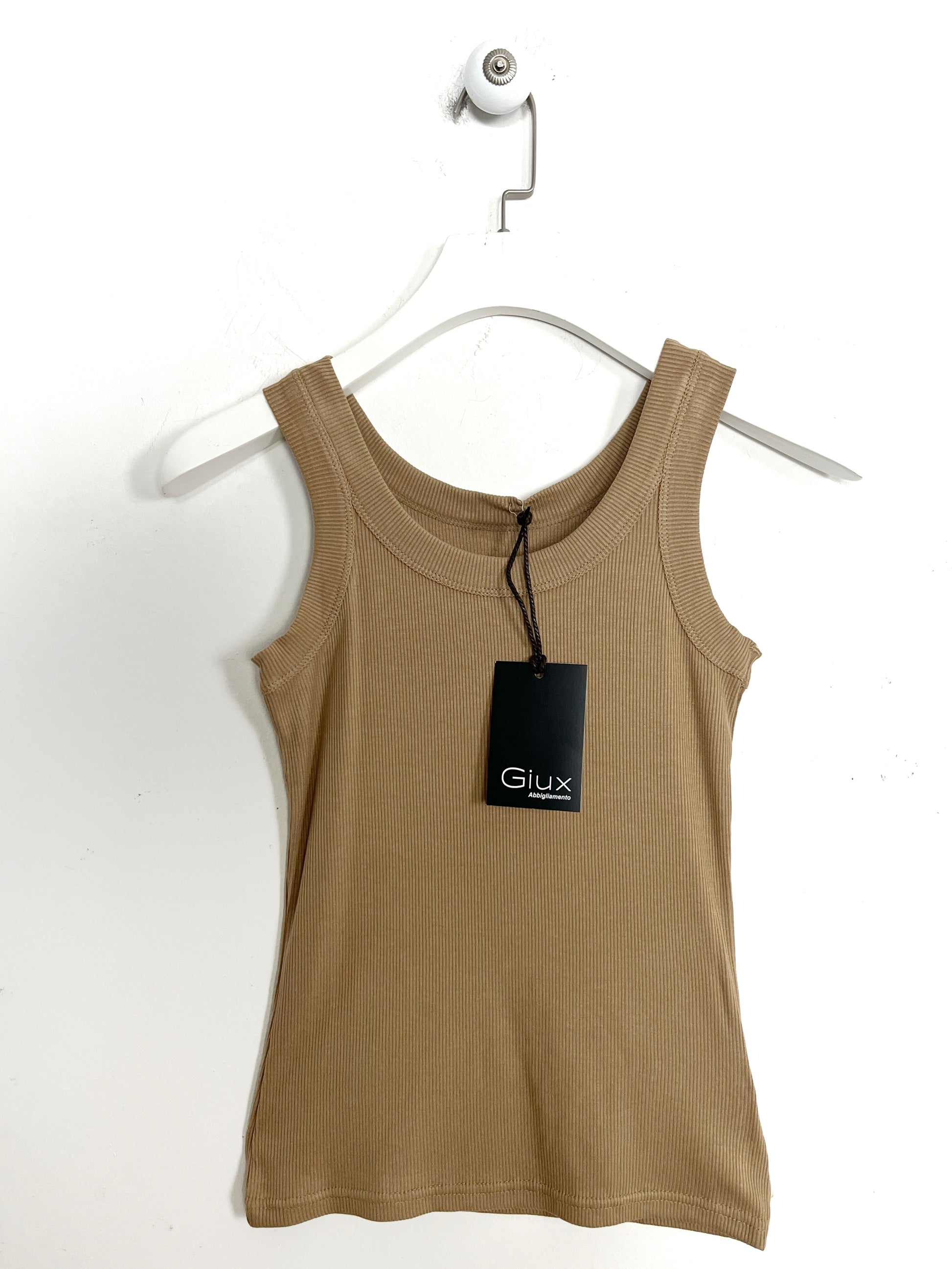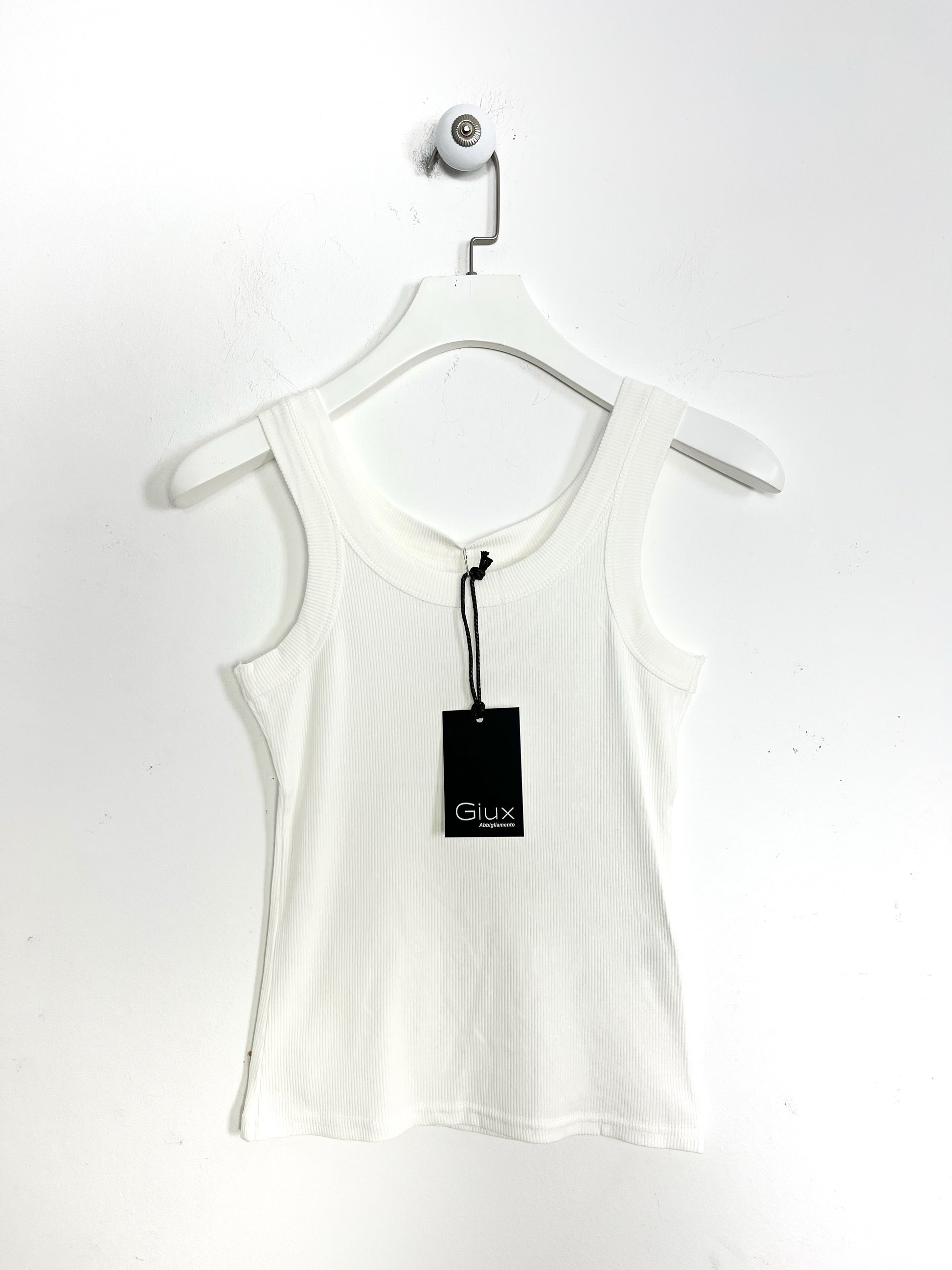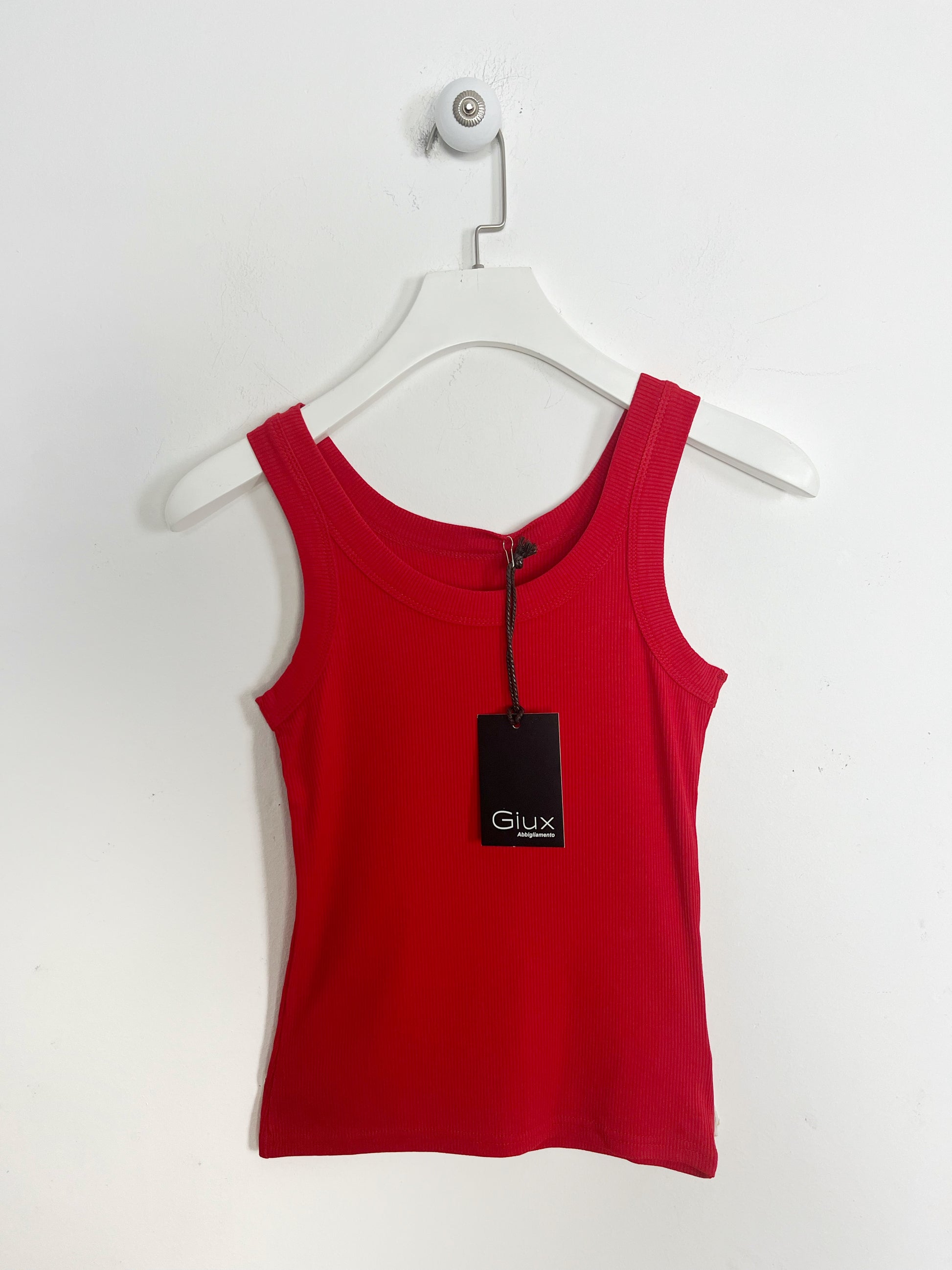 Canotta in viscosa elasticizzsta a costine con spallina. Cropped.
