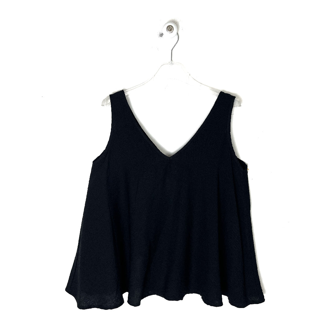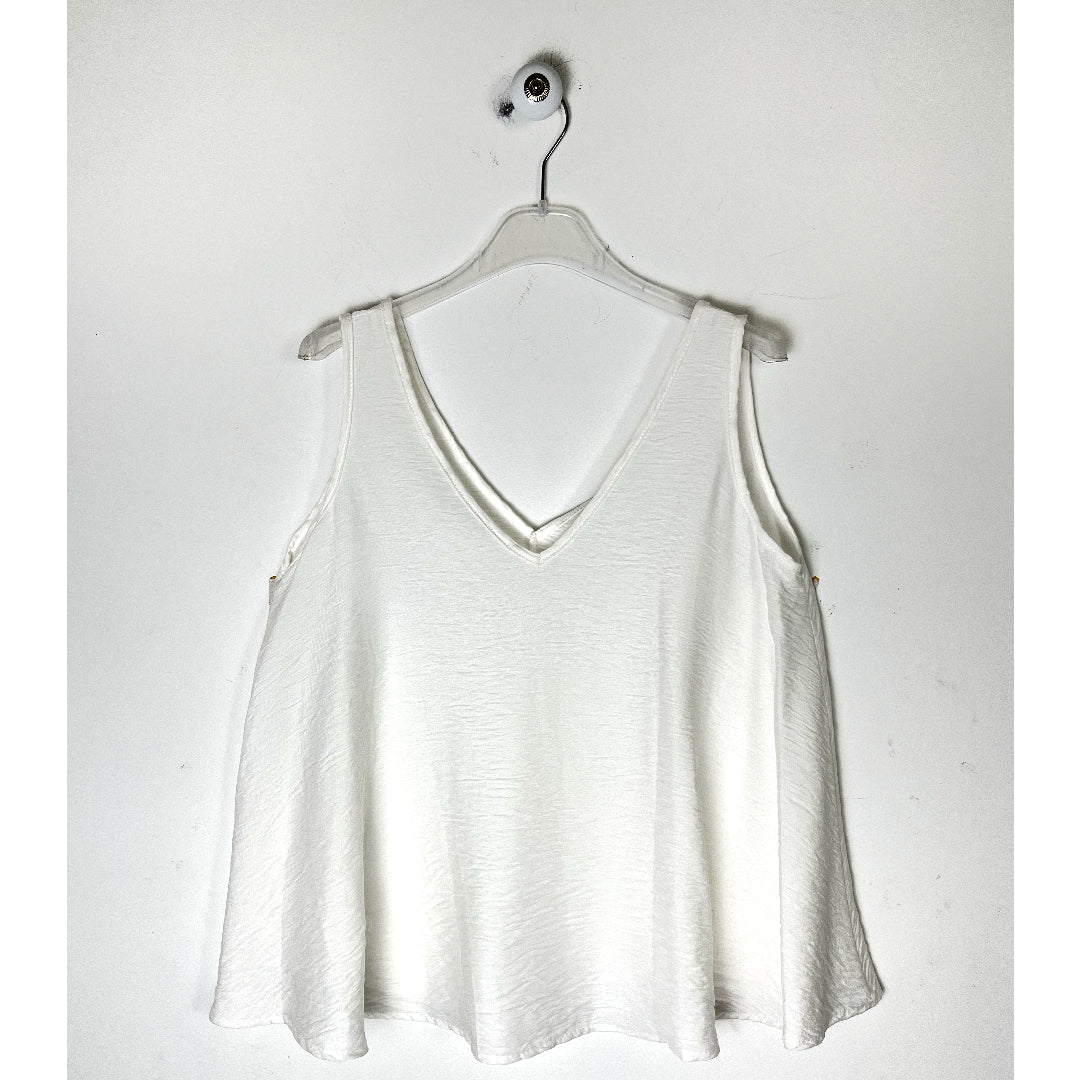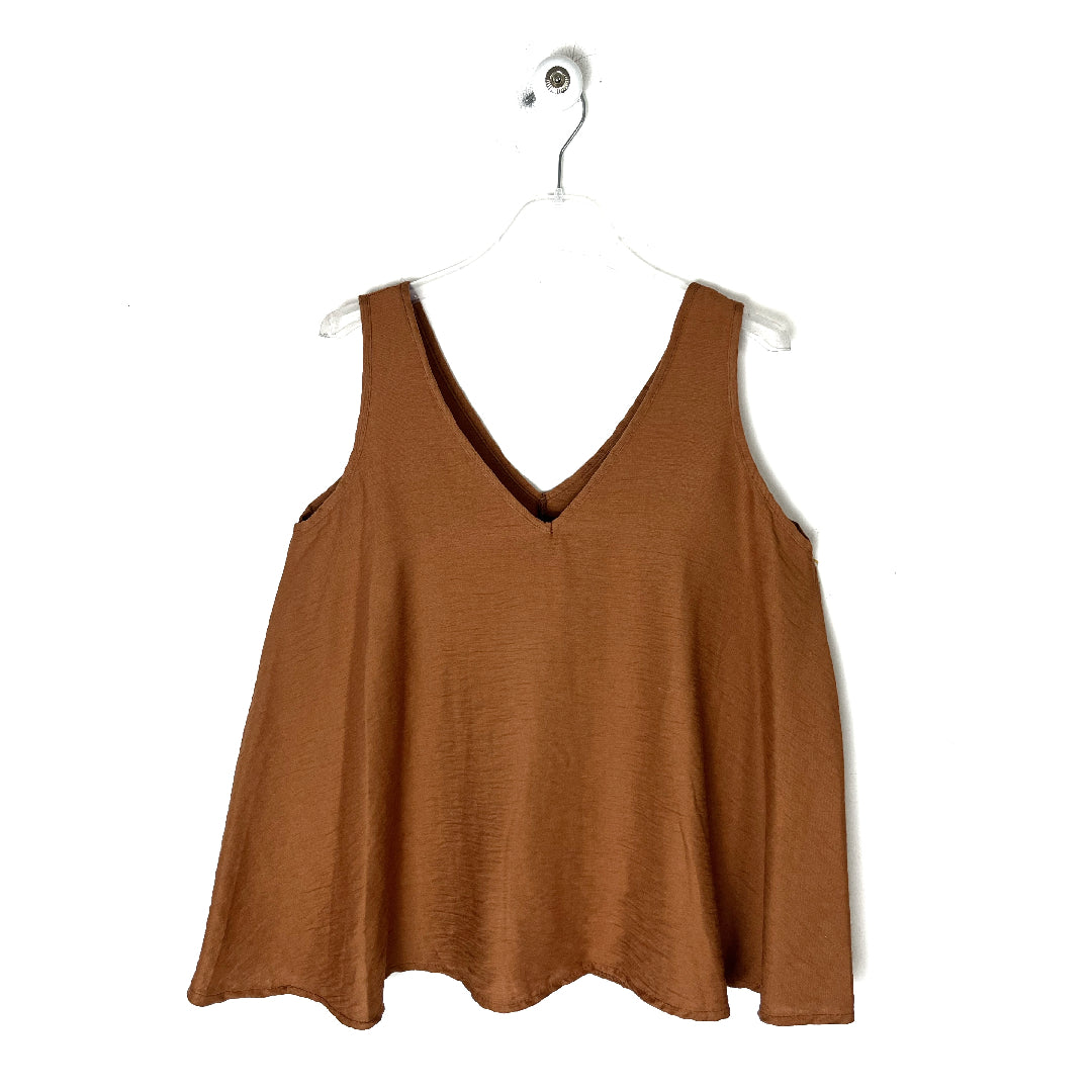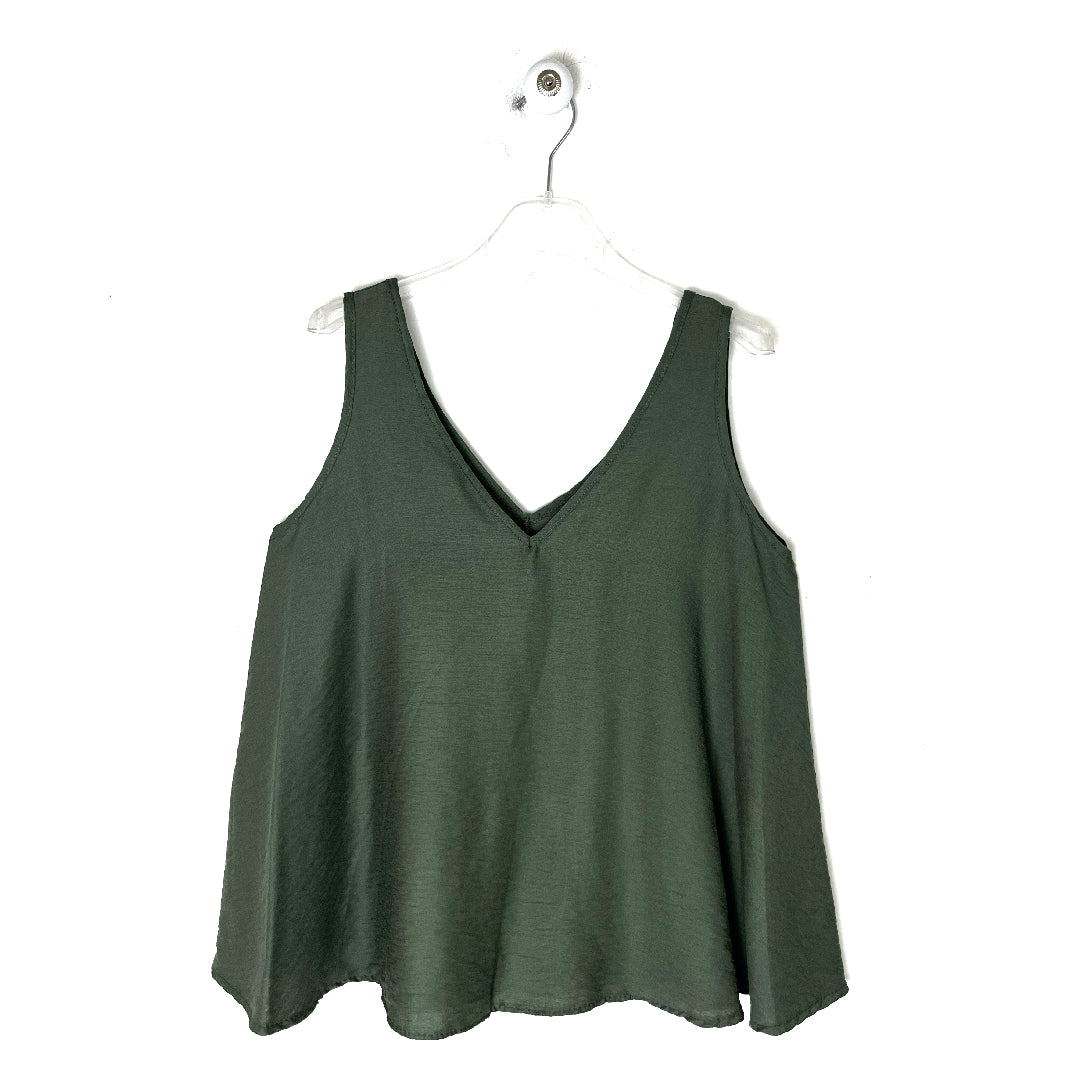 Canotta in tessuto leggero, scollata a V davanti e dietro. Cropped, svasata sul fondo