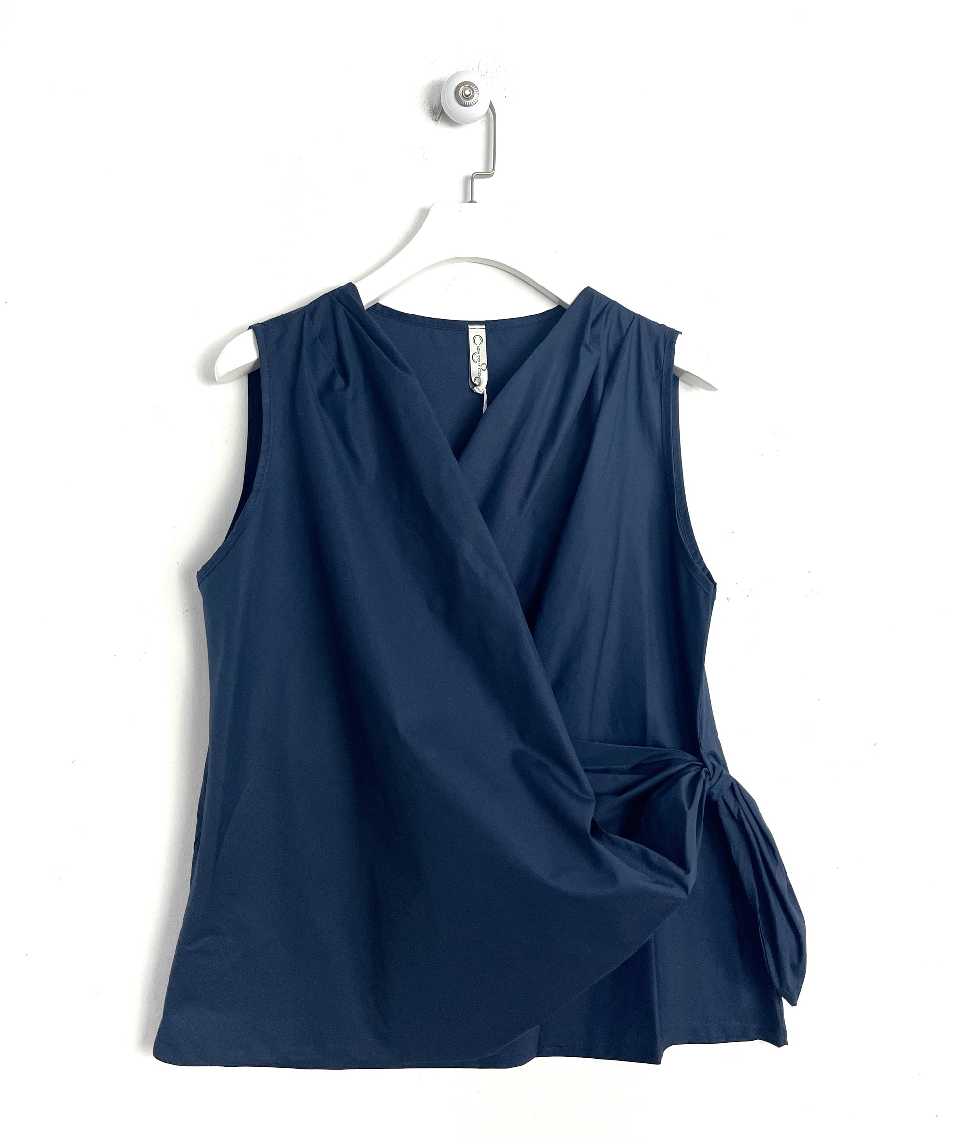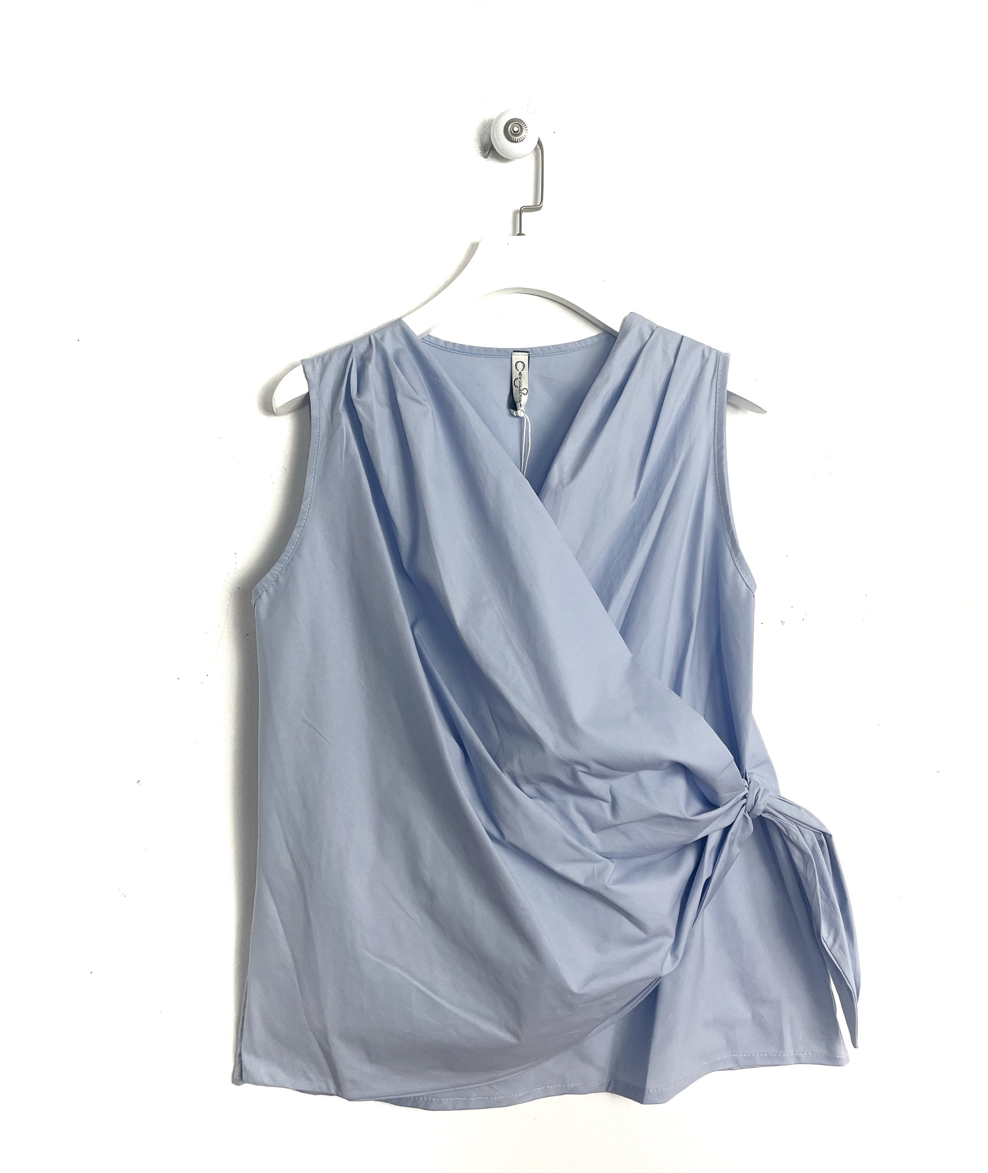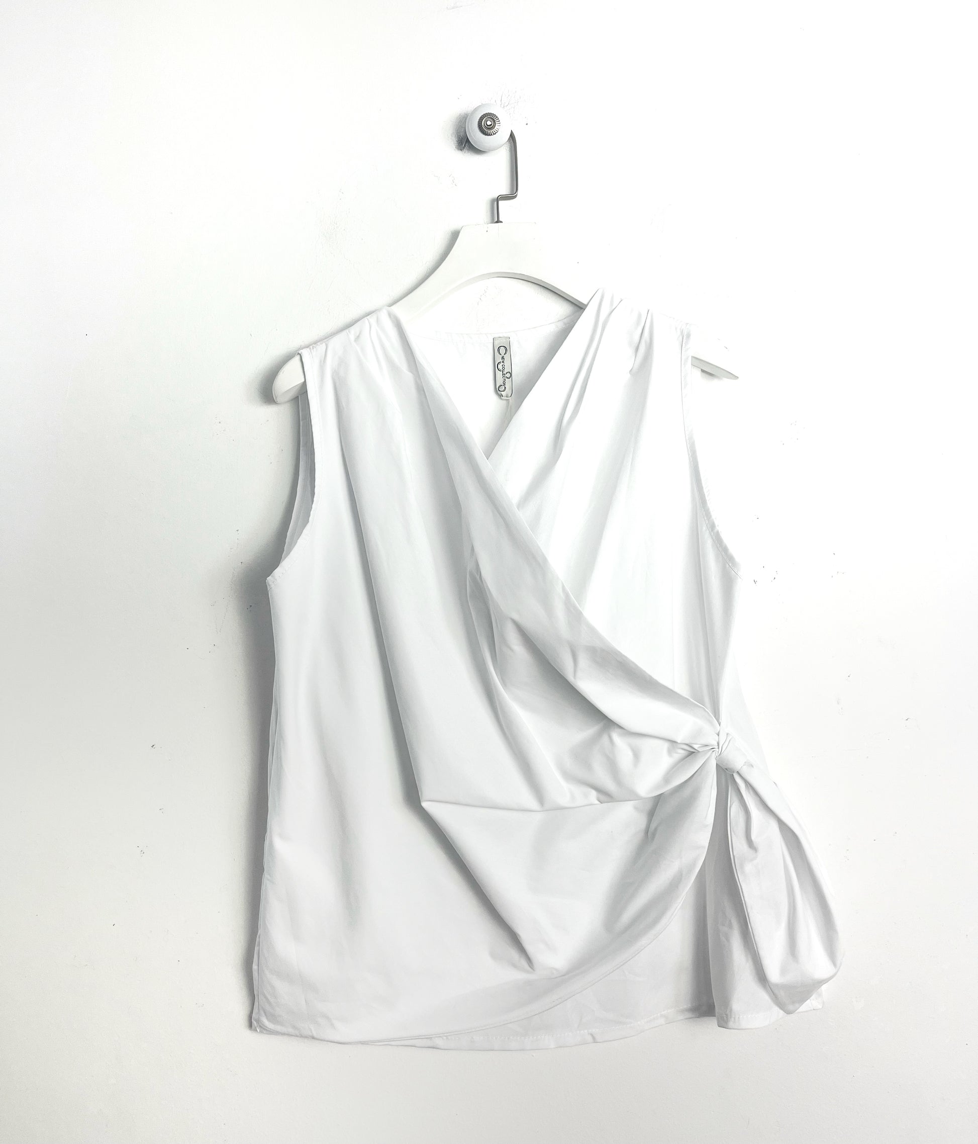 Canotta in punto Milano. Smanicata con incrocio drappeggiatoa sul davanti.