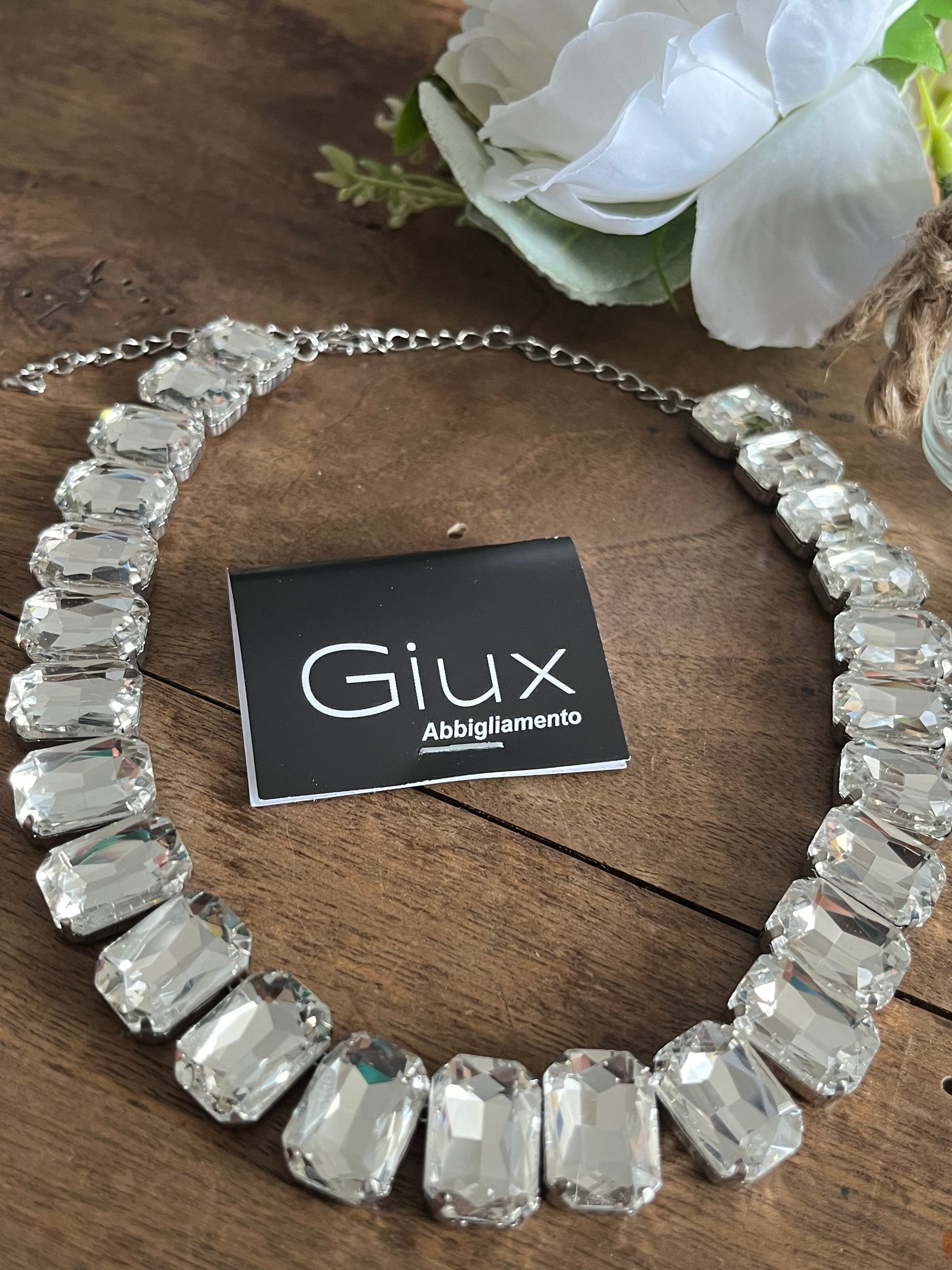 Collana in rame e zirconi a, con perno e farfallina in acciaio
