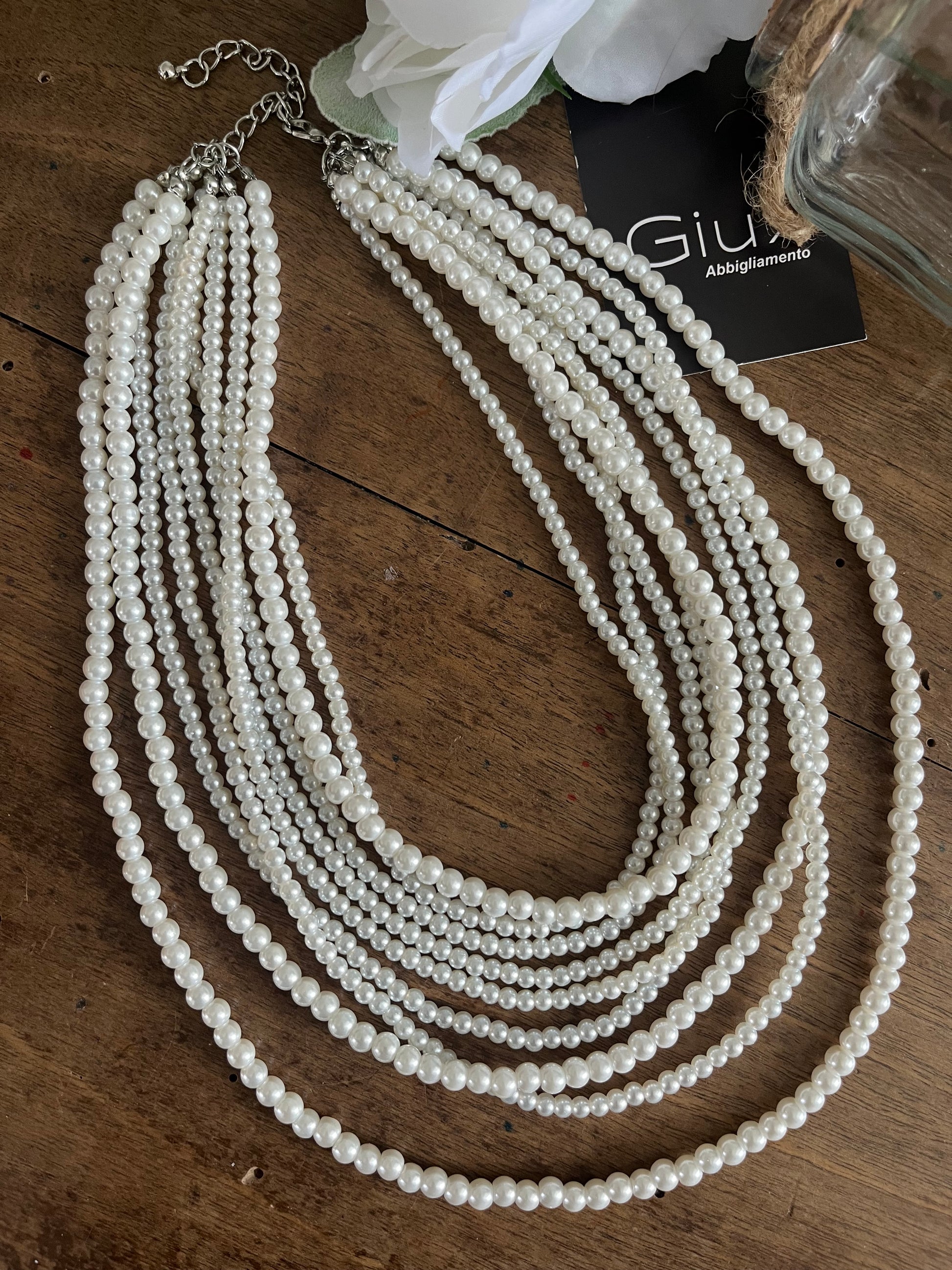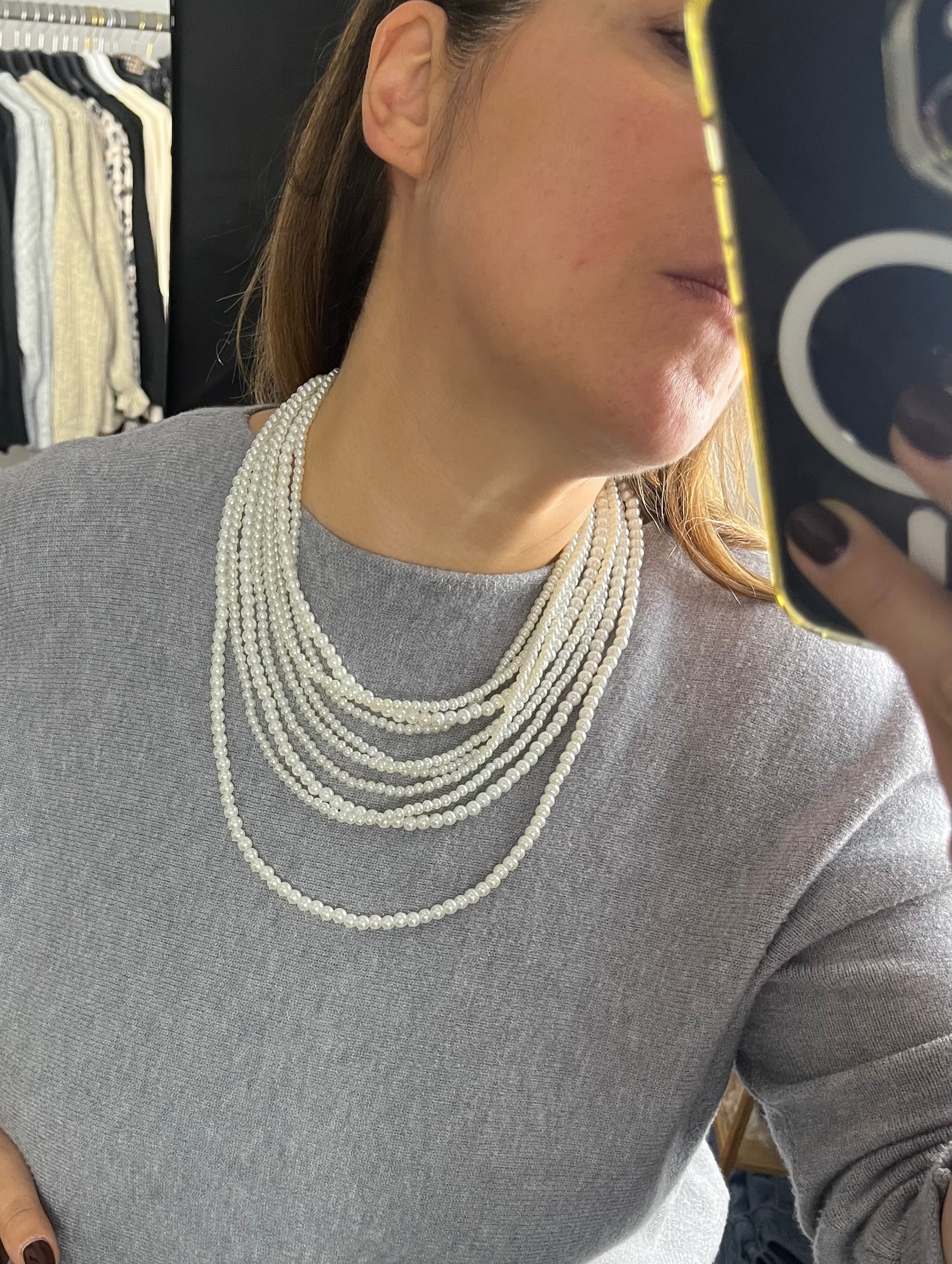 Collana 10 fili di perle, varie misure.