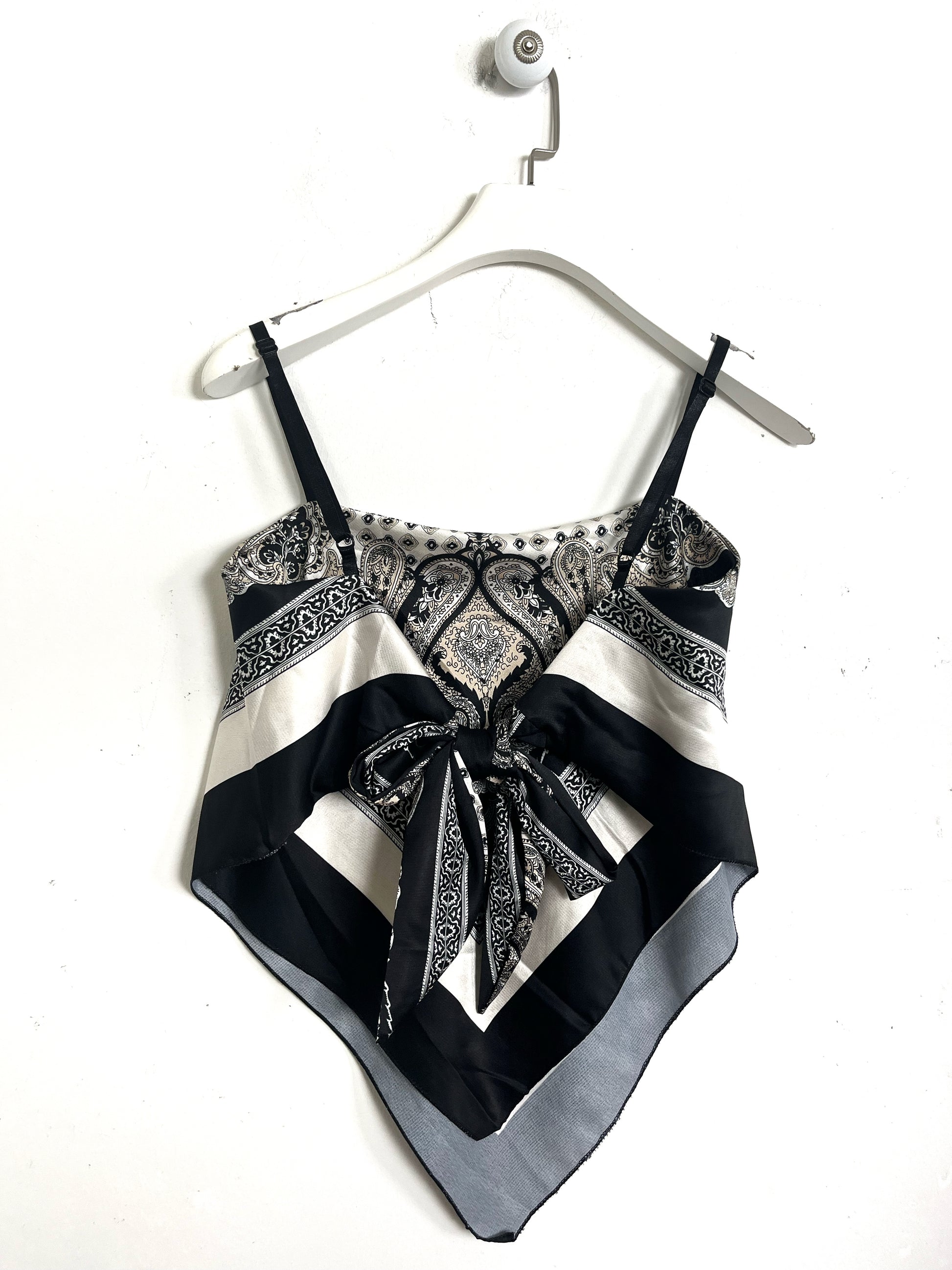 Il top ha le spalline sottili ed è annodato dietro la schiena