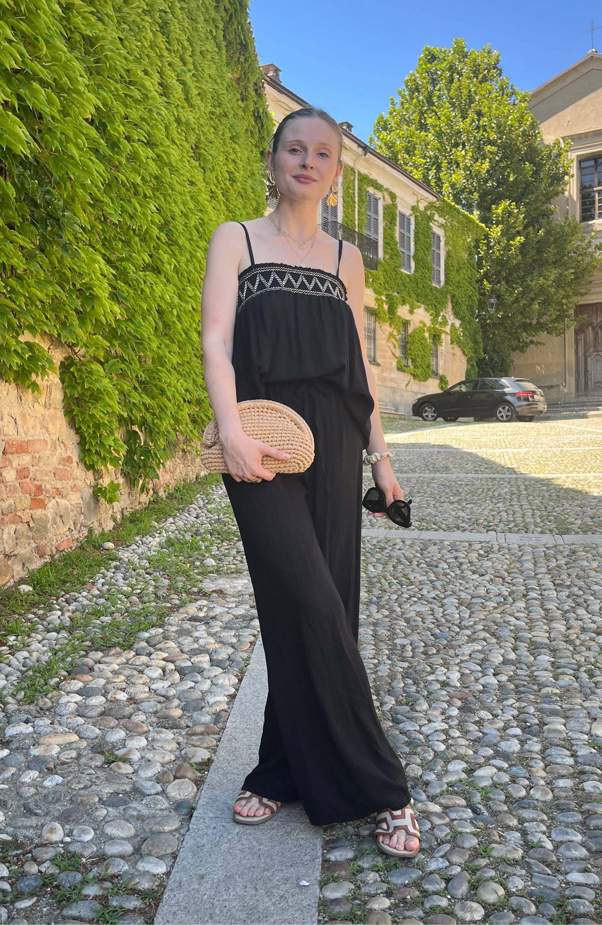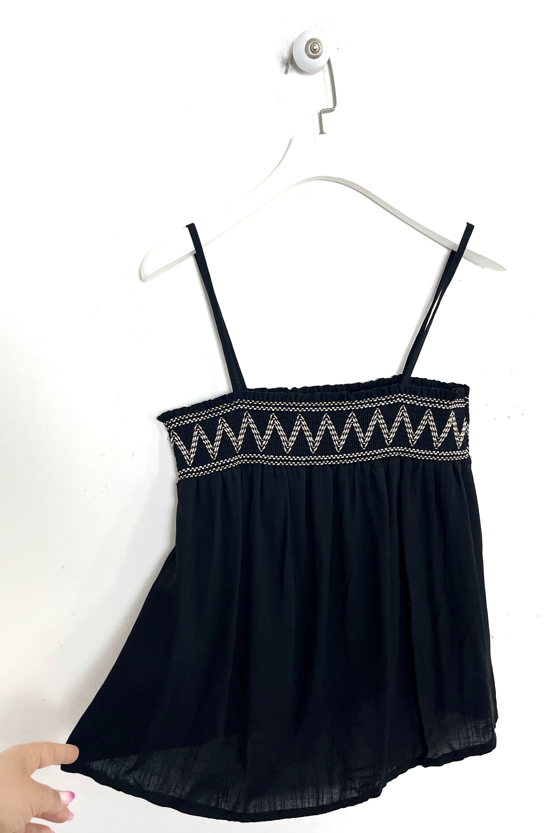 Il top ha la fascia elastica sul seno tutta ricamata con spalline sottili