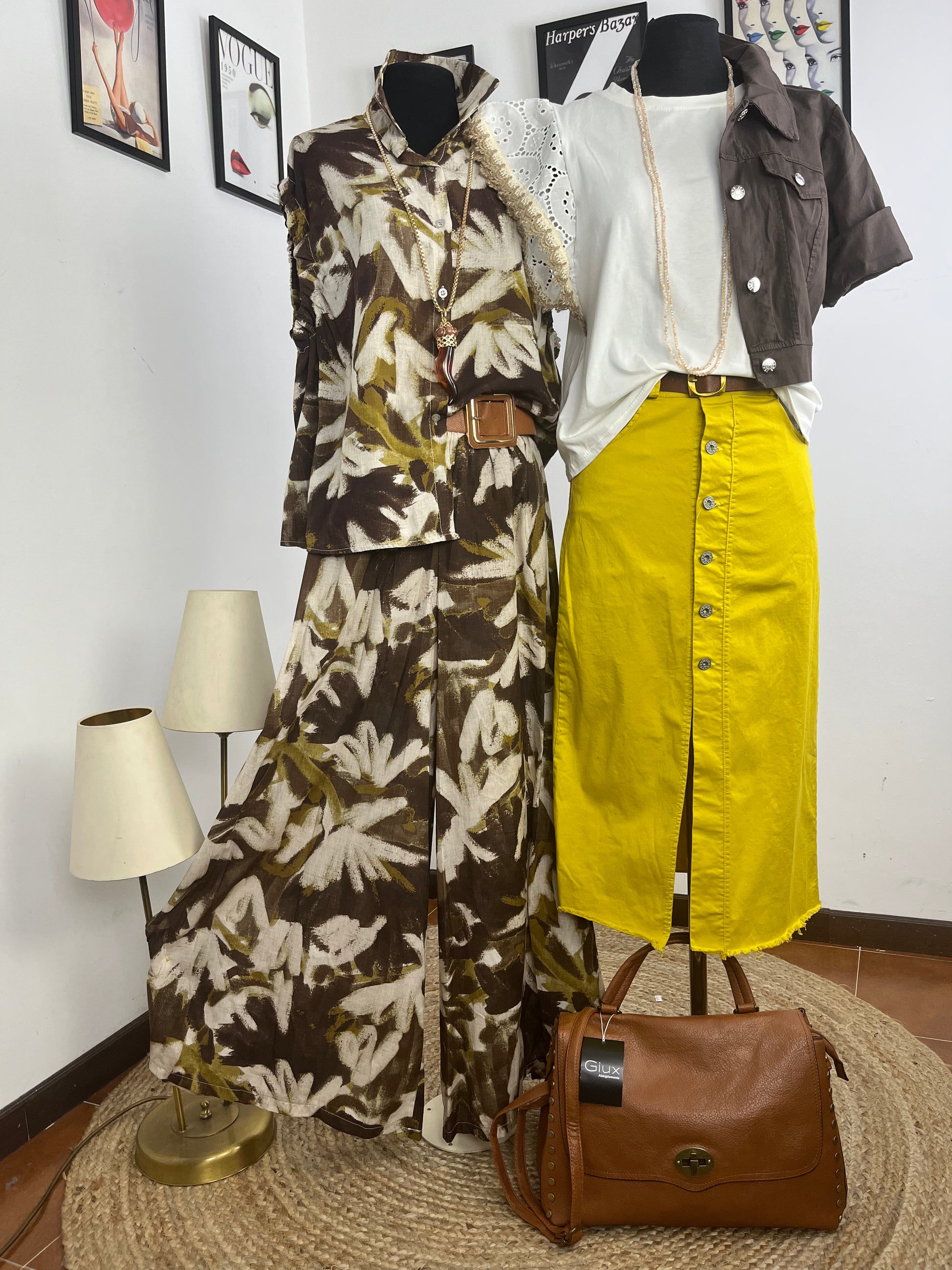 Completo in leggerissimo cotone composto da camicia e pantalone effetto gonna.