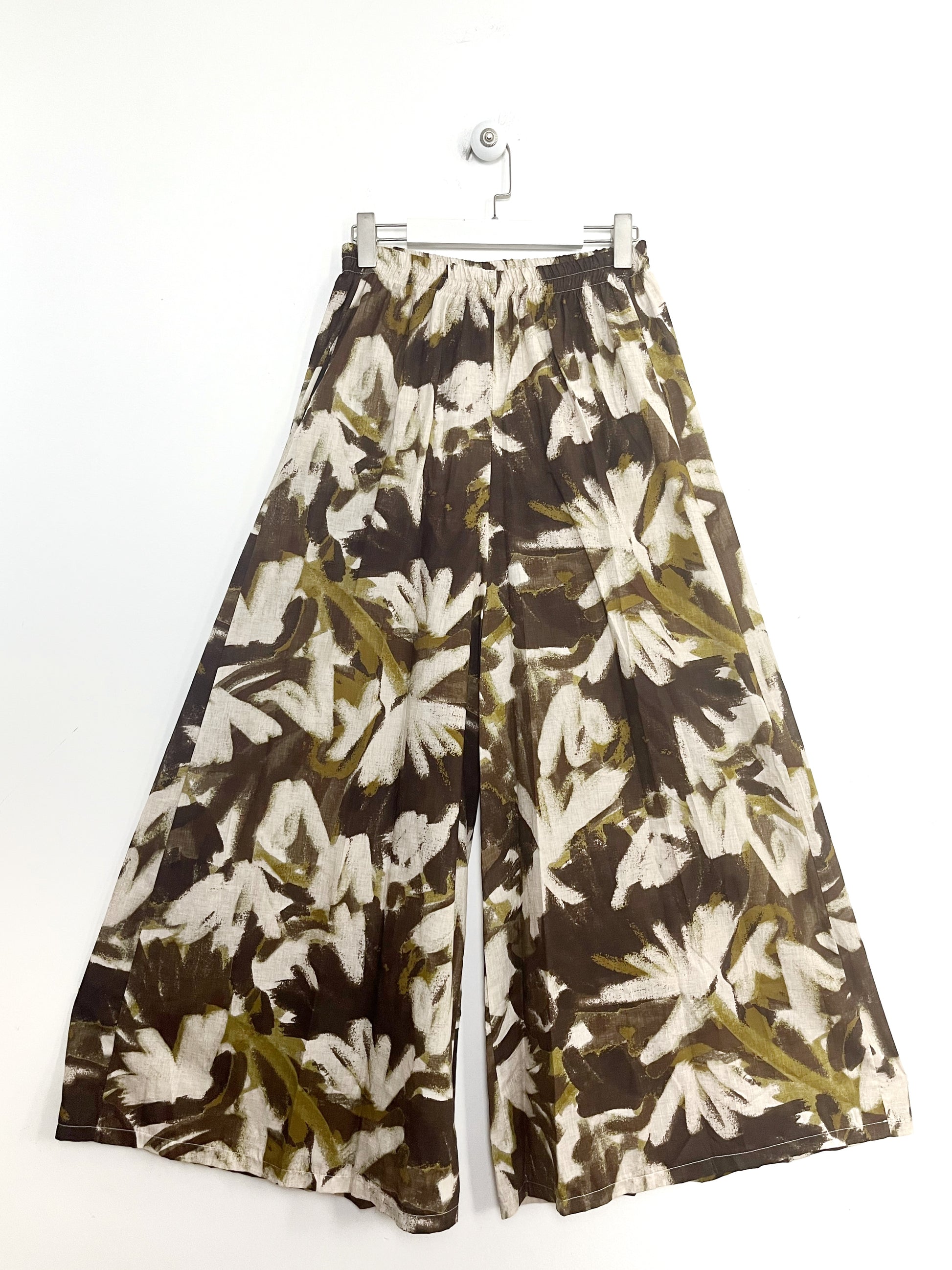 Pantalone ampio effetto gonna, elastico in vita, tasche laterali
