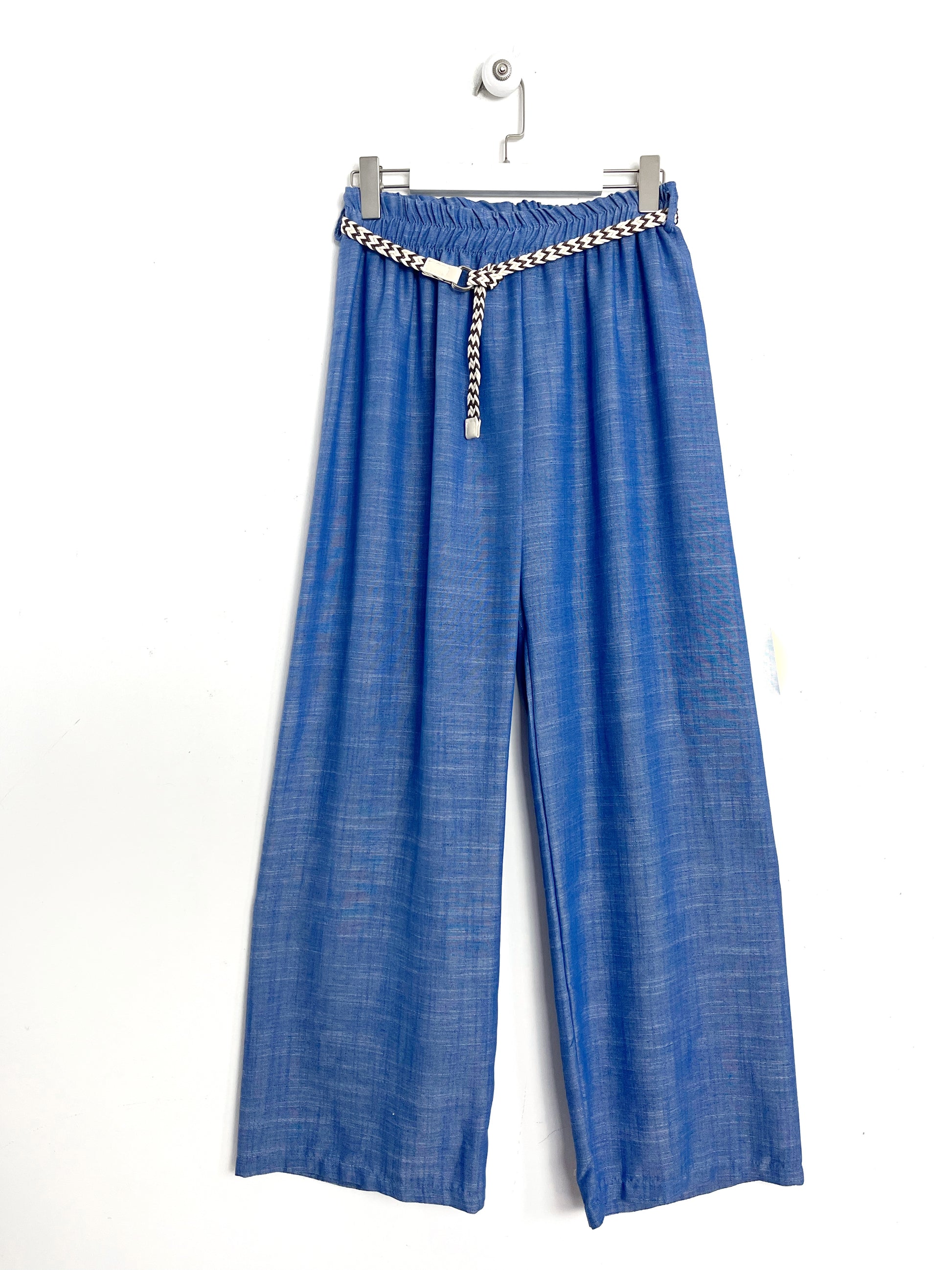 Il pantalone è vita alta con elastico. Passanti con cinturina