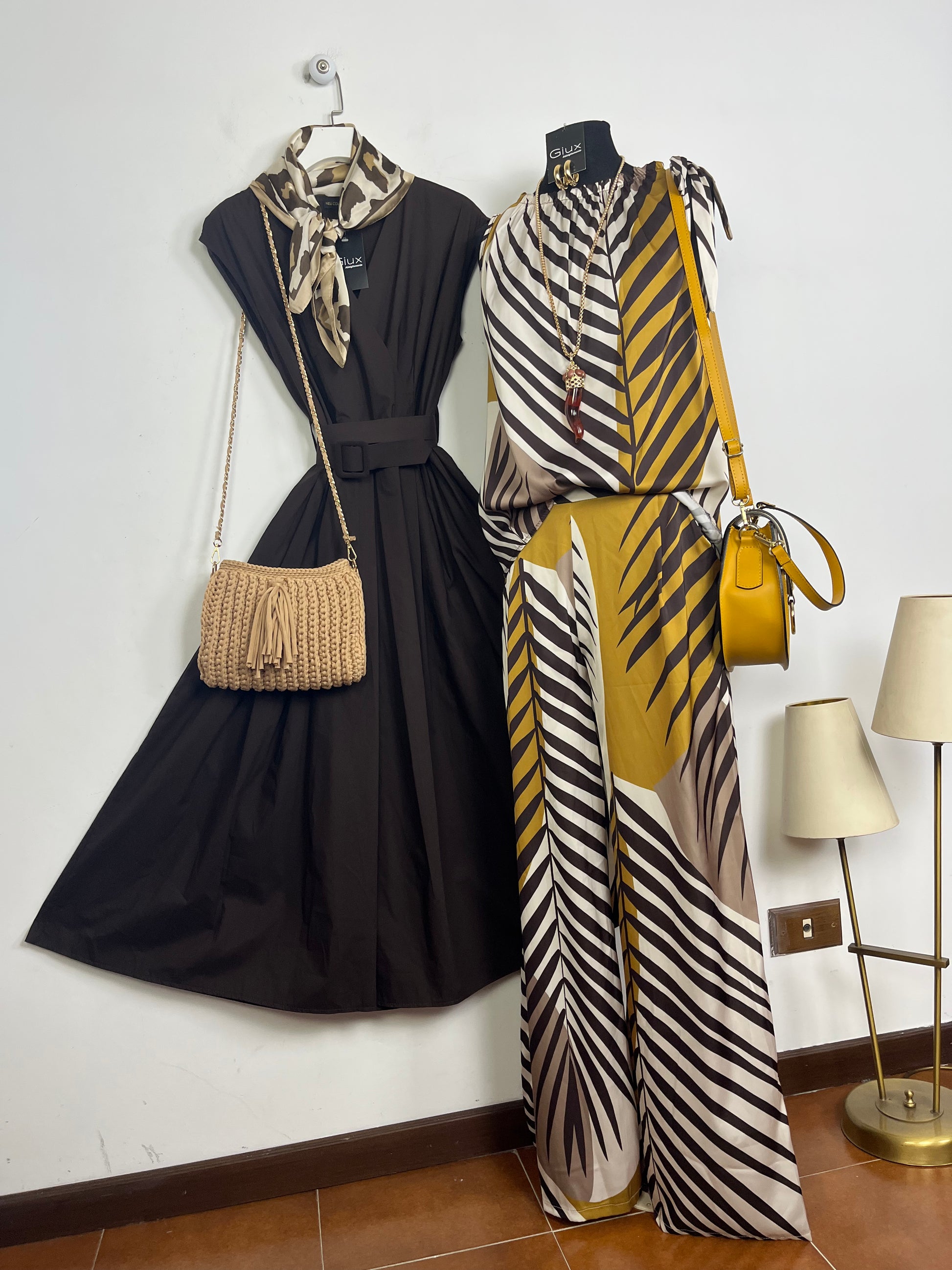 Completo Effetto Satin composto da blusa smanicata e pantalone a palazzo.