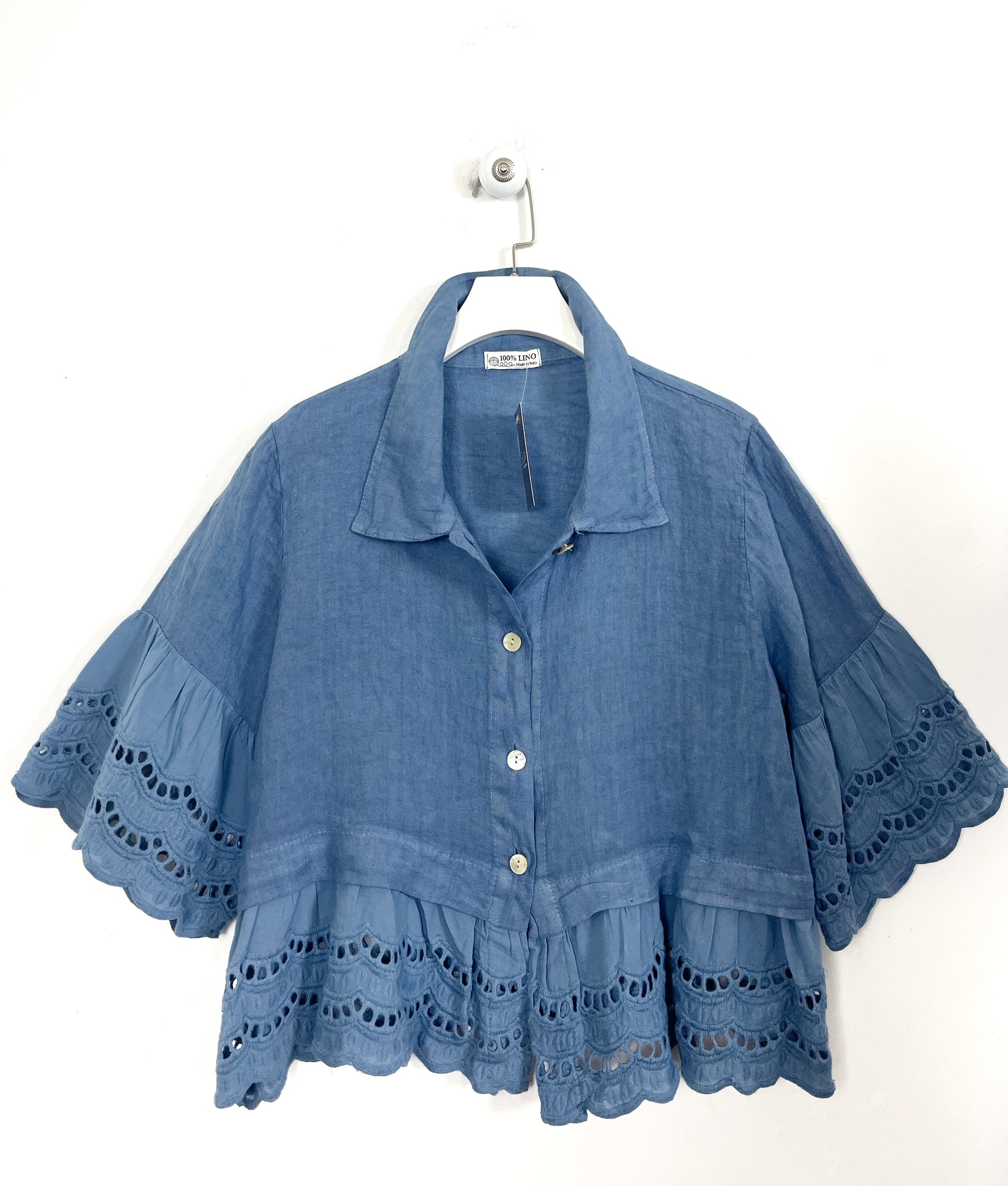 Camicia cropped manica tre quarti con pizzo sangallo di cotone, anche sul fondo