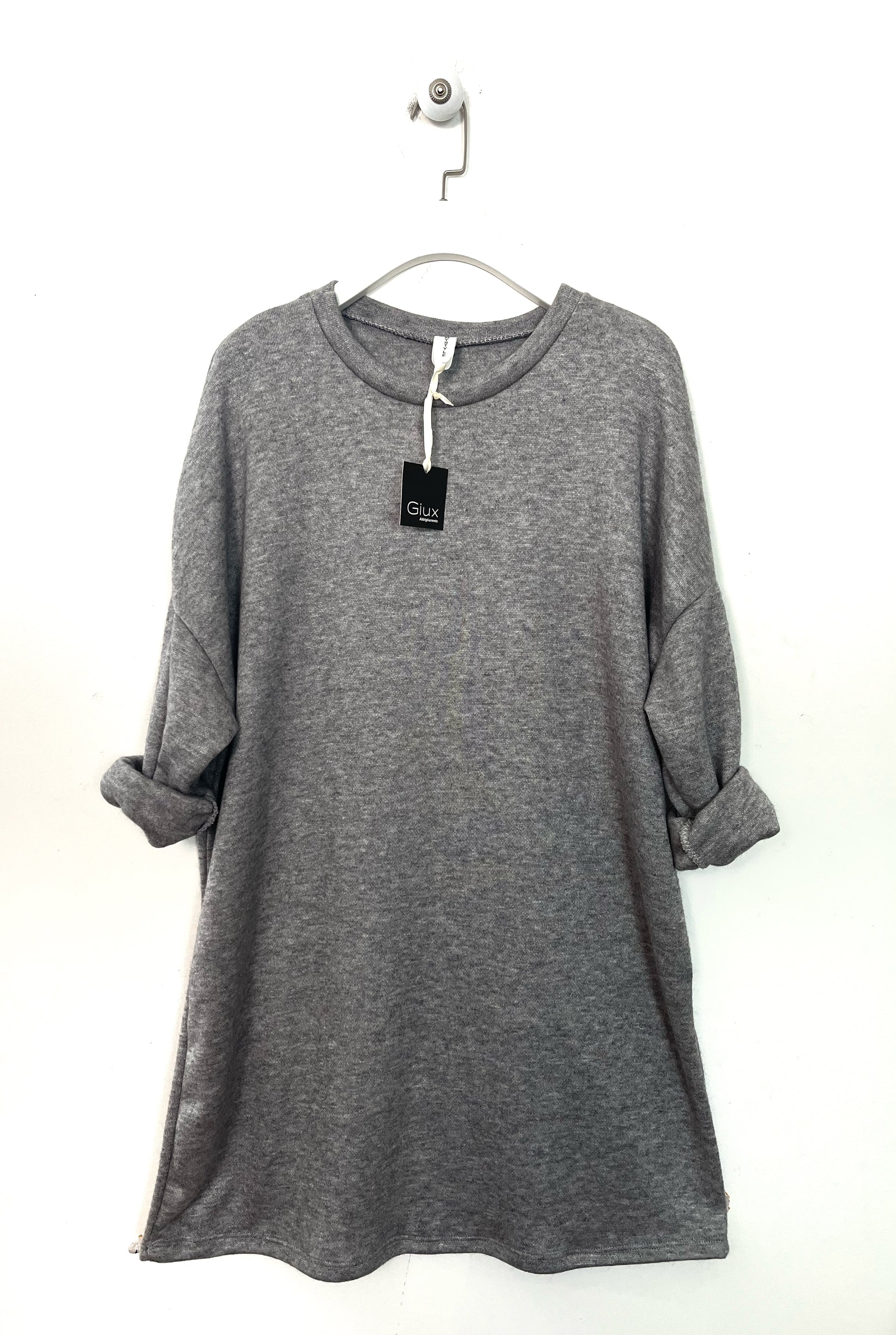 Abitino in maglia in calda viscosa, girocollo. Spalla ribassata, modello over.