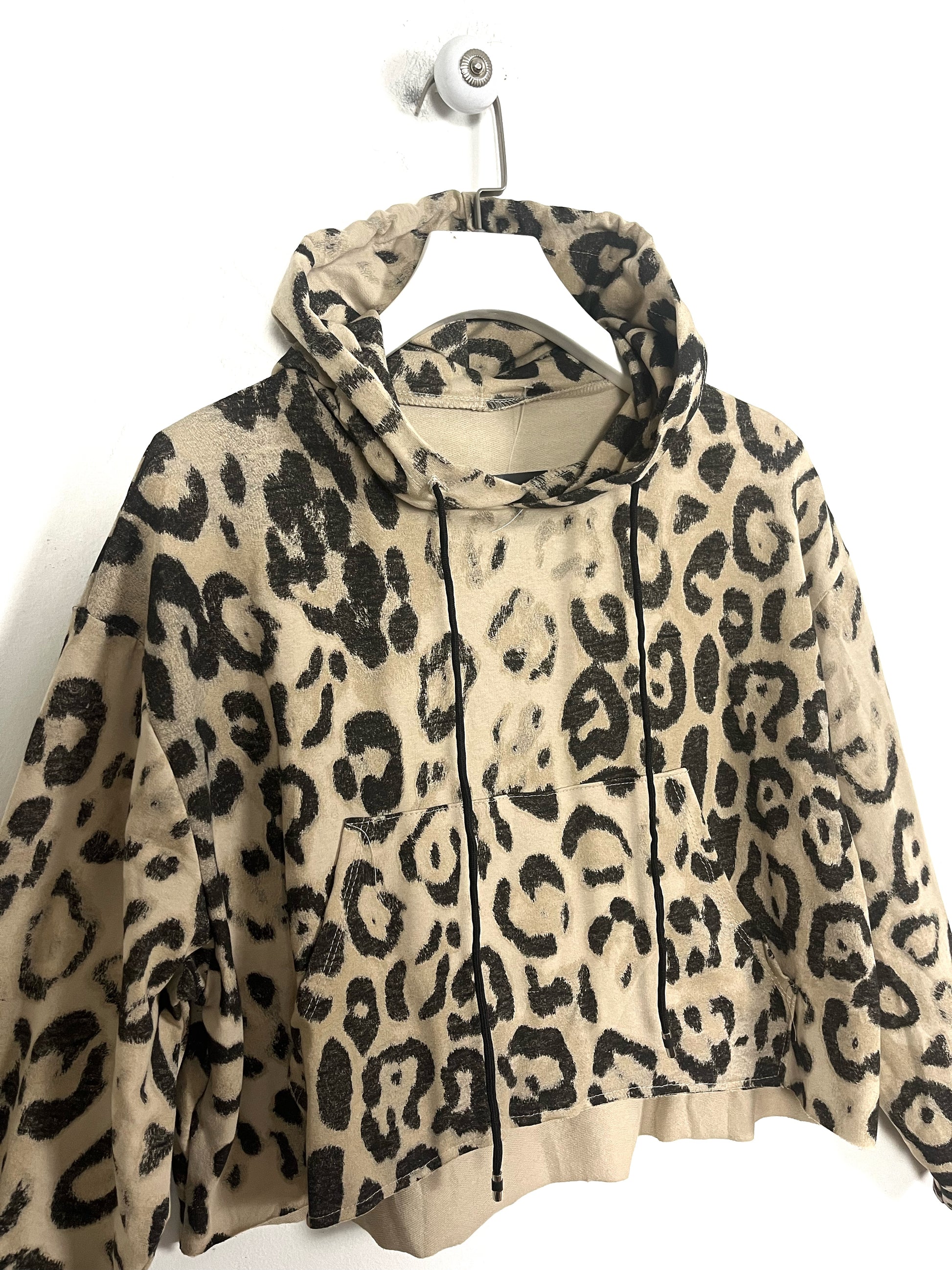 Felpa corta in morbido cotone garzato. Cappuccio con coulisse. Spalle ribassate. Tasca a marsupio sul davanti. Cropped, leggermente più lunga dietro.