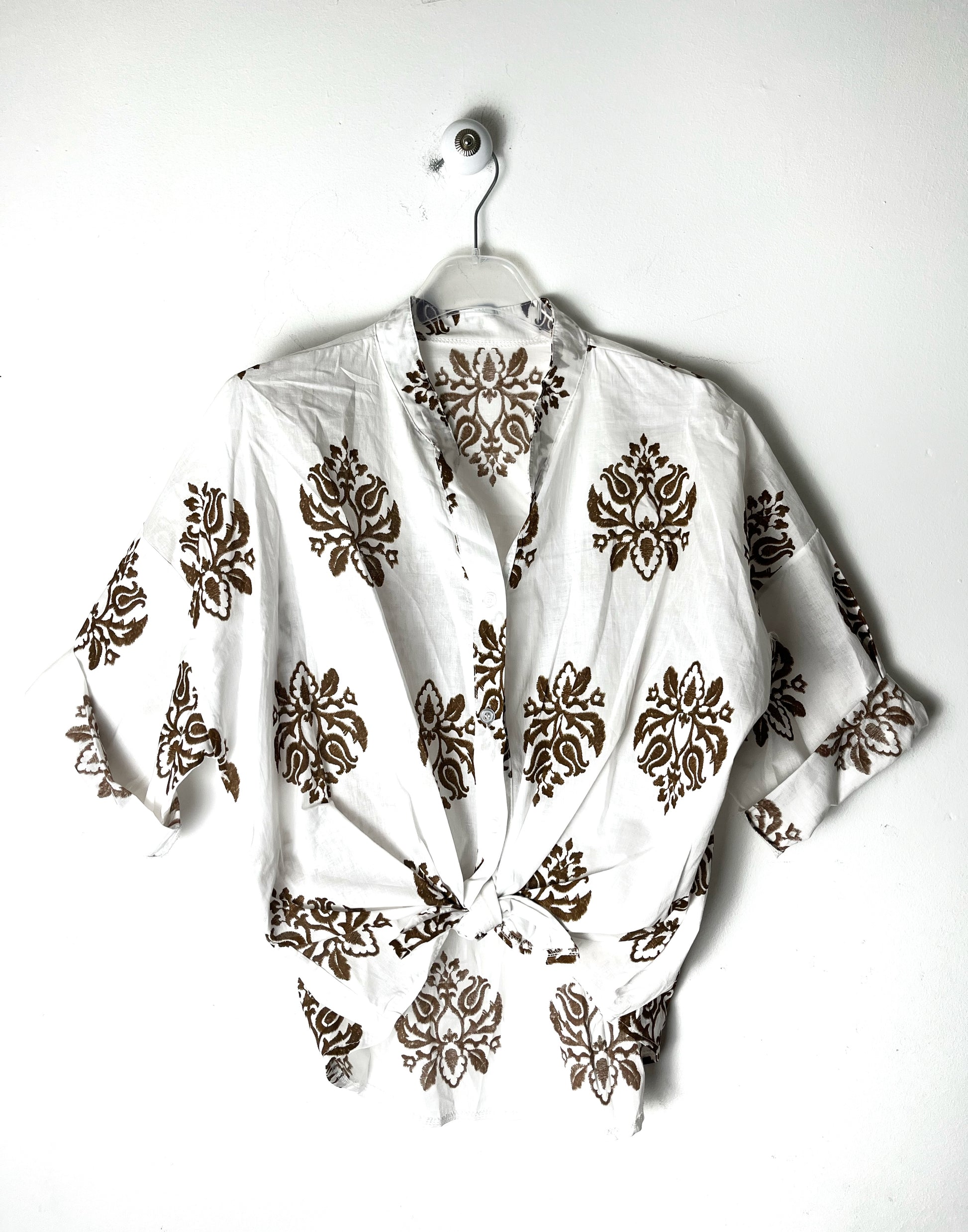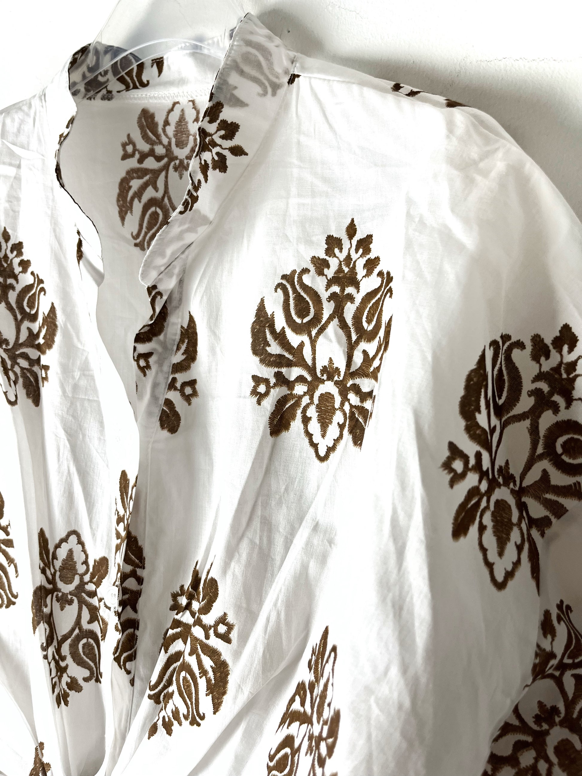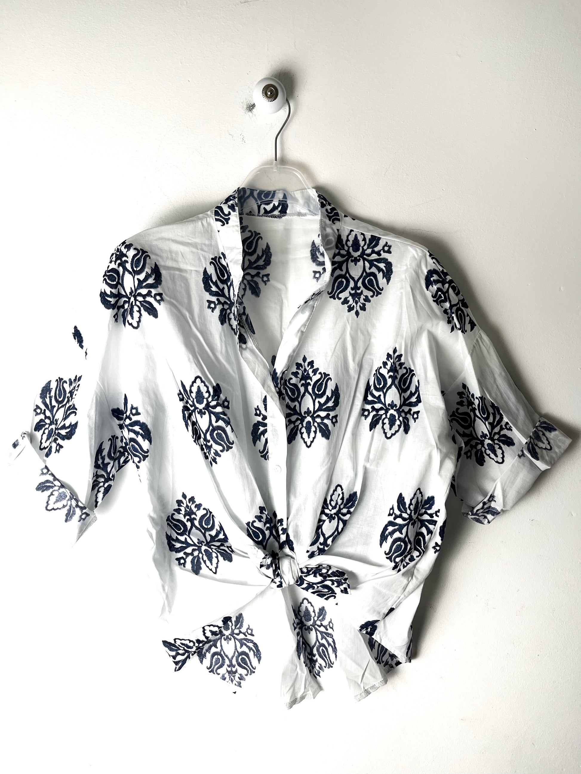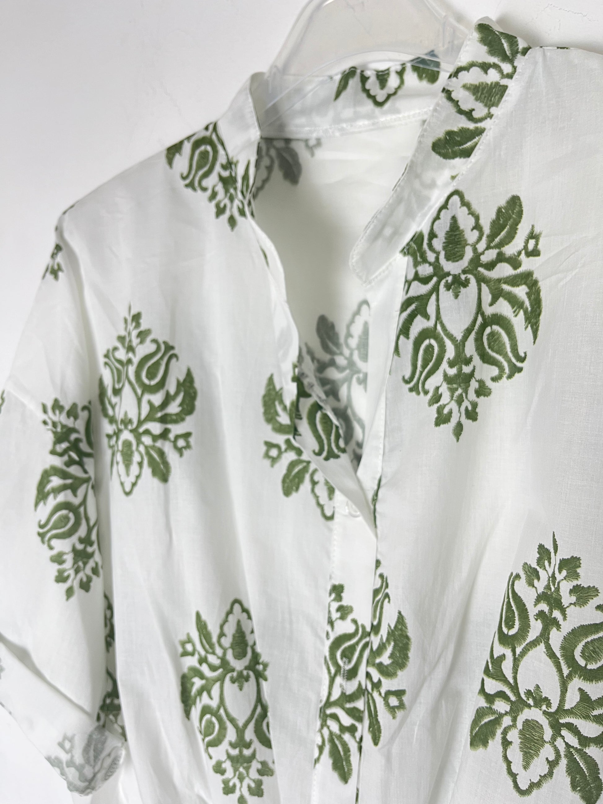 Coreana in cotone leggero, manica rivoltata. Spalla ribassata.