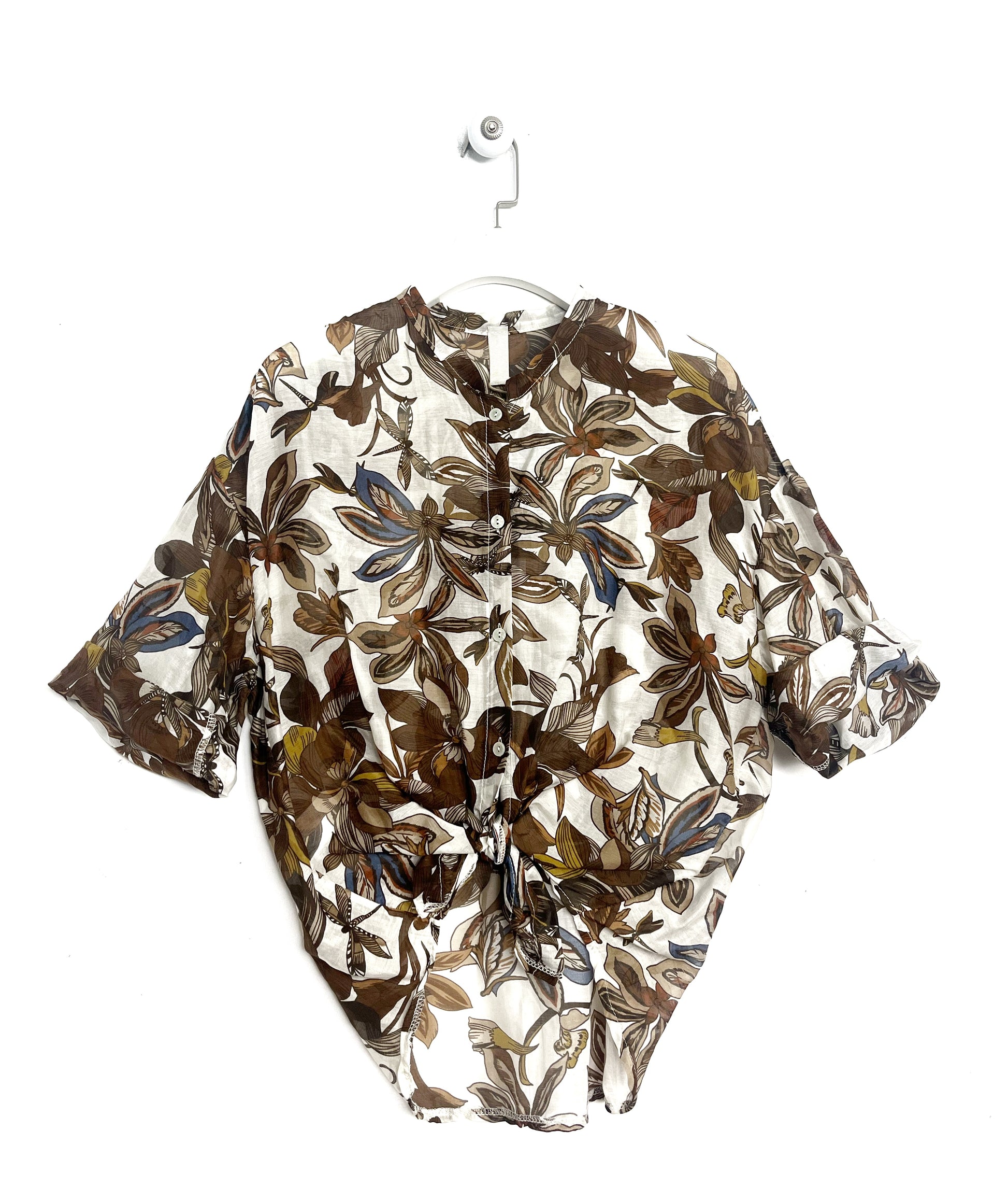 Camucua in cotone leggero, manica tre quarti rivoltata. Spalla ribassata.