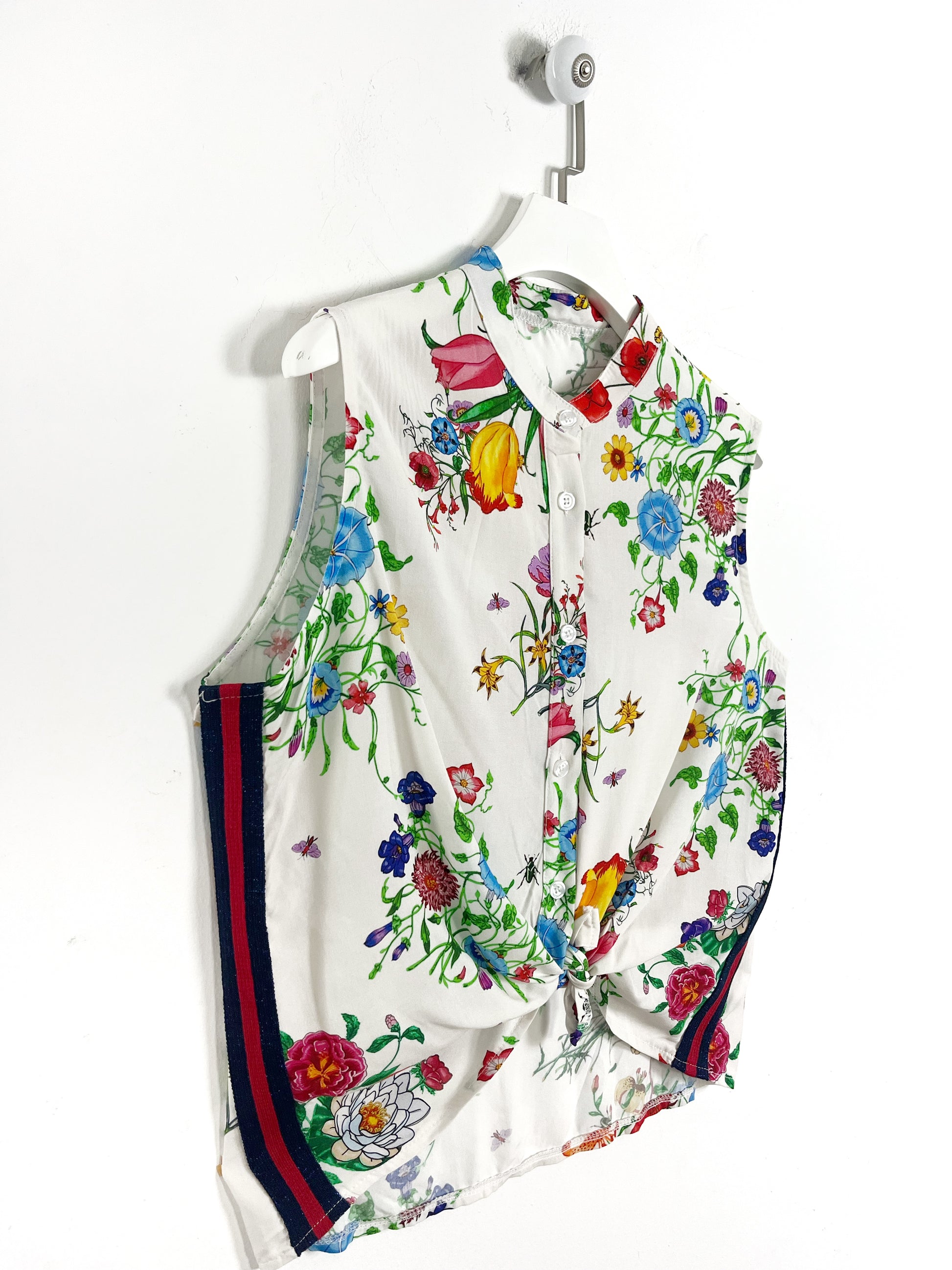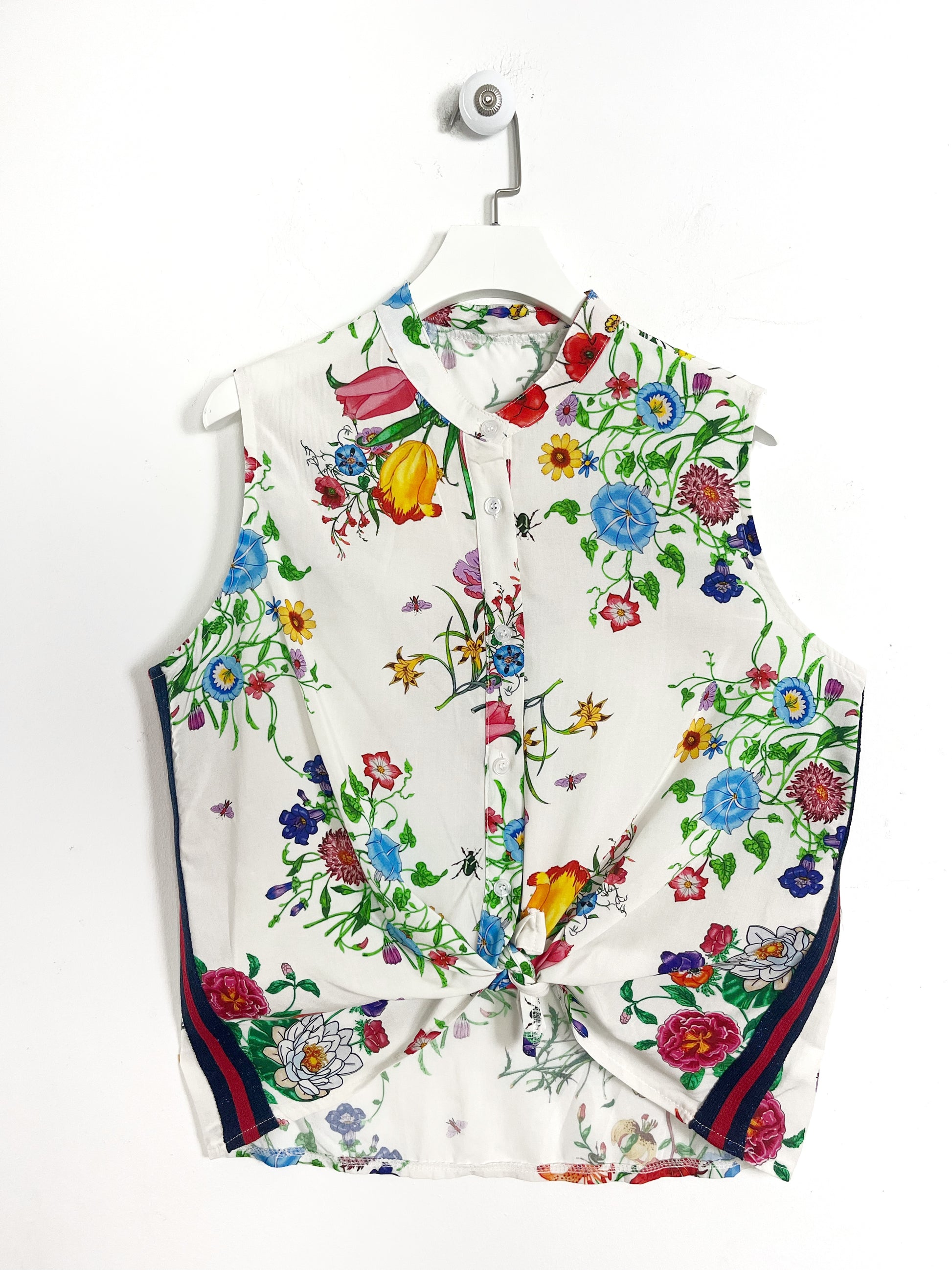 Camicia a coreana smanicata in viscosa e cotone. Banda applicata sui fianchi