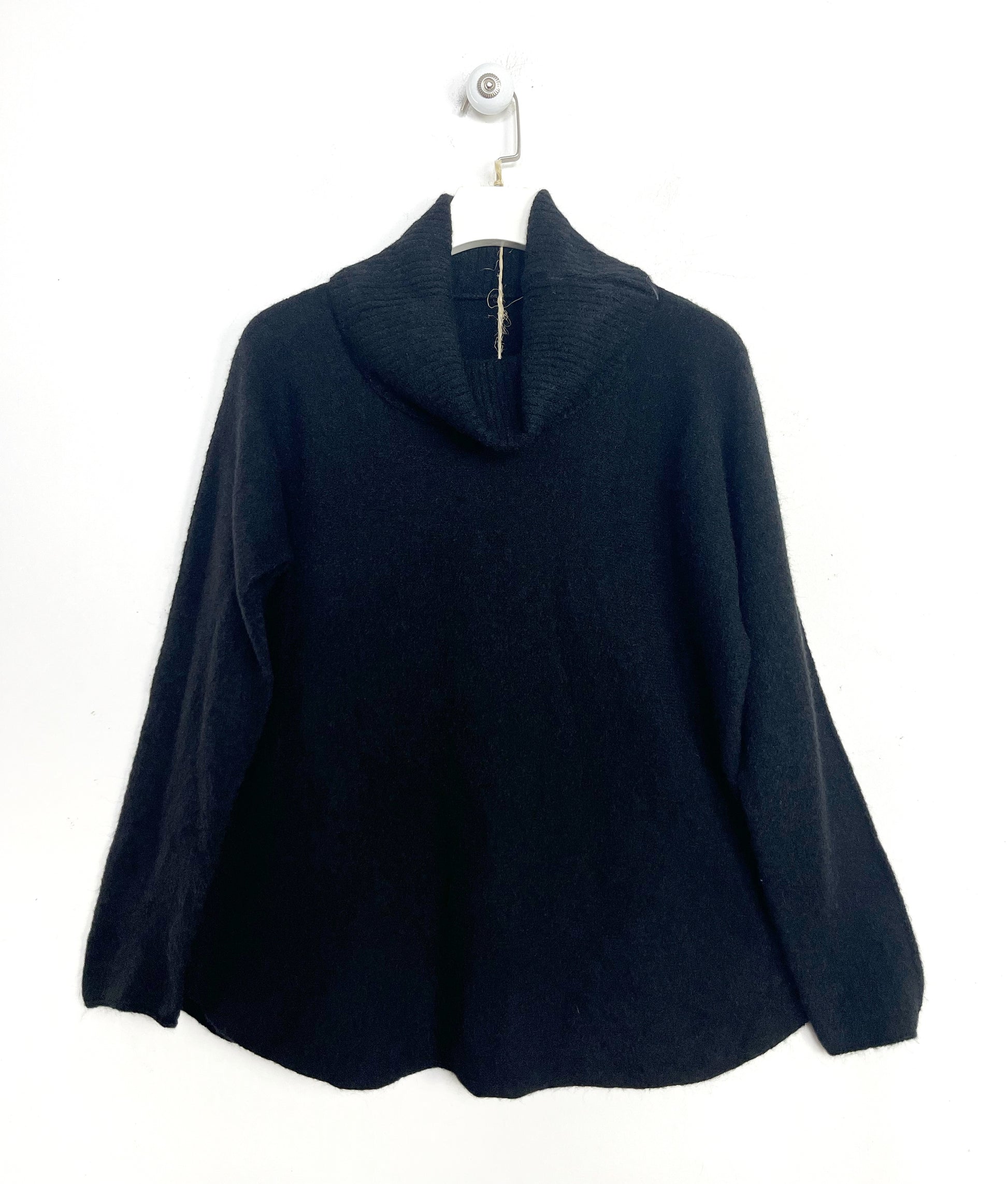 Dolcevita con collo a ciambella, manica lunga, taglio a scatoletta.
