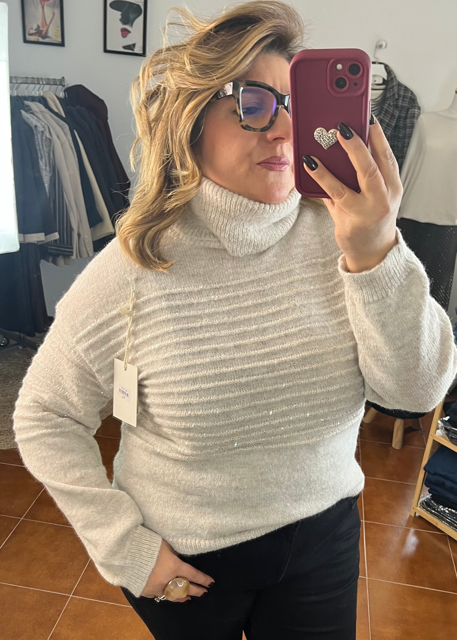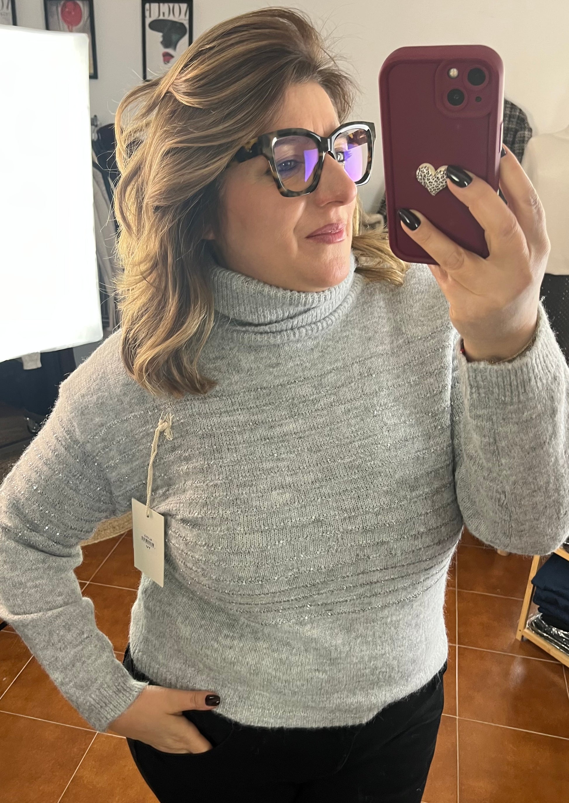 Dolcevita con collo morbido, manica lunga, taglio a scatoletta.