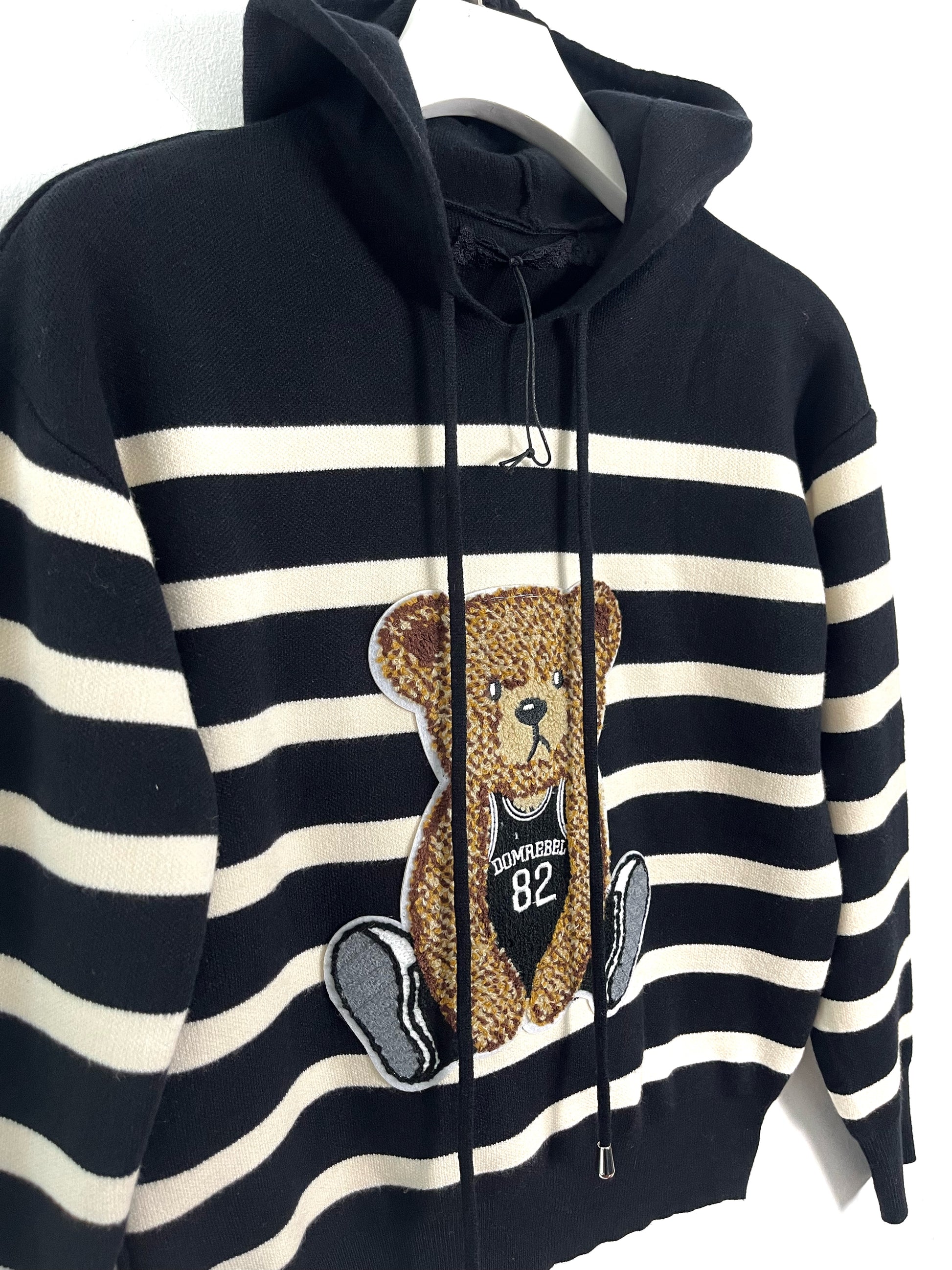Felpa con cappuccio in calda viscosa. Manica lunga con polsino. Applicazione sul davanti. Cropped