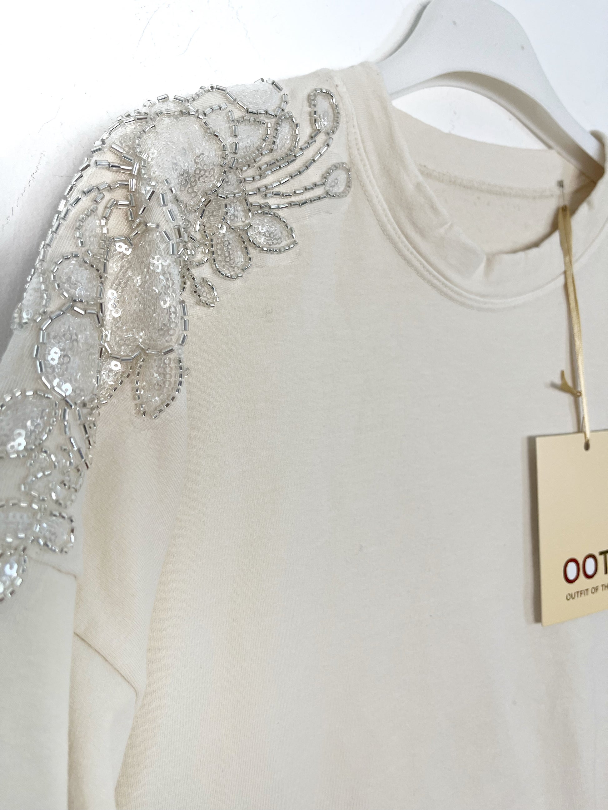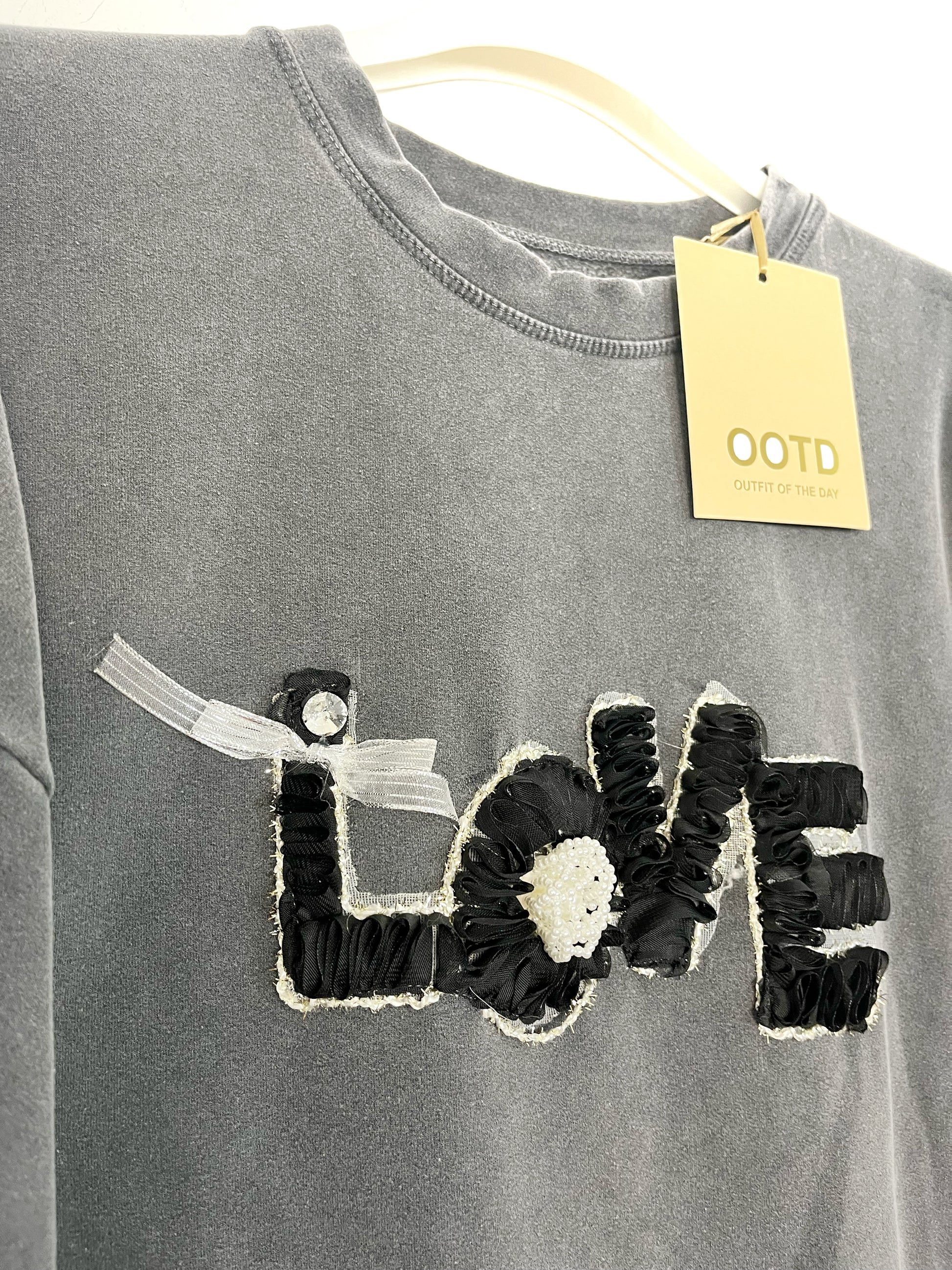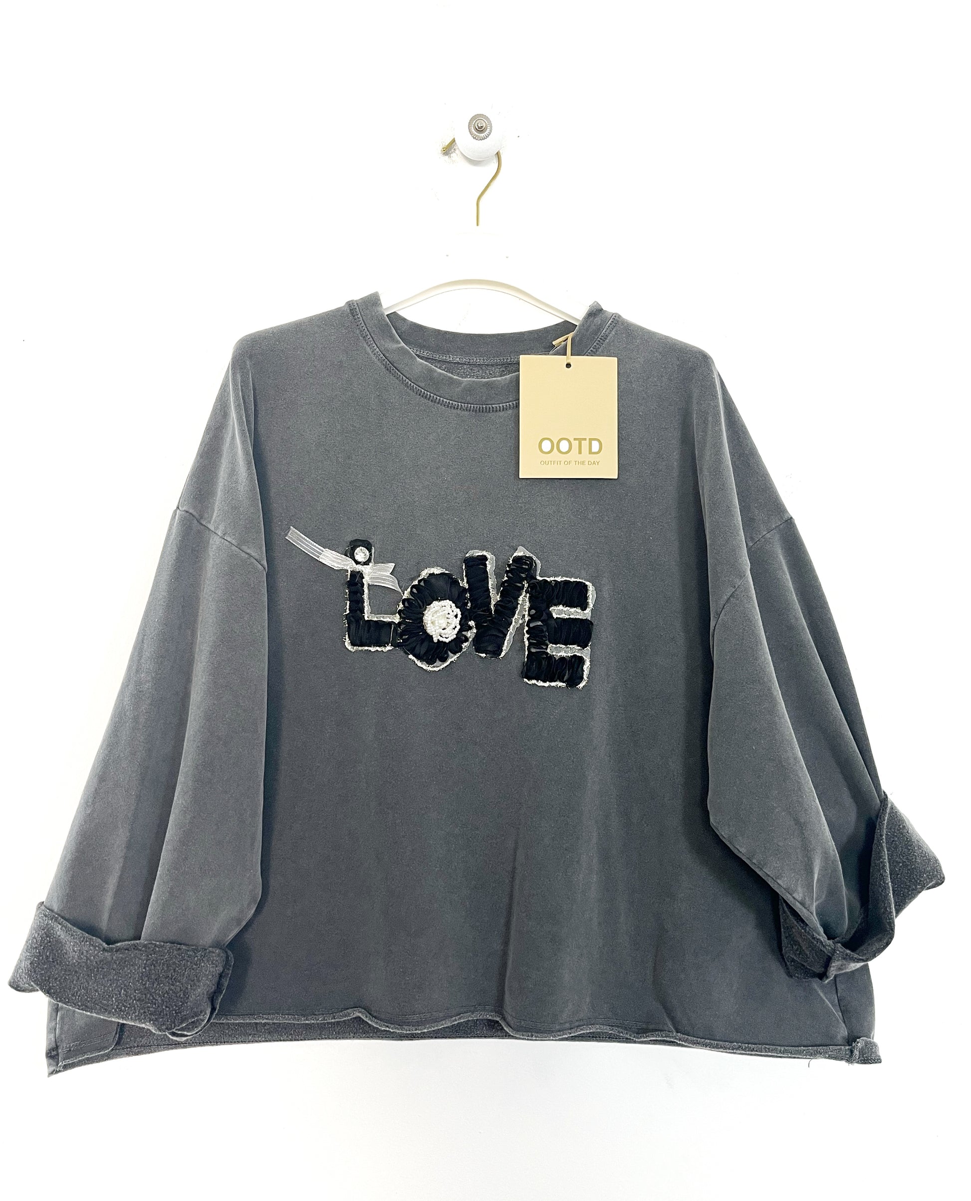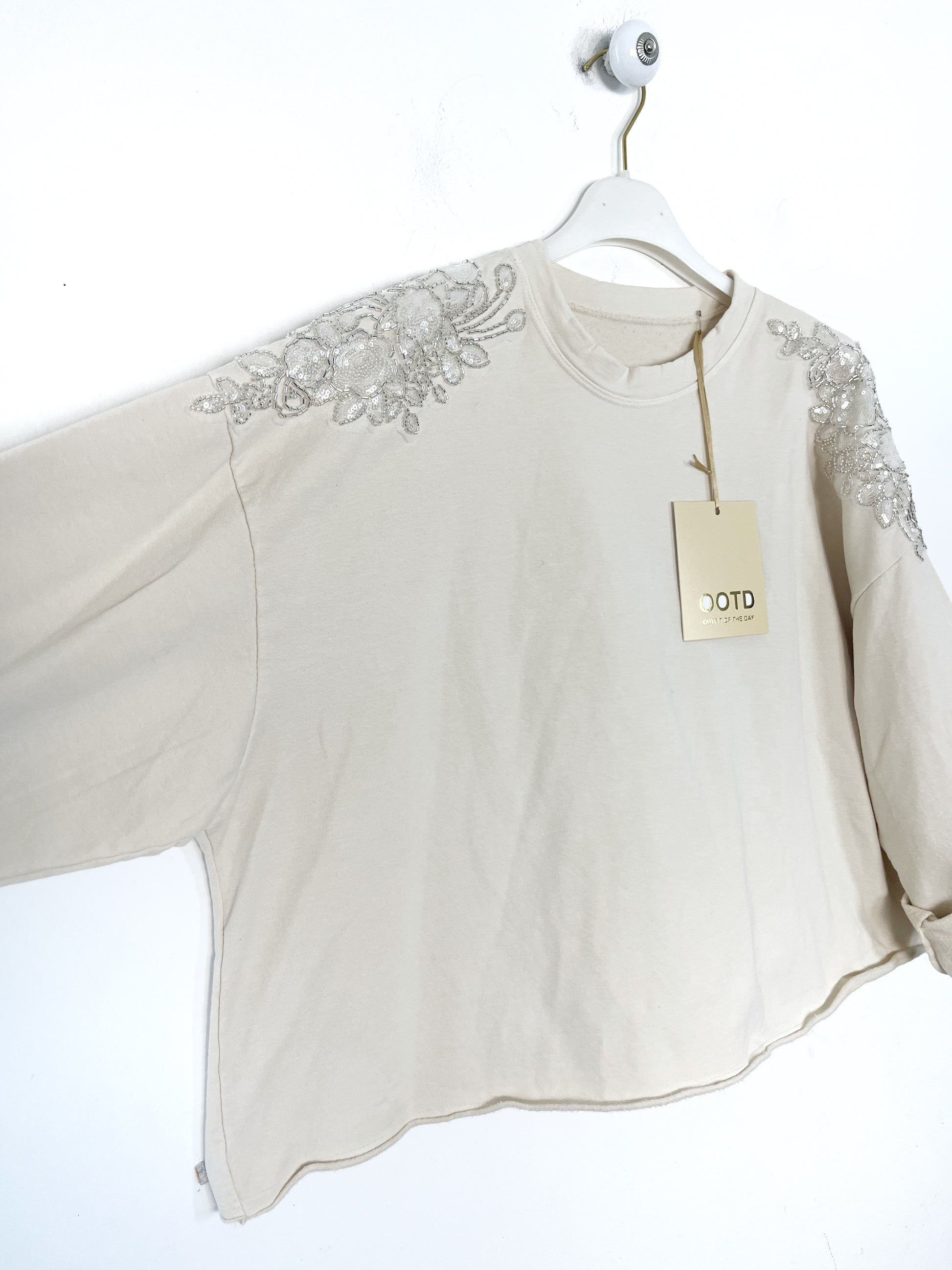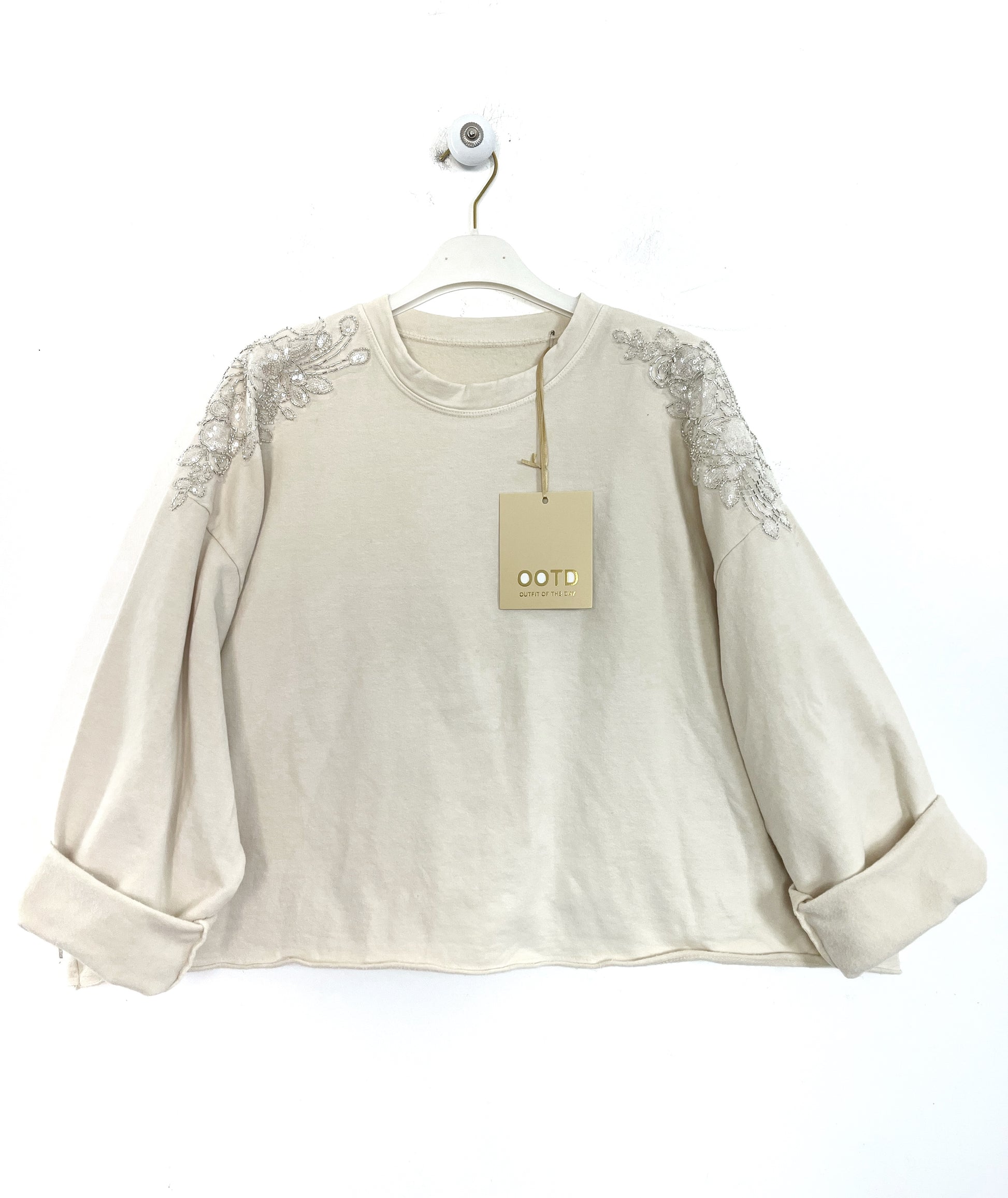 Felpa girocollo cropped, taglio vivo. Spalla ribassata manica lunga, felpata. Vari modelli e applicazioni