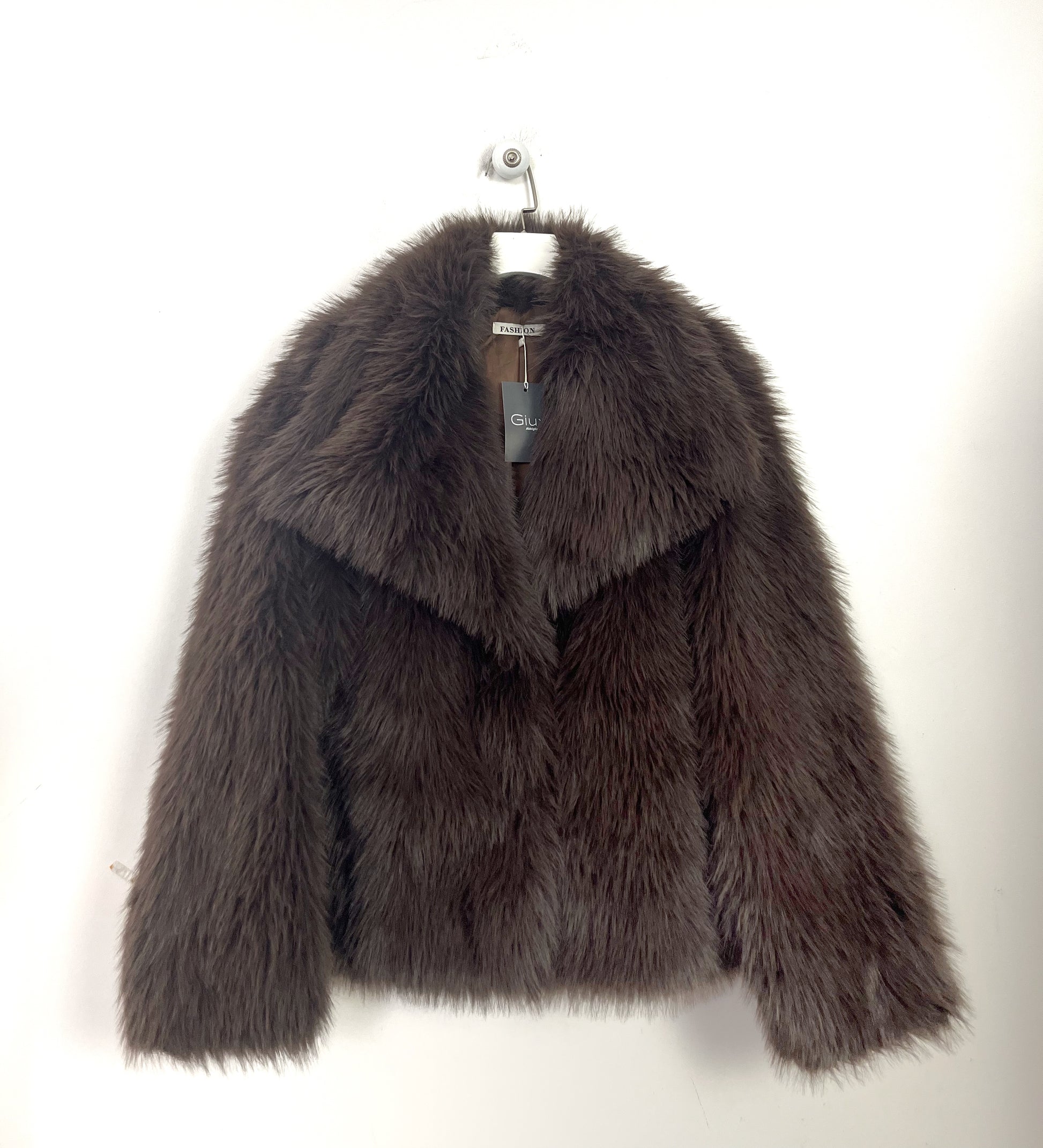 Giacca in ecopelliccia con colletto. Foderato. Chiusura con bottoni a clip.
