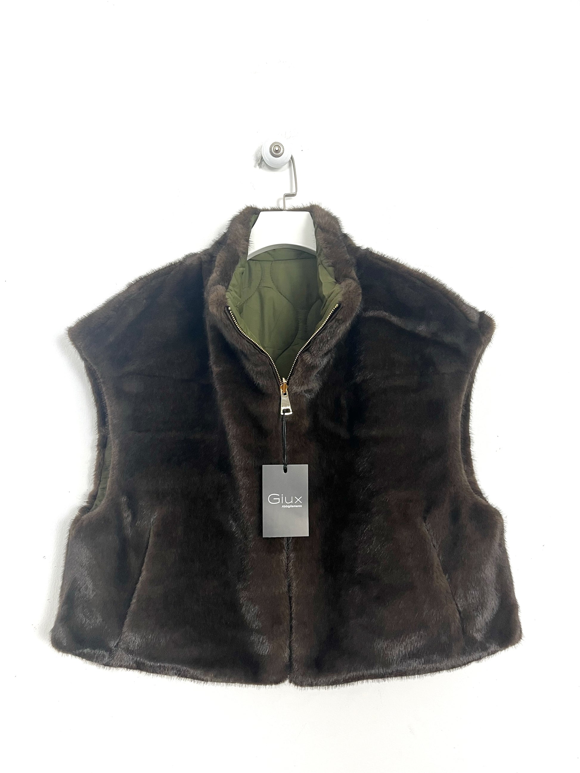 Gilet in Ecofur e Trapuntino reversibile. Taglio a scatoletta, con fascine a scomparsa. Cropped