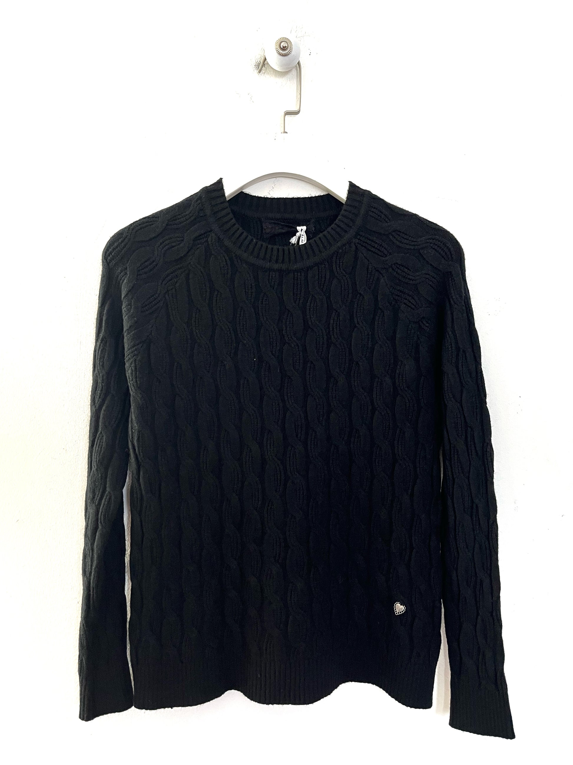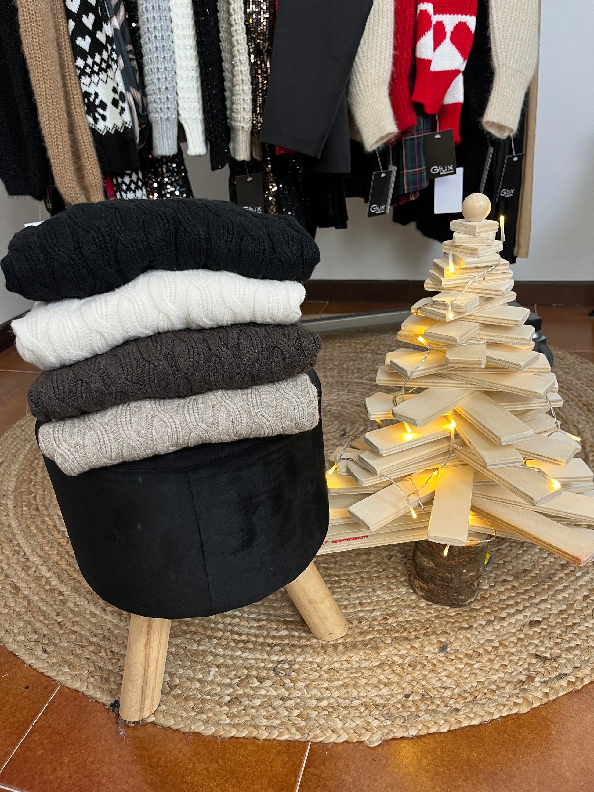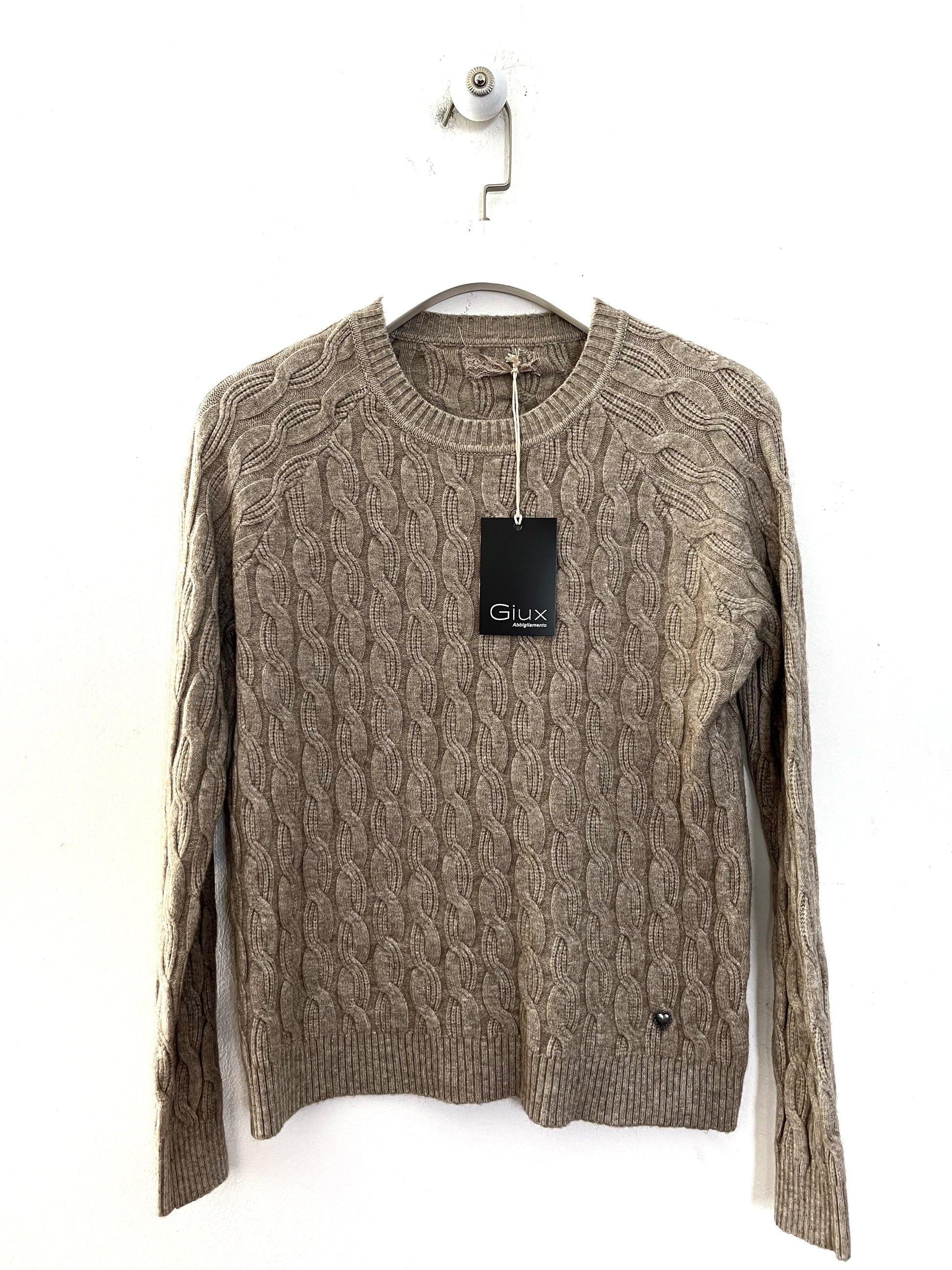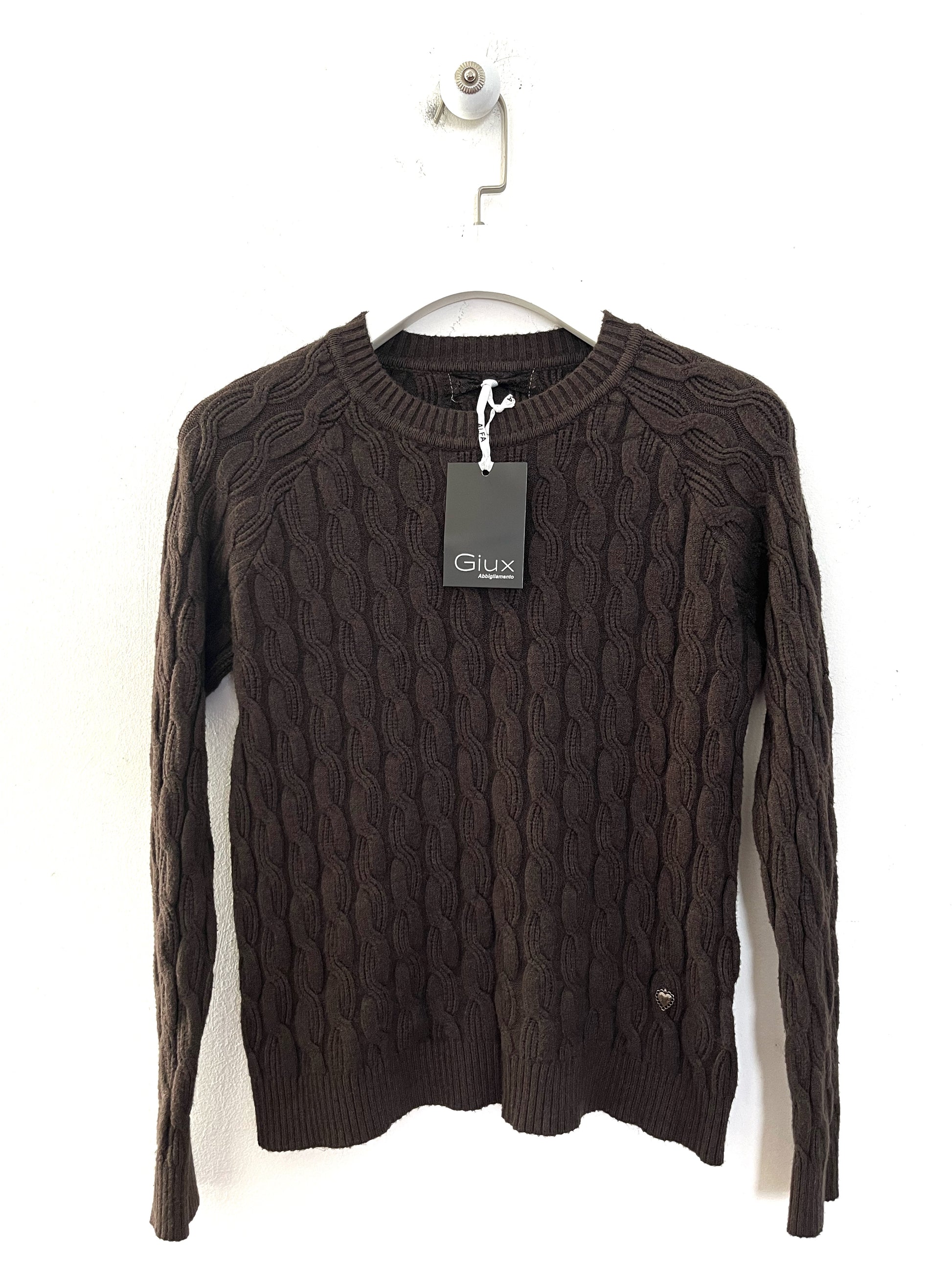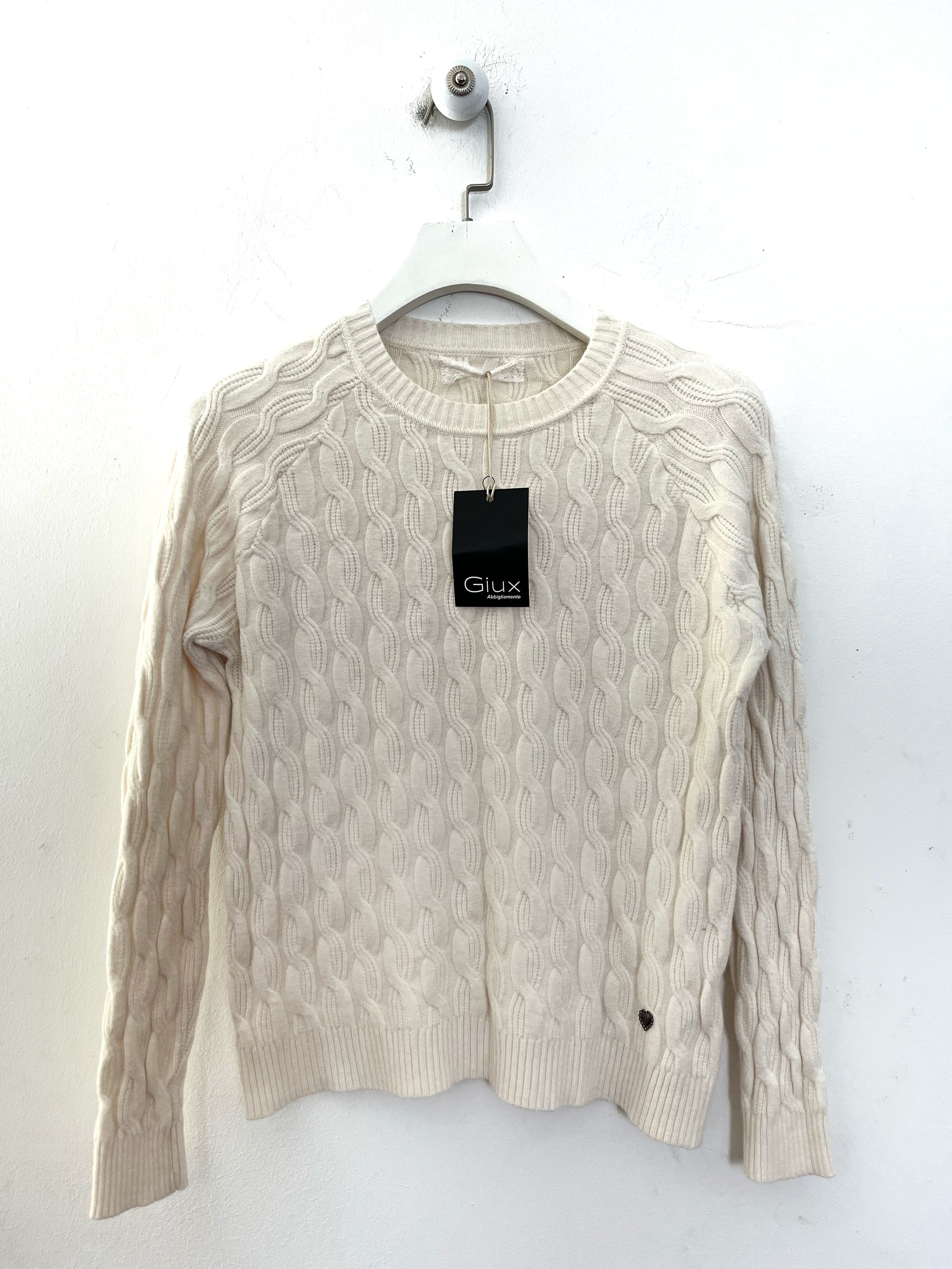 Girocollo in calda viscosa, spalla ribassata. Lavorazione a trecce.
