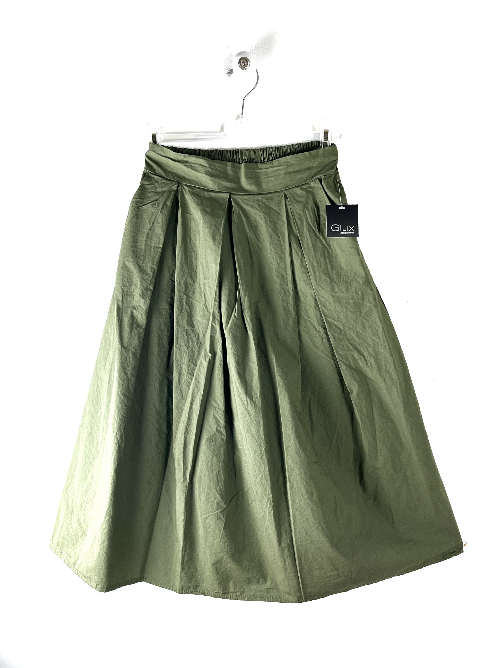 Gonna a pieghe, lunghezza alla caviglia. Elastico dietro in vita, cinturino a fascetta sul davanti. Tasche a scomparsa laterali. Sfoderata.