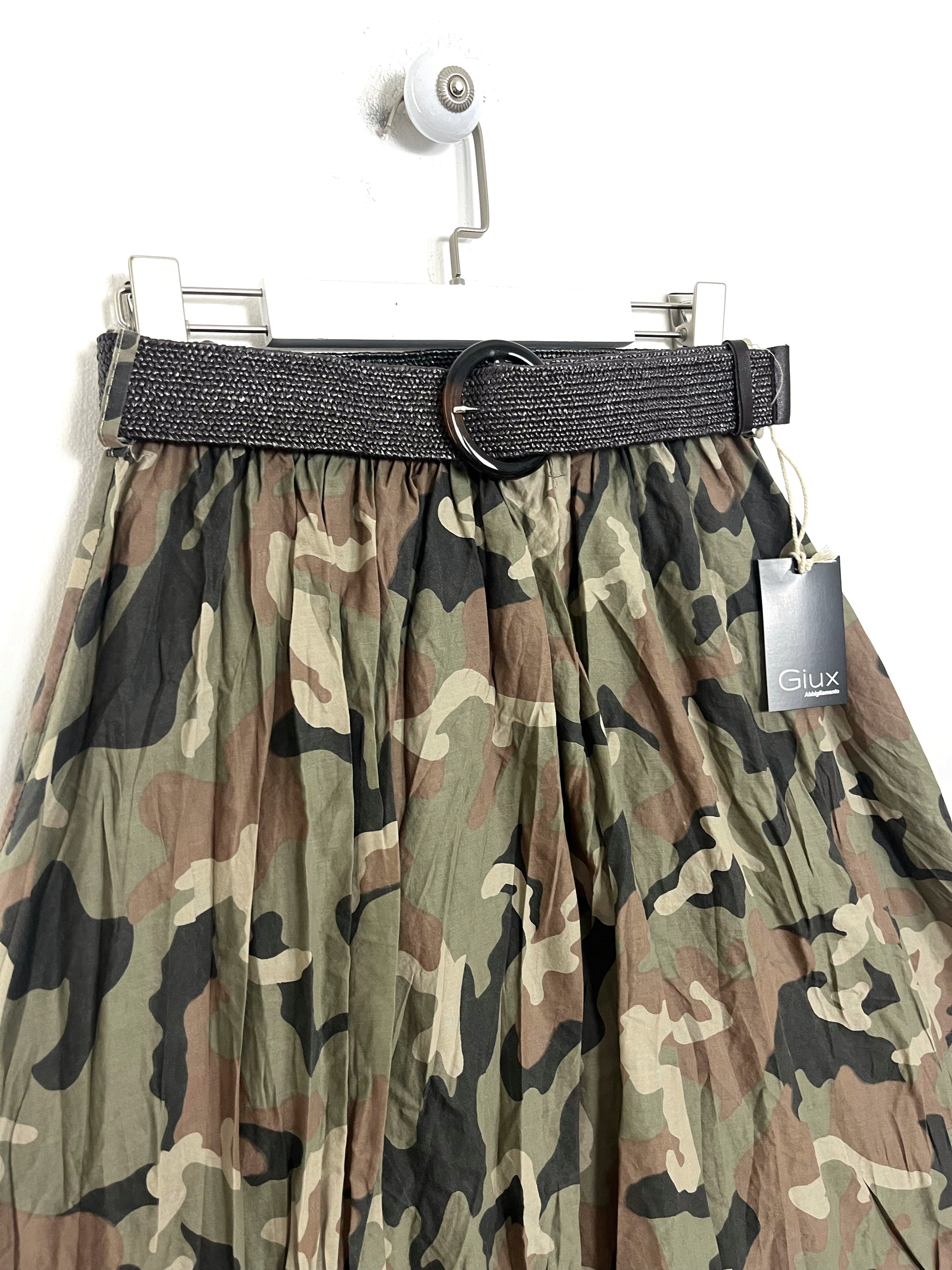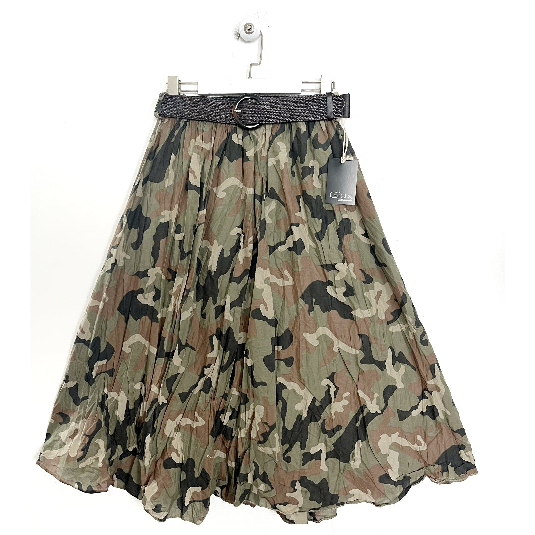 Gonna midi in puro cotone, effetto stropicciato. Cintura elastica in dotazione, elastico in vita. Molto ampia, sfoderata.