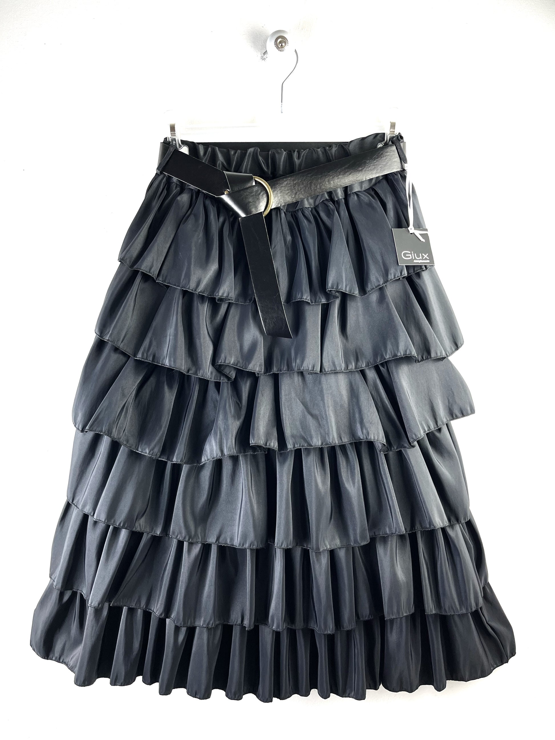 Gonna in taffetà a balze, lunghezza midi. Elastico dietro in vita. Sfoderata.
