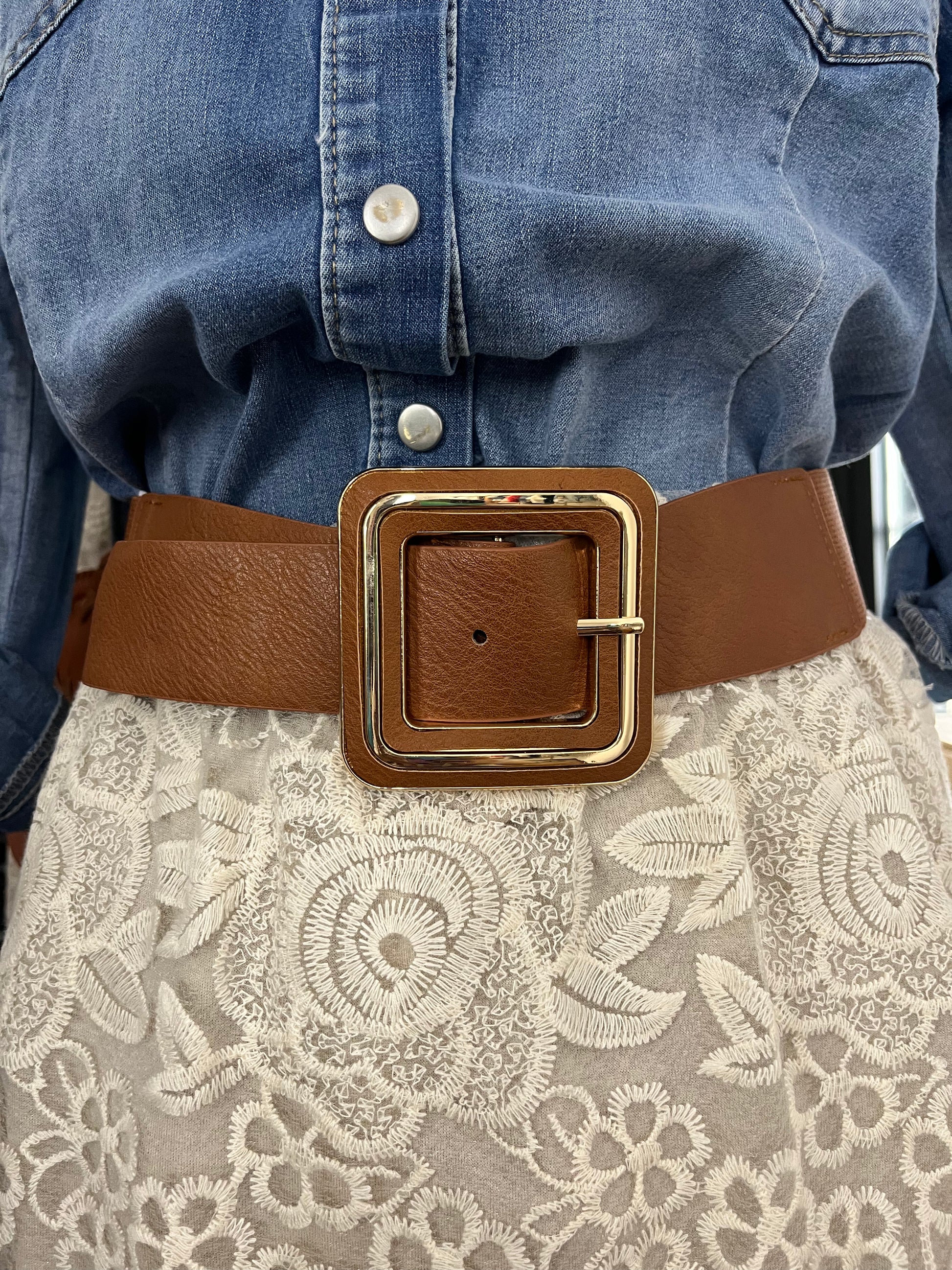 Gonna lunga in tulle tutto ricamato, foderata. Elastico in vita con passanti e cinturina in corda.