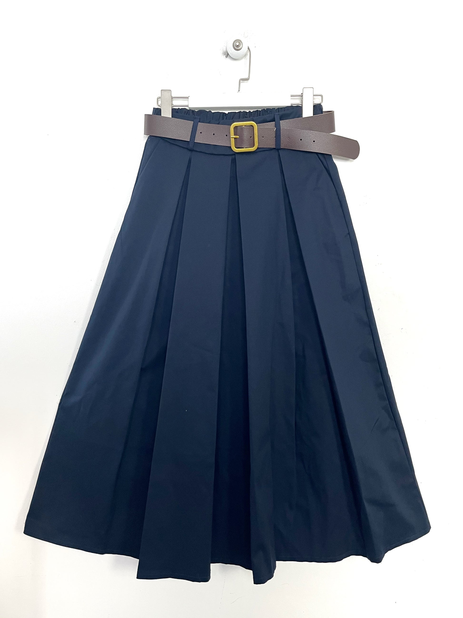 Gonna lunga in cotone, baschina sul davanti in vita, elastico dietro. Passanti con cintura in ecopelle.