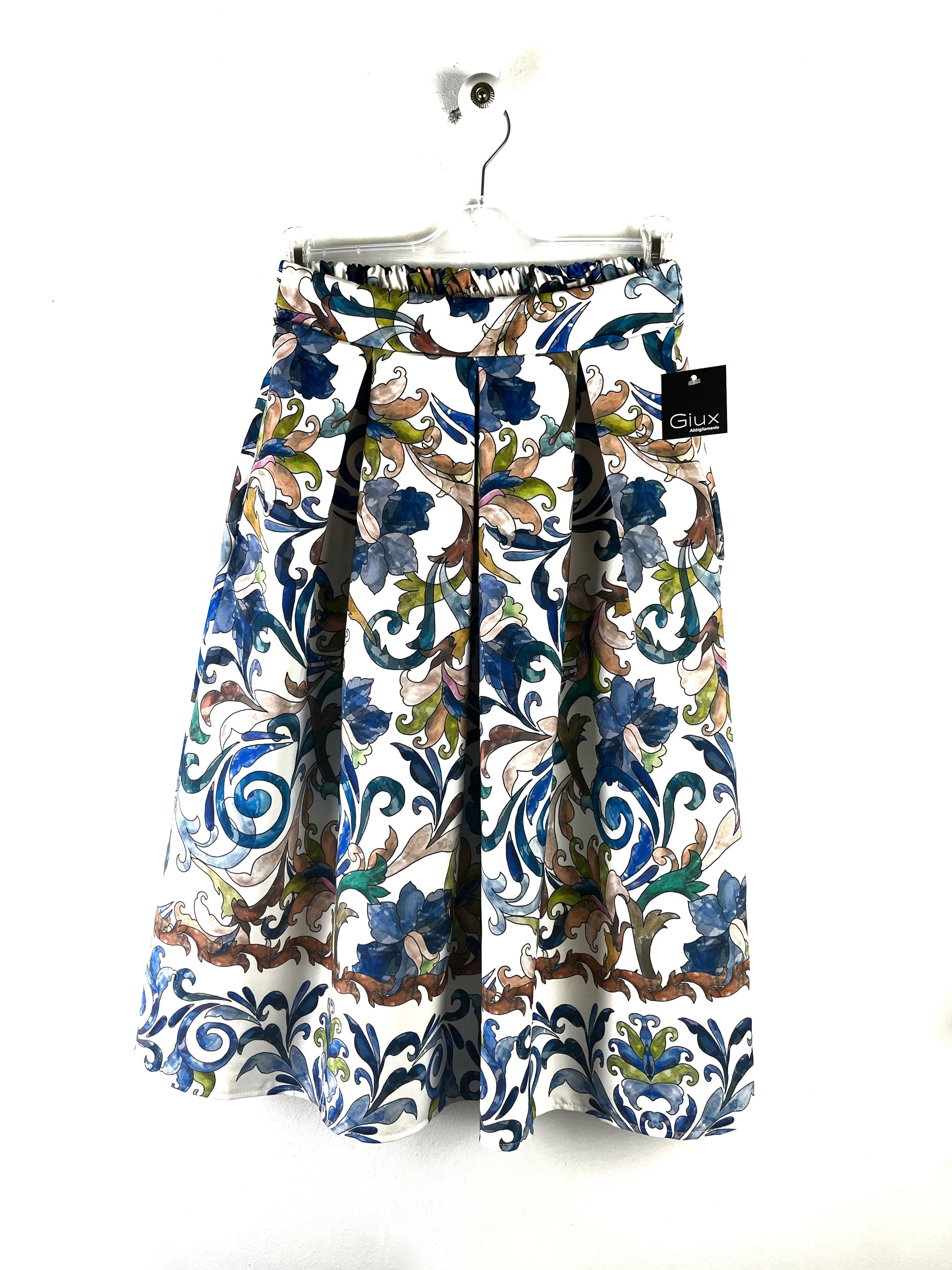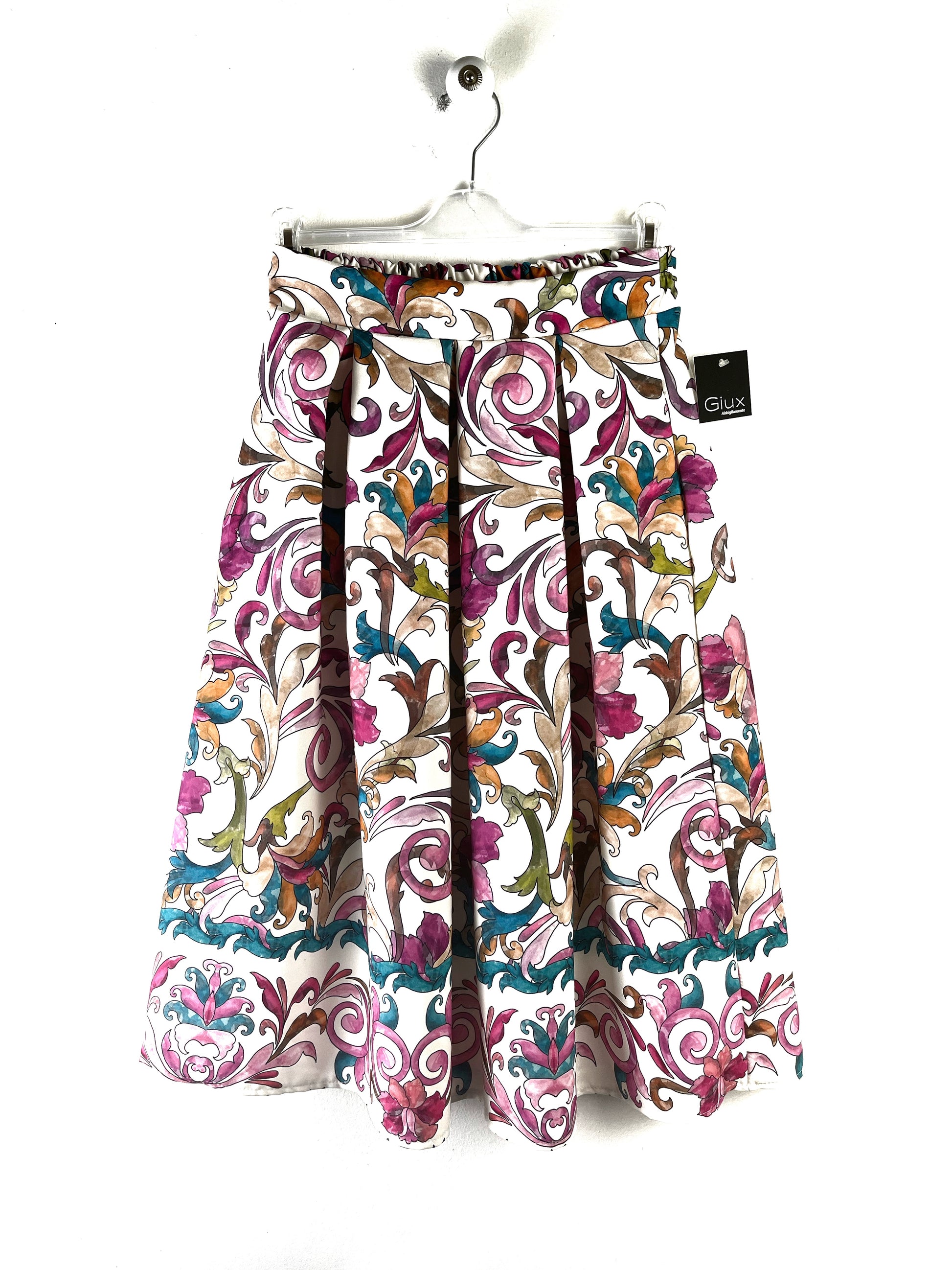 Gonna a pieghe, lunghezza midi. Elastico dietro in vita. Tasche a scomparsa laterali. Sfoderata.