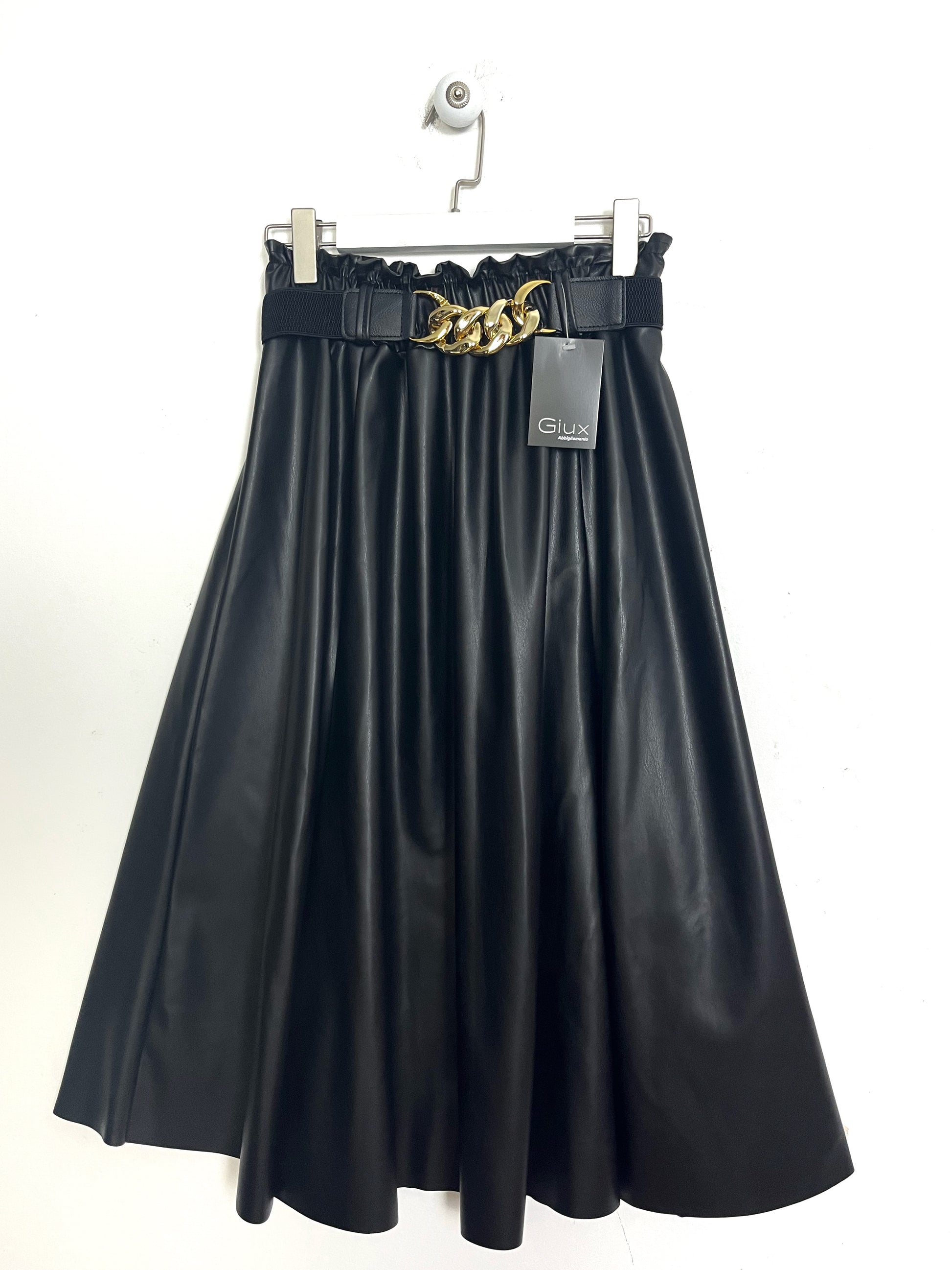Gonna midi ecopelle nera, elastico in vita con cintura