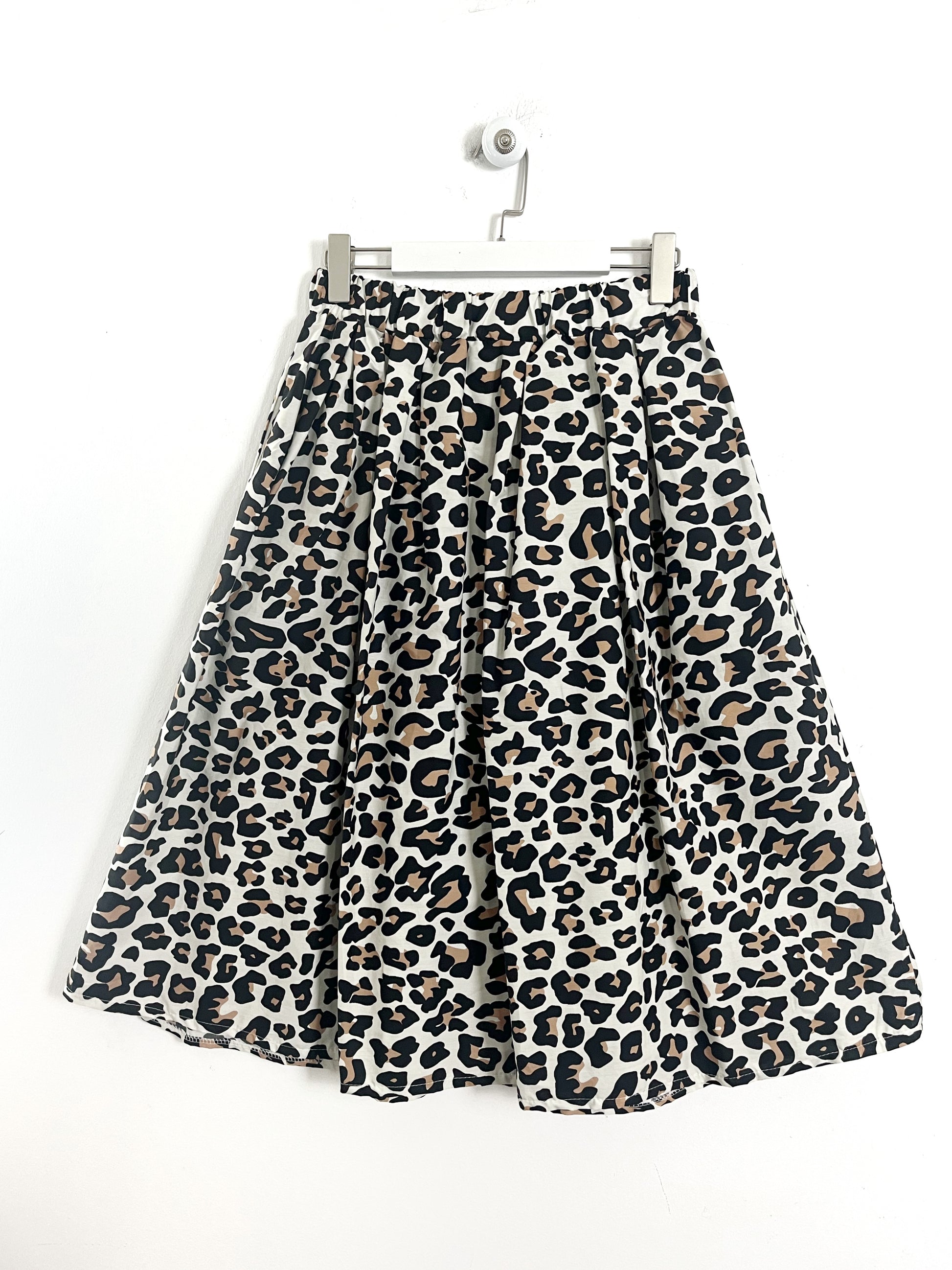 Gonna con pence in cotone leggerissimo. Elastico in vita, lunghezza midi. Tasche a scomparsa laterali. Sfoderata.