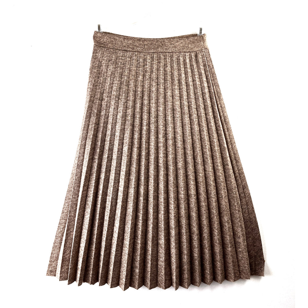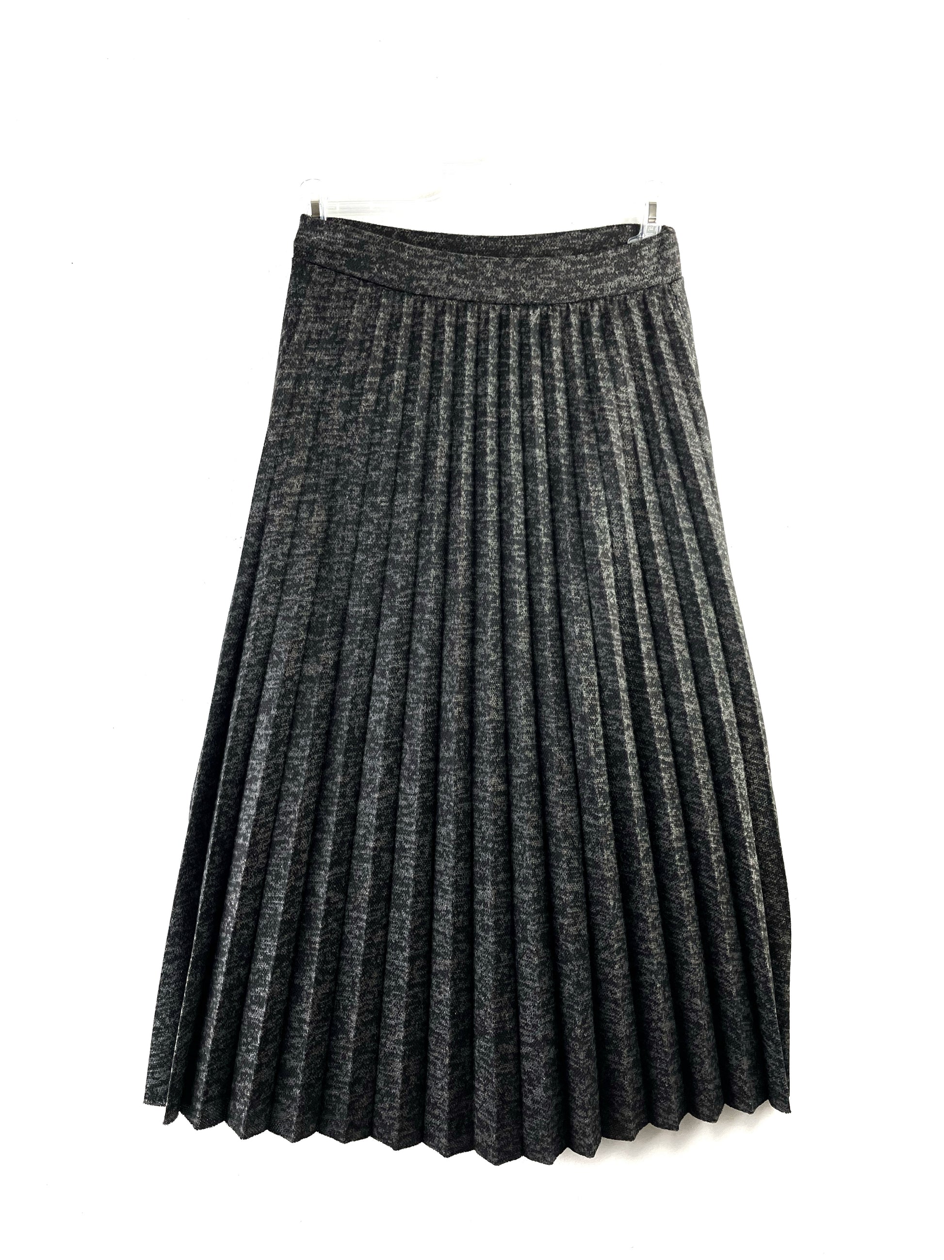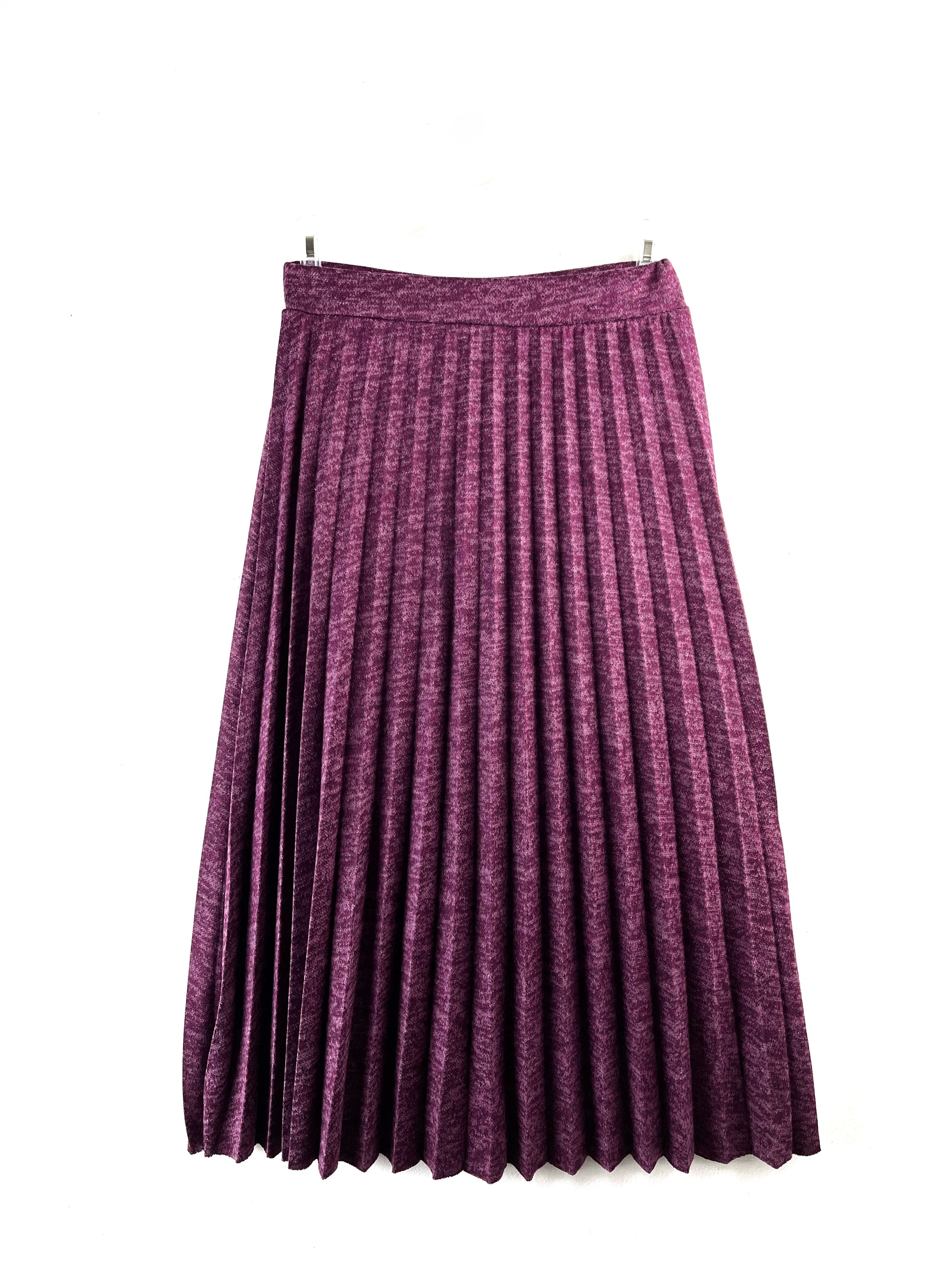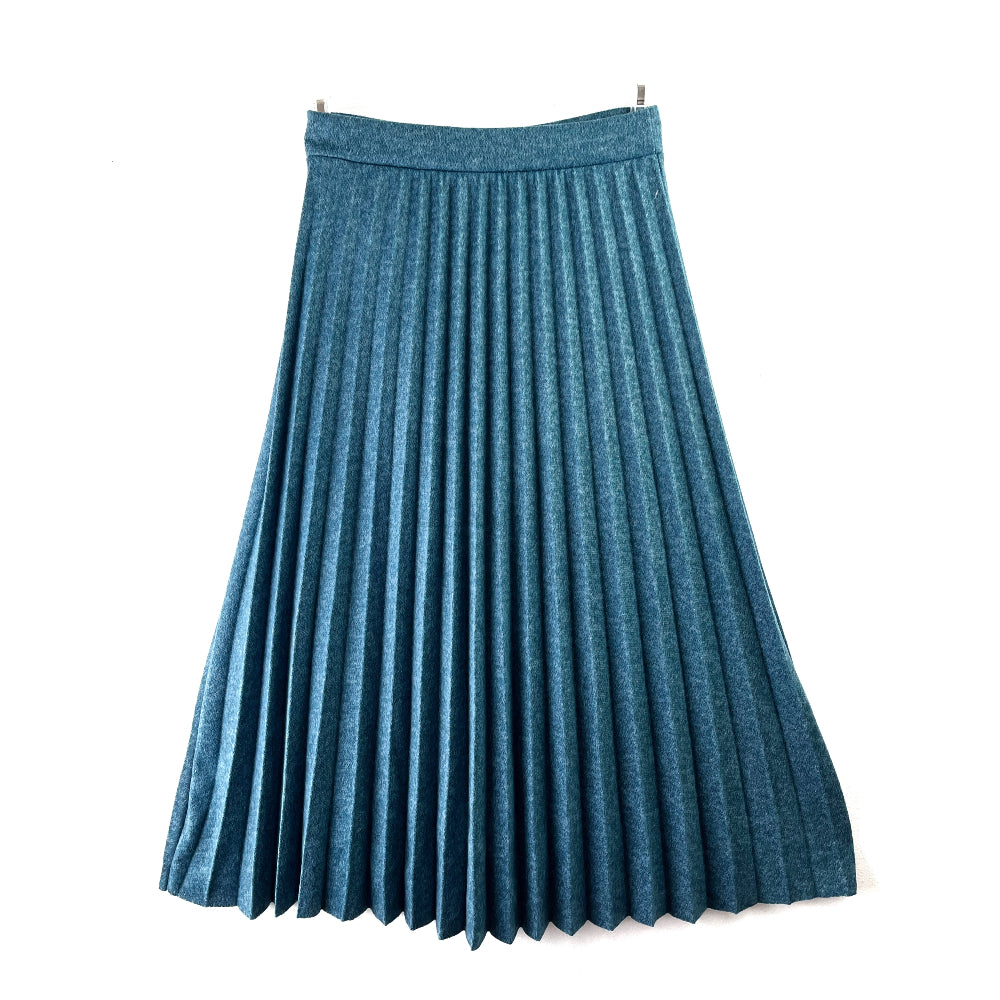 Gonna tre quarti plissettata. Elastico in vita. Svasata e sfoderata.