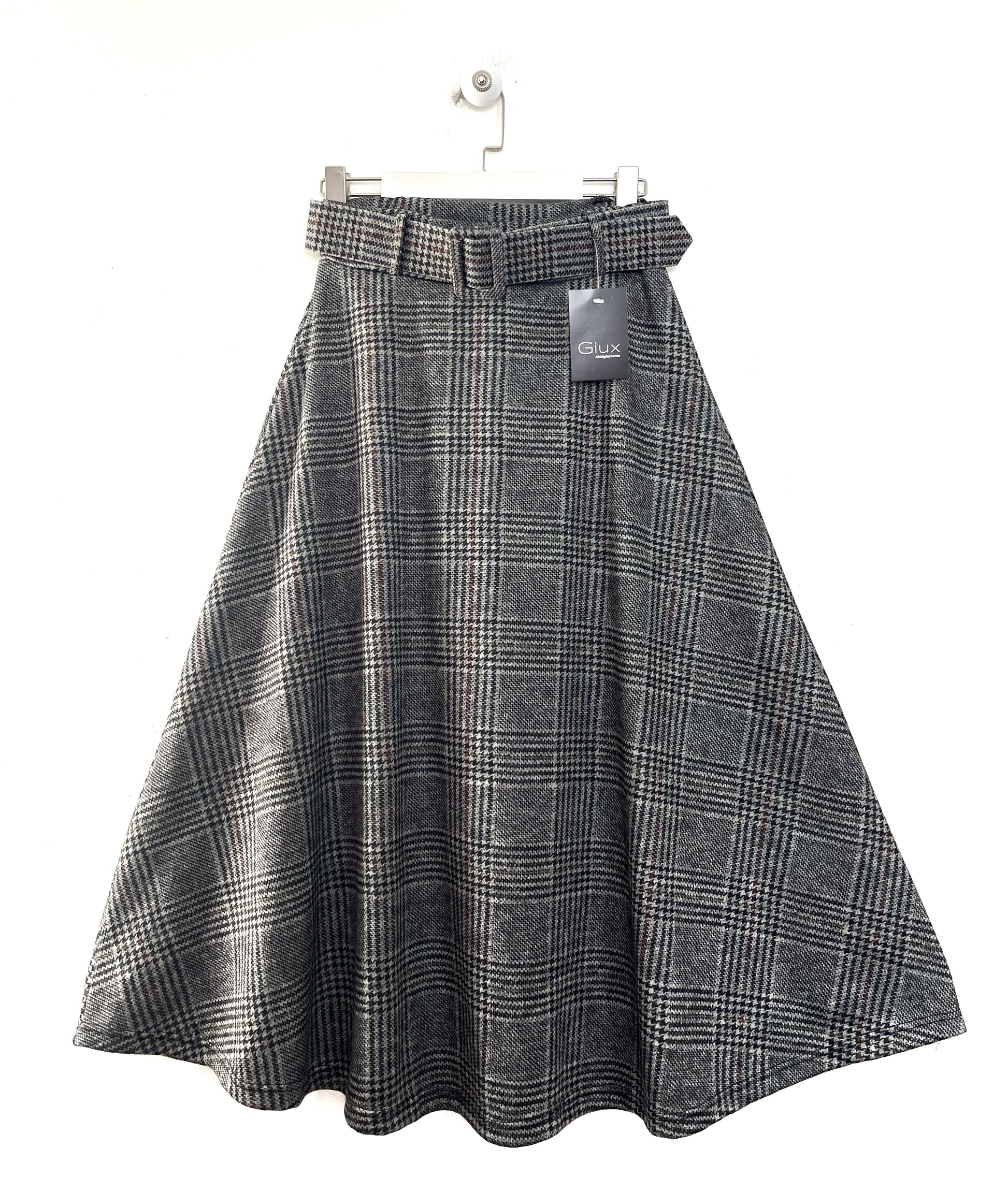 Gonna in tessuto lunghezza midi, elastico in vita. Passanti con cintura in tessuto.