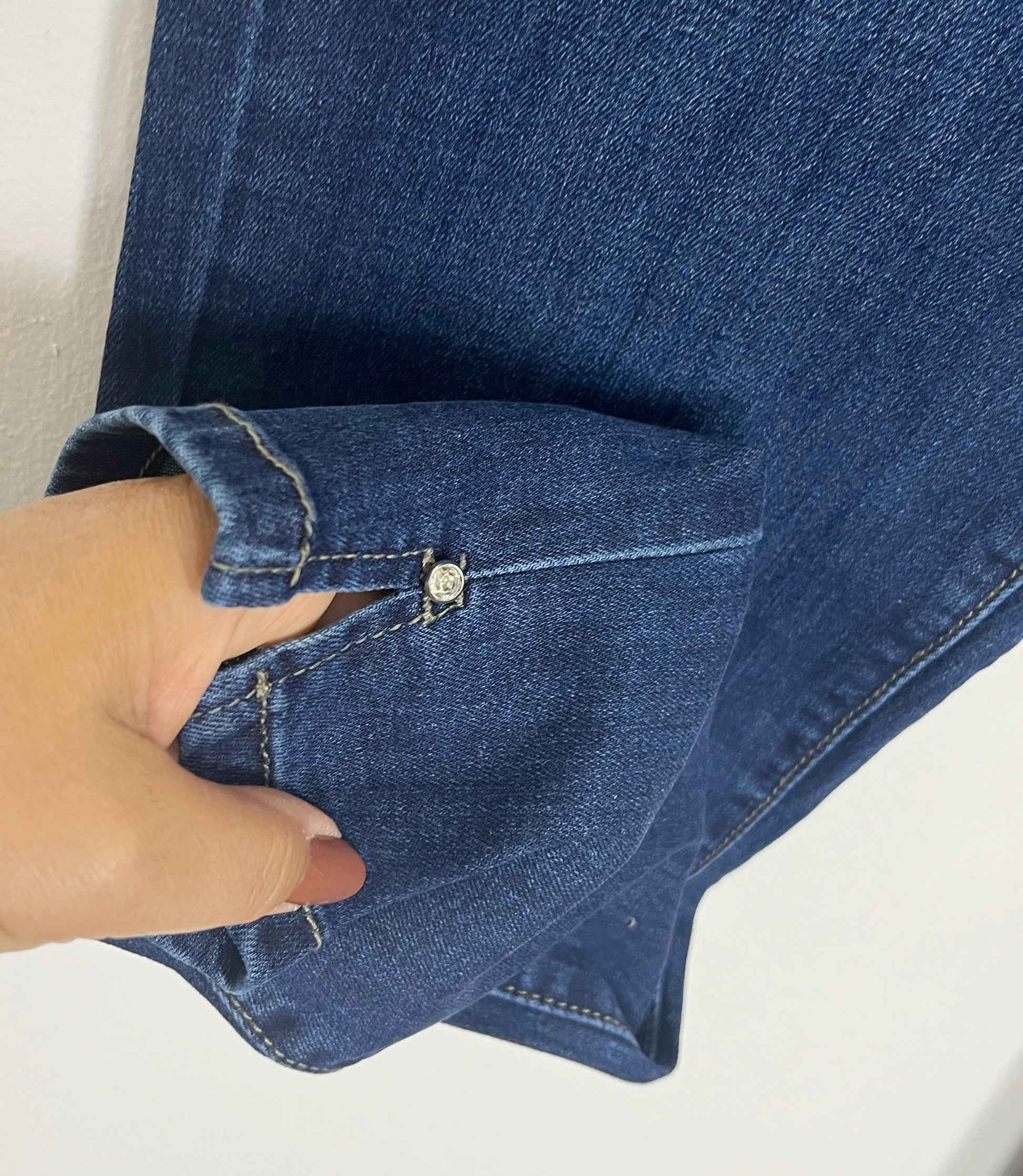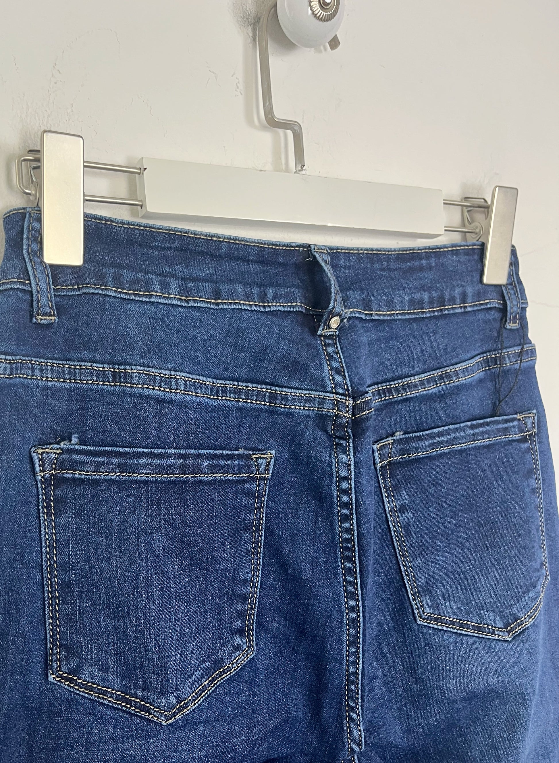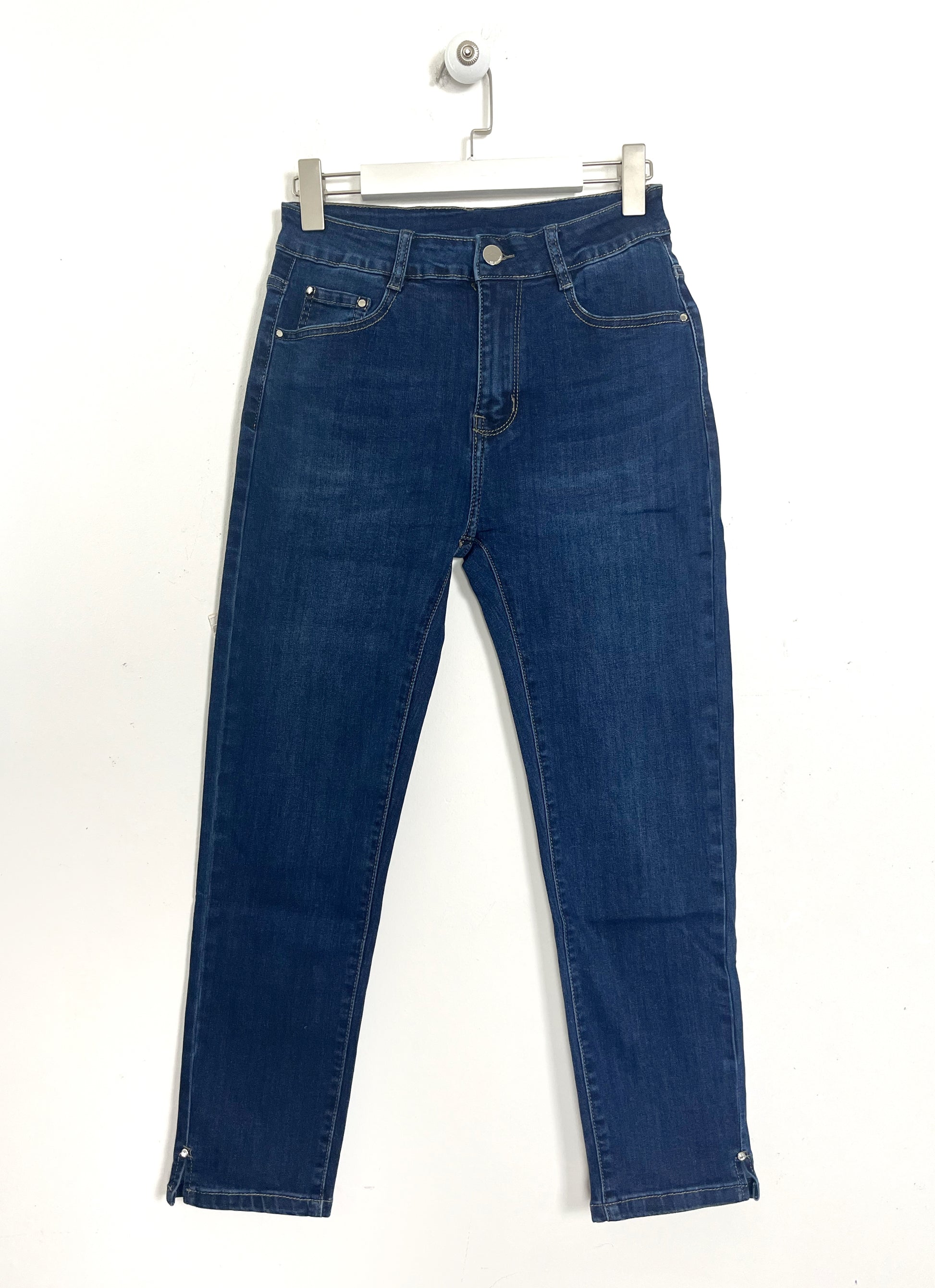Denim 5 tasche, skinny lunghezza alla caviglia con spacchetto. Vita alta superstretch.