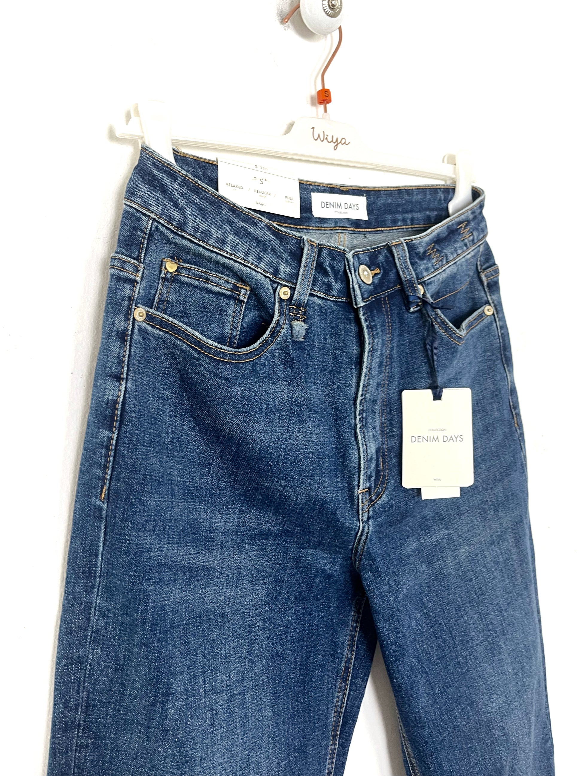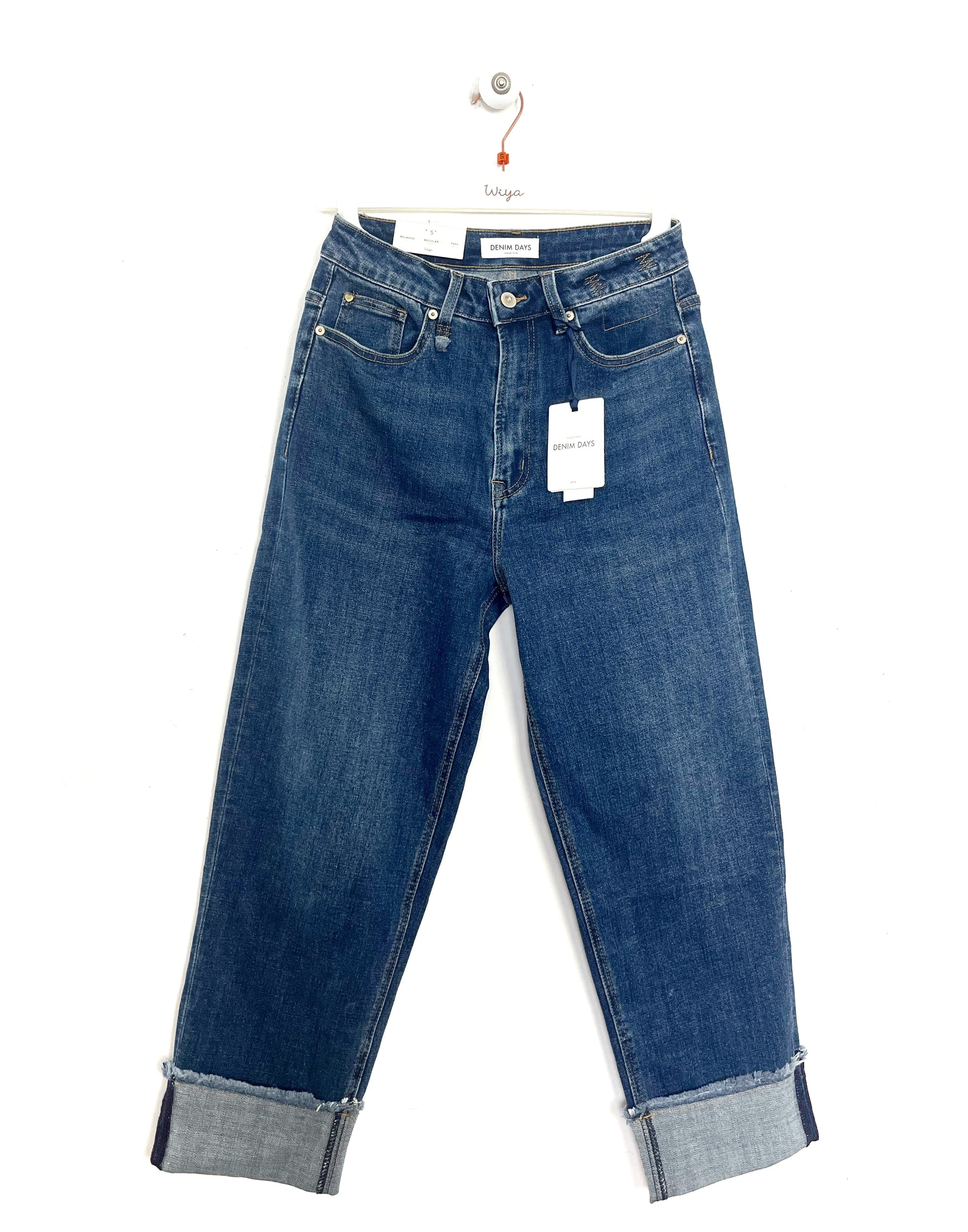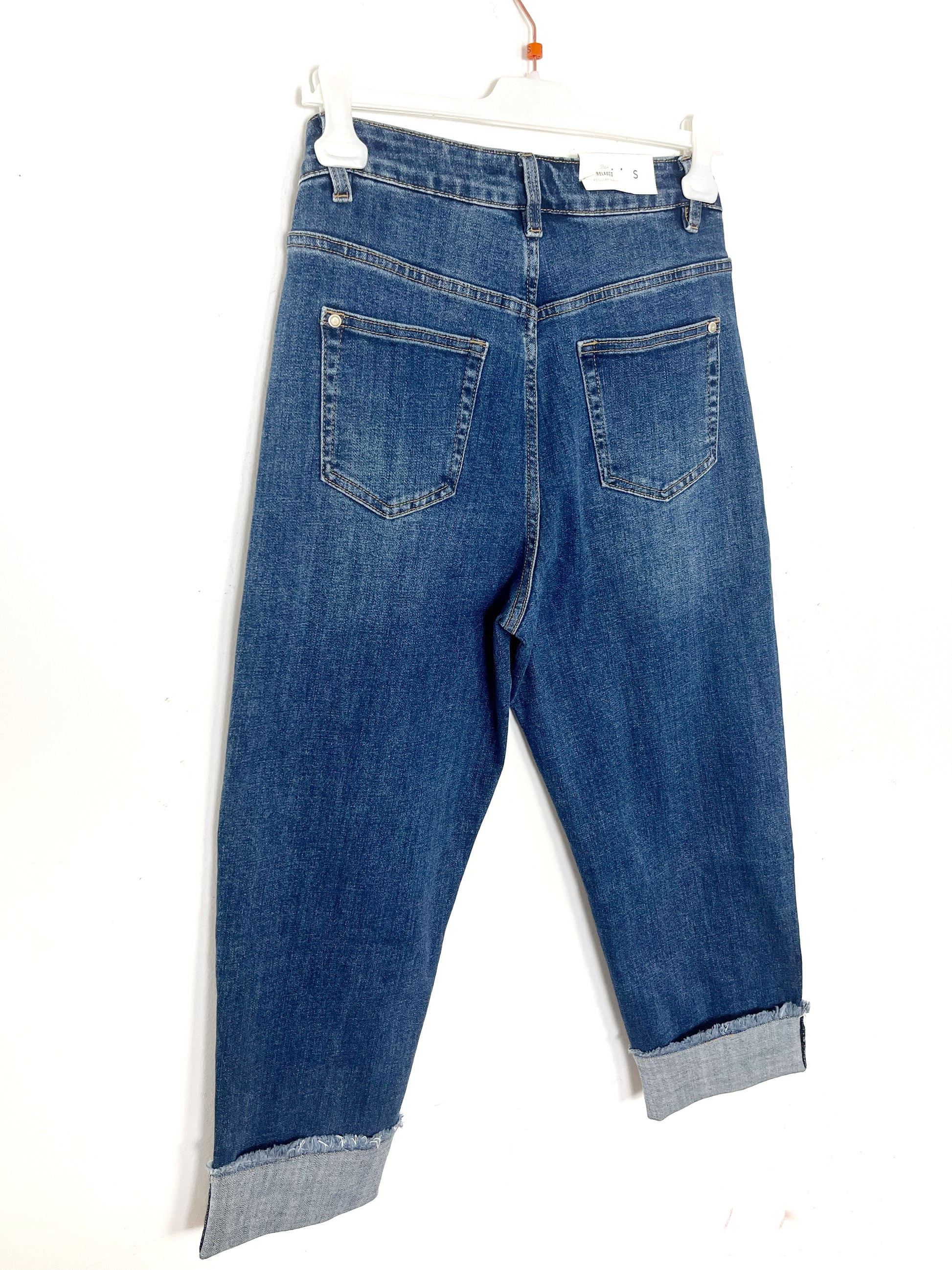 Jeans in Denim di cotone elasticizzato, alto in vita. La gamba è un po’ più larga del Denim regolare, ma non troppo. Con risvolto