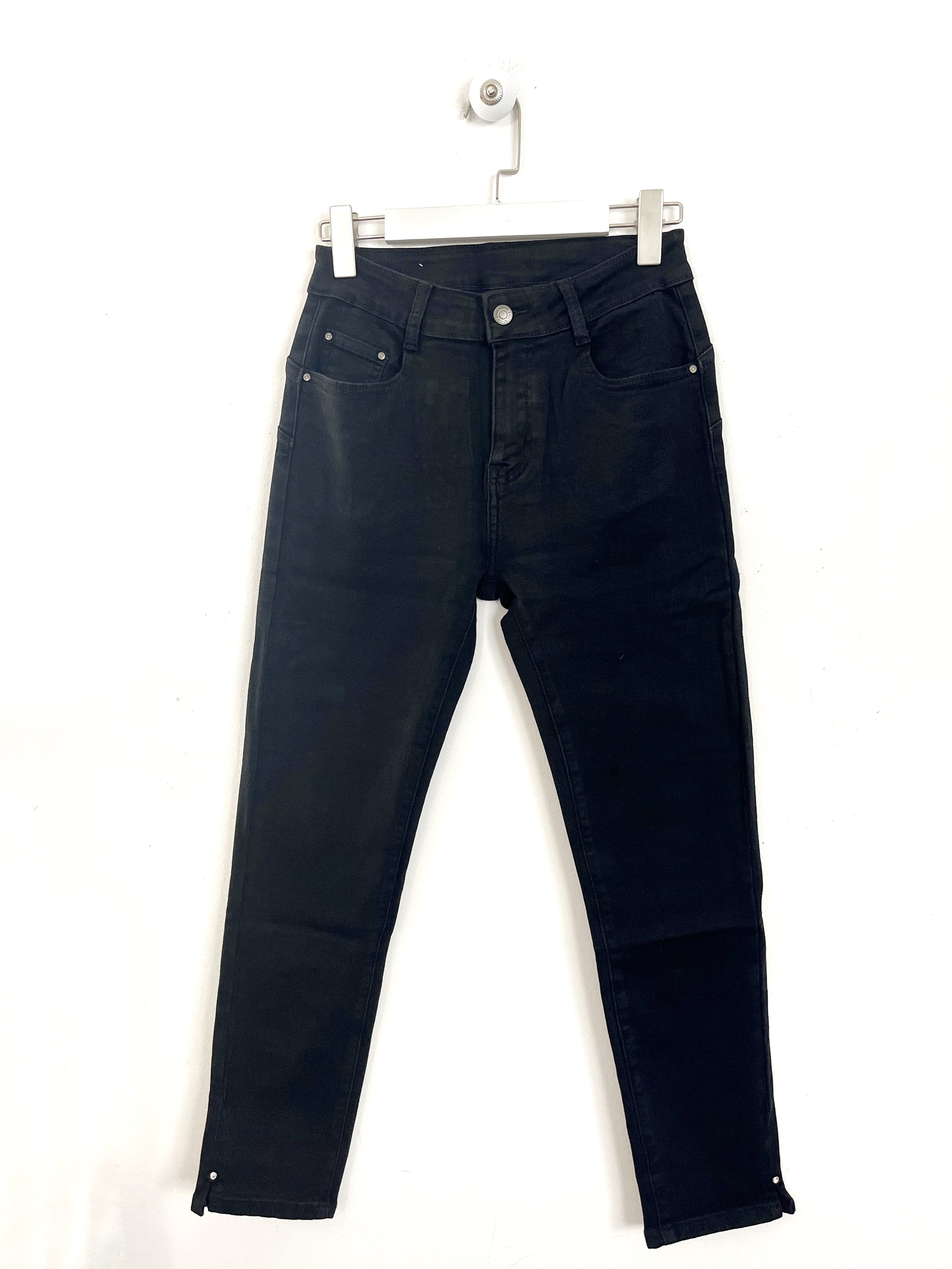 Denim 5 tasche, skinny lunghezza alla caviglia con spacchetto. Vita alta superstretch.